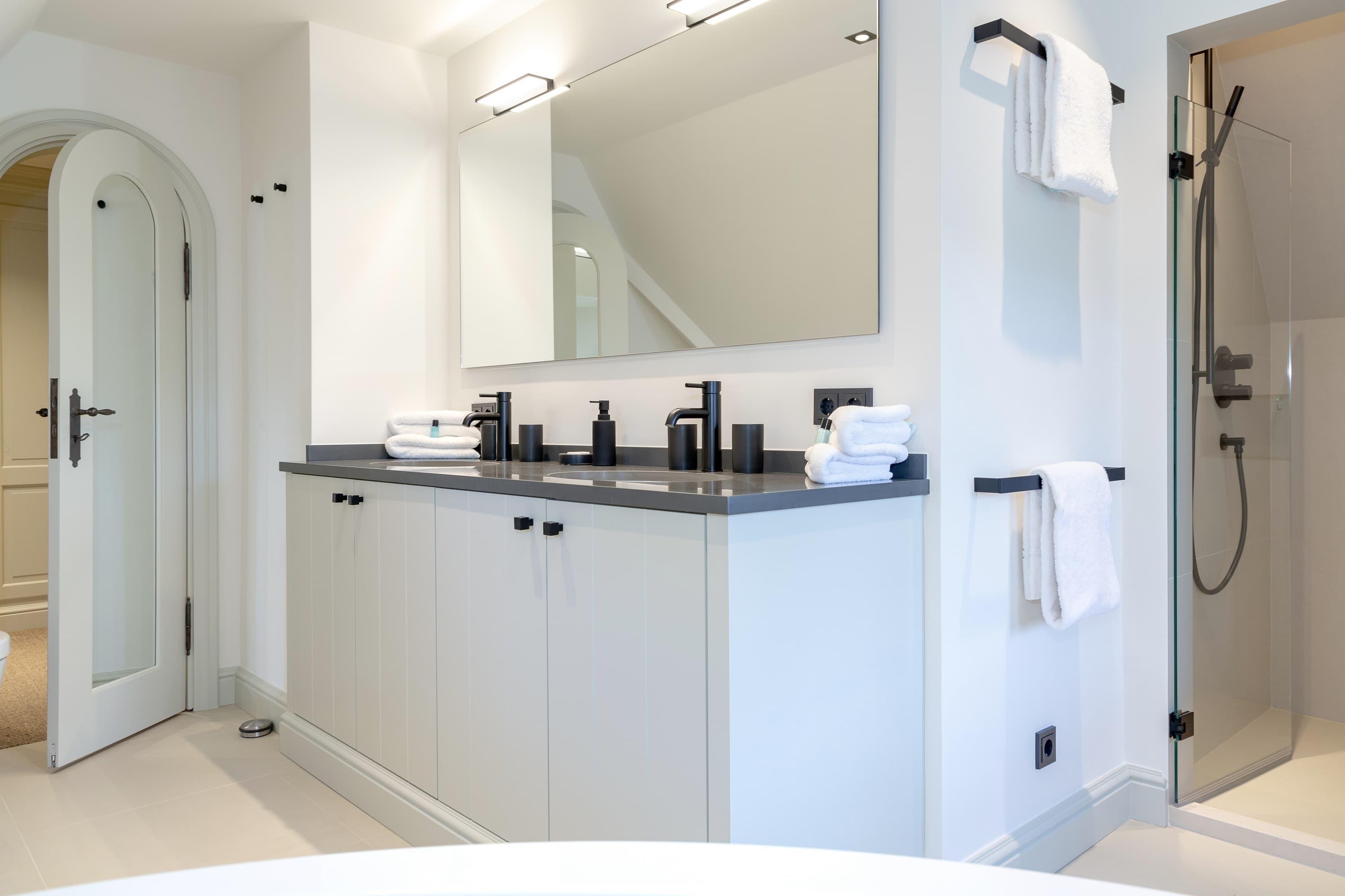 Badeværelse med bruser og badekar