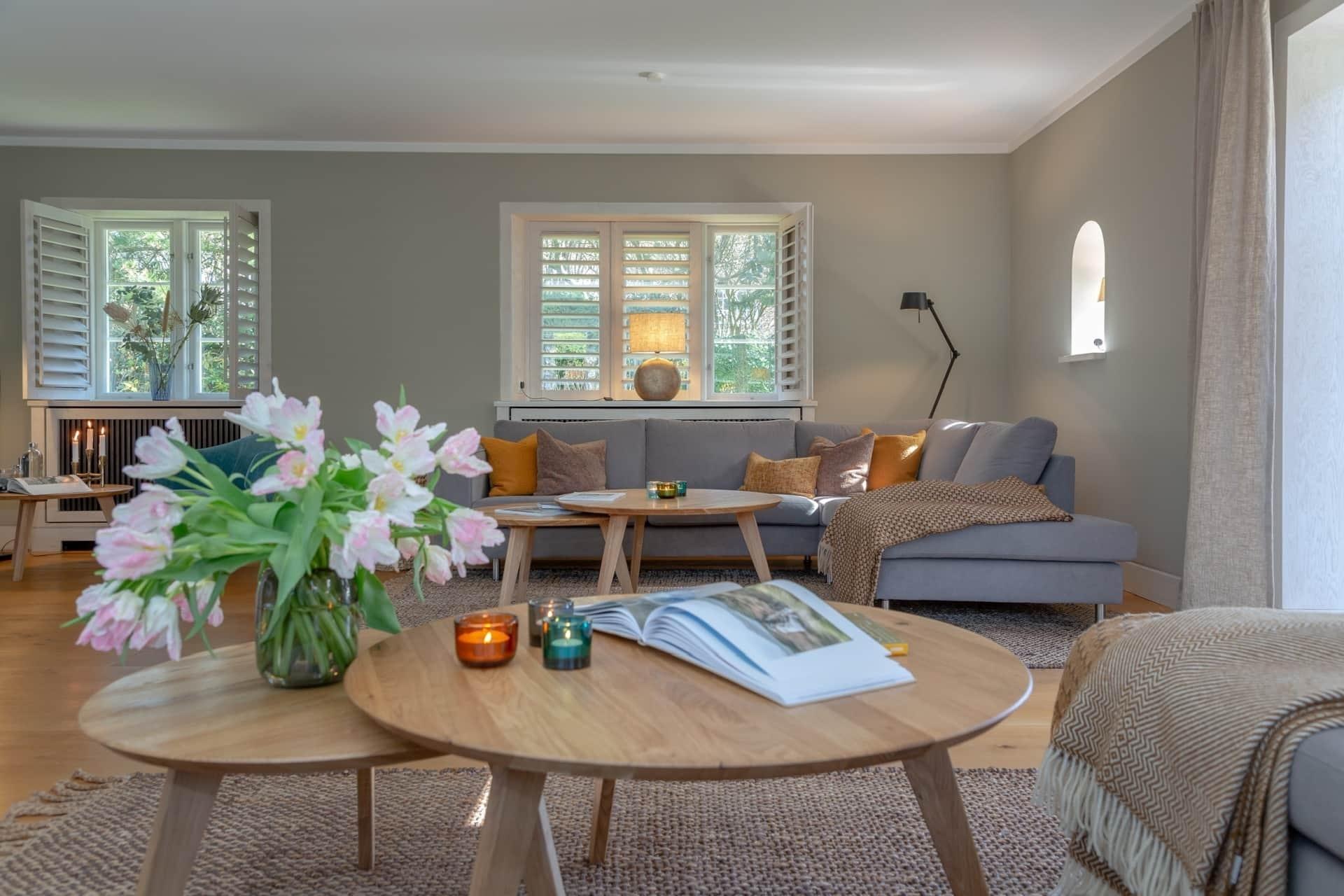 Im Inneren des Hauses erwartet die Gäste eine geschmackvolle Einrichtung mit einer voll ausgestatteten Küche, einem großzügigen Wohnzimmer und Essbereich. Jedes Schlafzimmer ist individuell gestaltet und bietet ausreichend Platz und Privatsphäre. Die Bäder sind mit hochwertigen Armaturen und stilvollen Details ausgestattet.