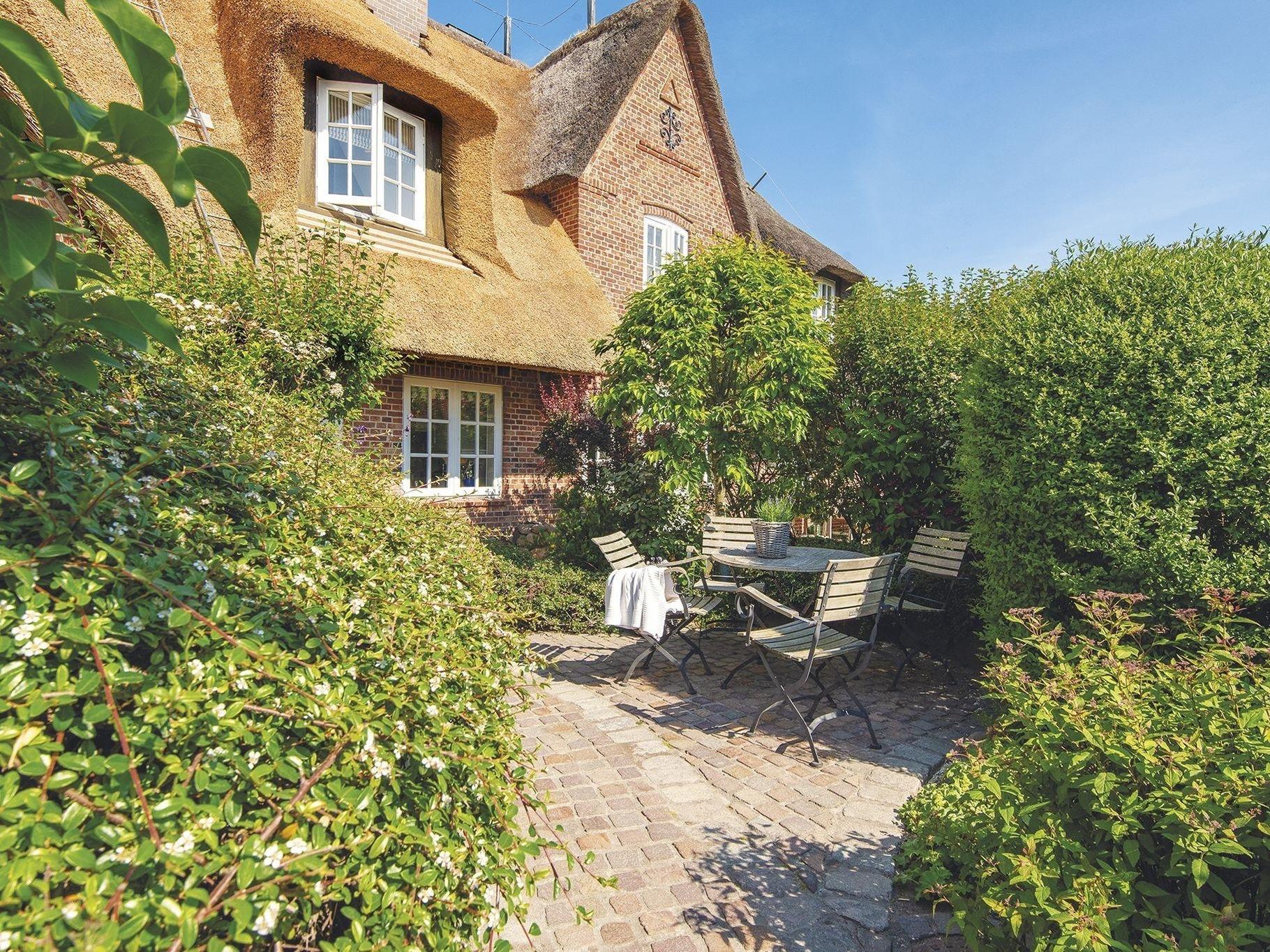 Gemütliches Ambiente nur einen kleinen Fußmarsch von Kampens Zentrum entfernt und alles, was vier Personen zum Wohlfühlen brauchen. Schon der Weg zum Haus führt Sie durch einen romantisch eingewachsenen Gang. Vom kleinen Flur gelangt man direkt in den behaglichen Wohnbereich mit Kamin und Essecke für Vier, offener Küche und Zugang zur Terrasse gen Westen samt Strandkorb. Das Hausteil hat ein Doppelschlafzimmer mit Duschbad im Obergeschoss und ein weiteres Doppelschlafzimmer mit Wannenduschbad im Untergeschoss. Das gesamte Hausteil ist mit Fliesen und Laminat ausgelegt.