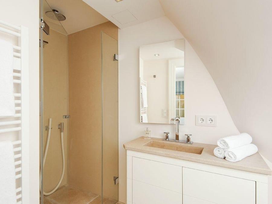 Wunderschön großzügig, hell und komfortabel eingerichtet, liegt dieses schöne Mittelhausteil in einer kleinen, ruhigen Stichstraße in unmittelbarer Nähe des Wattenmeeres und der legendären Kupferkanne. Es empfängt Sie ein großzügiger Eingangsbereich mit Designgarderobe und Gäste-WC. Von dort geht es in den großen hellen Wohnraum mit großer Einbauwand, gepolsterter Sitzbank und gemütlichen Sesseln, sowie riesigem Esstisch am Kamin und Zugang zur Westterrasse im eigenen Garten. Die moderne offene Küche lädt mit großer Kühl-/Gefrierkombi und auch sonst voller Ausstattung zum Kochen ein. Im Obergeschoss finden Sie ein riesiges lichtdurchflutetes Schlafzimmer mit kleinem Arbeitsplatz nebst tiefer gepolsterter Sitzbank mit Blick ins Grüne bis zum Wattenmeer. Fast schon erliegen Sie hier einer optischen Täuschung, denn das große Doppelbett scheint im Raum zu schweben. Ebenfalls auf dieser Ebene ein Badezimmer mit freistehender Wanne und großer Regendusche. Im Untergeschoss erwarten Sie zwei Doppelschlafzimmer mit jeweils direktem Zugang zum eigenen Duschbad, sowie eine Sauna. Ein modern hyggeliges Quartier mit Holz- und Natursteinböden für Ruhesuchende.