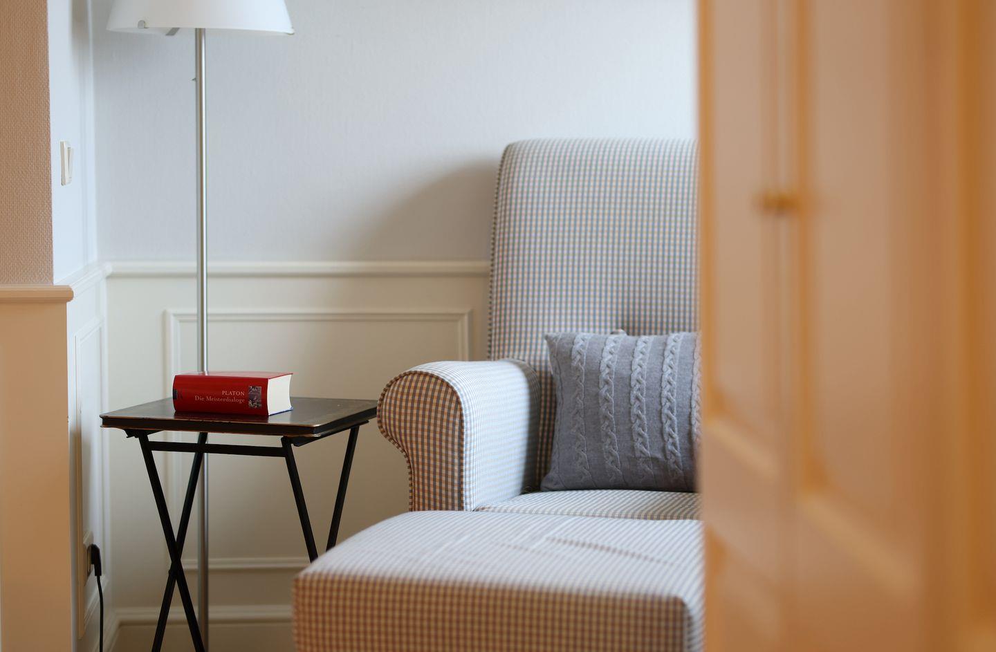 Darüber hinaus gehen Sie über Ihren privaten Strandzugang bequem an den Strand. Auf einer kleinen Holzbank können Sie verweilen und den herrlichen Ausblick genießen.