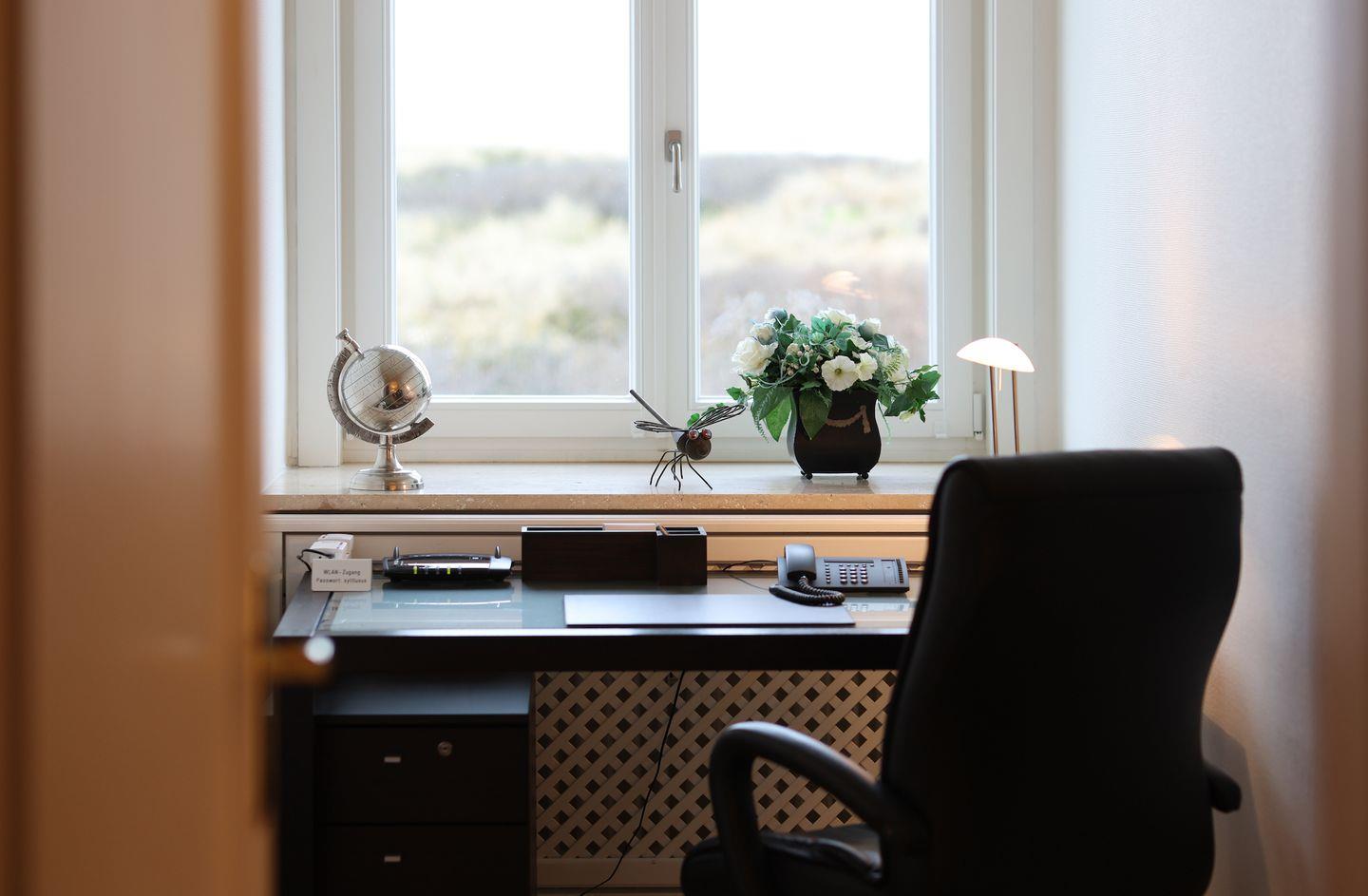 ausgestattet. Zusätzlich bietet ein heller Arbeitsplatz mit Drucker und Blick in die Heide, alles was moderne Geschäftsfrauen- und Männer für Ihren Urlaub benötigen.