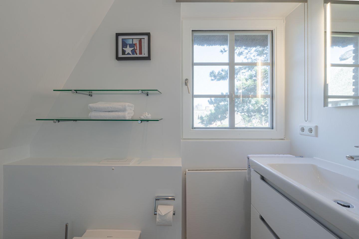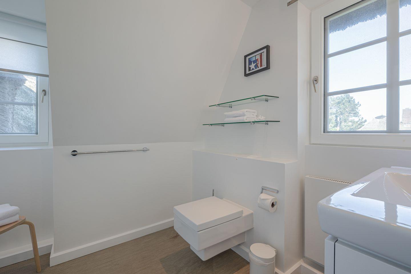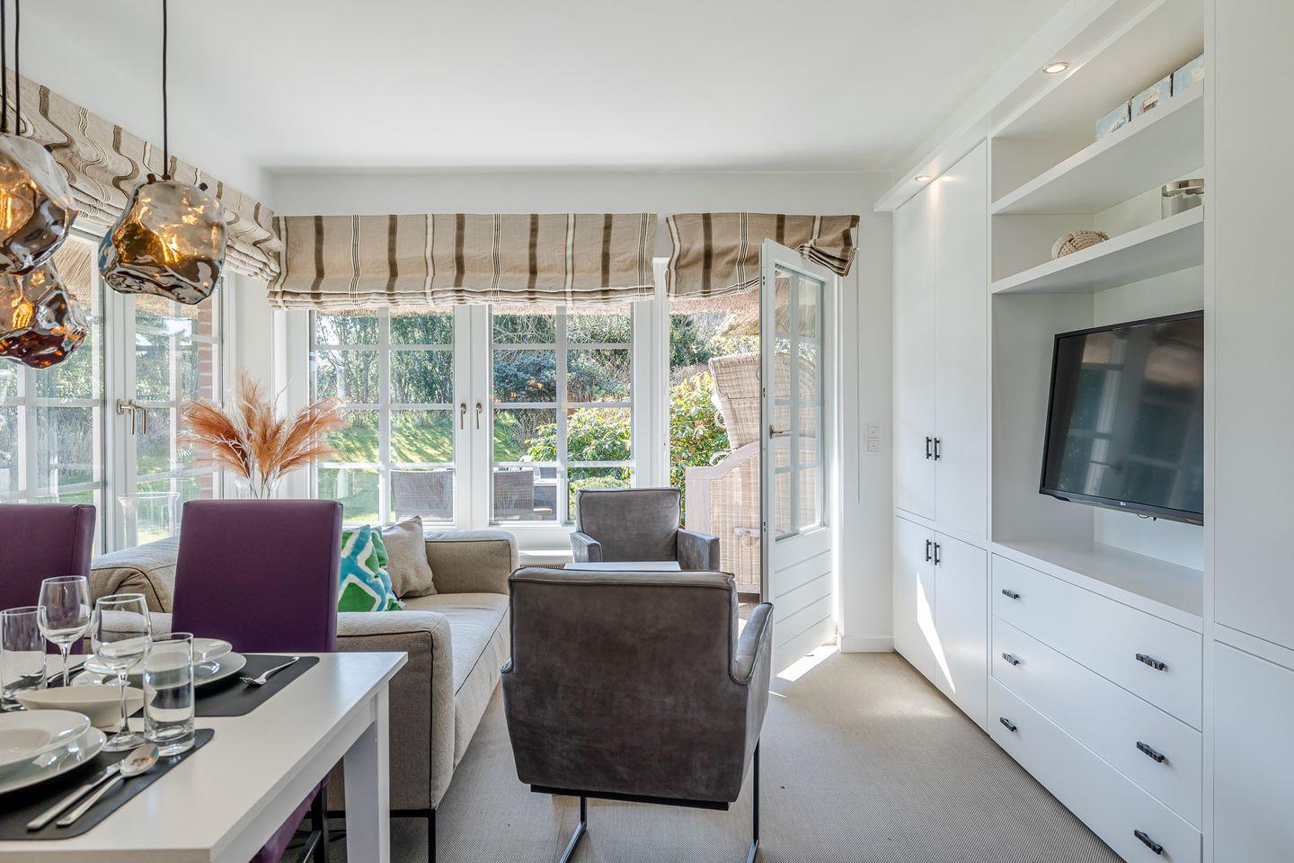 In der gesamten Unterkunft unterstreichen die eleganten Tischlereinbauten das perfekte Sylt-Feeling dieses Juwels unter Reet.