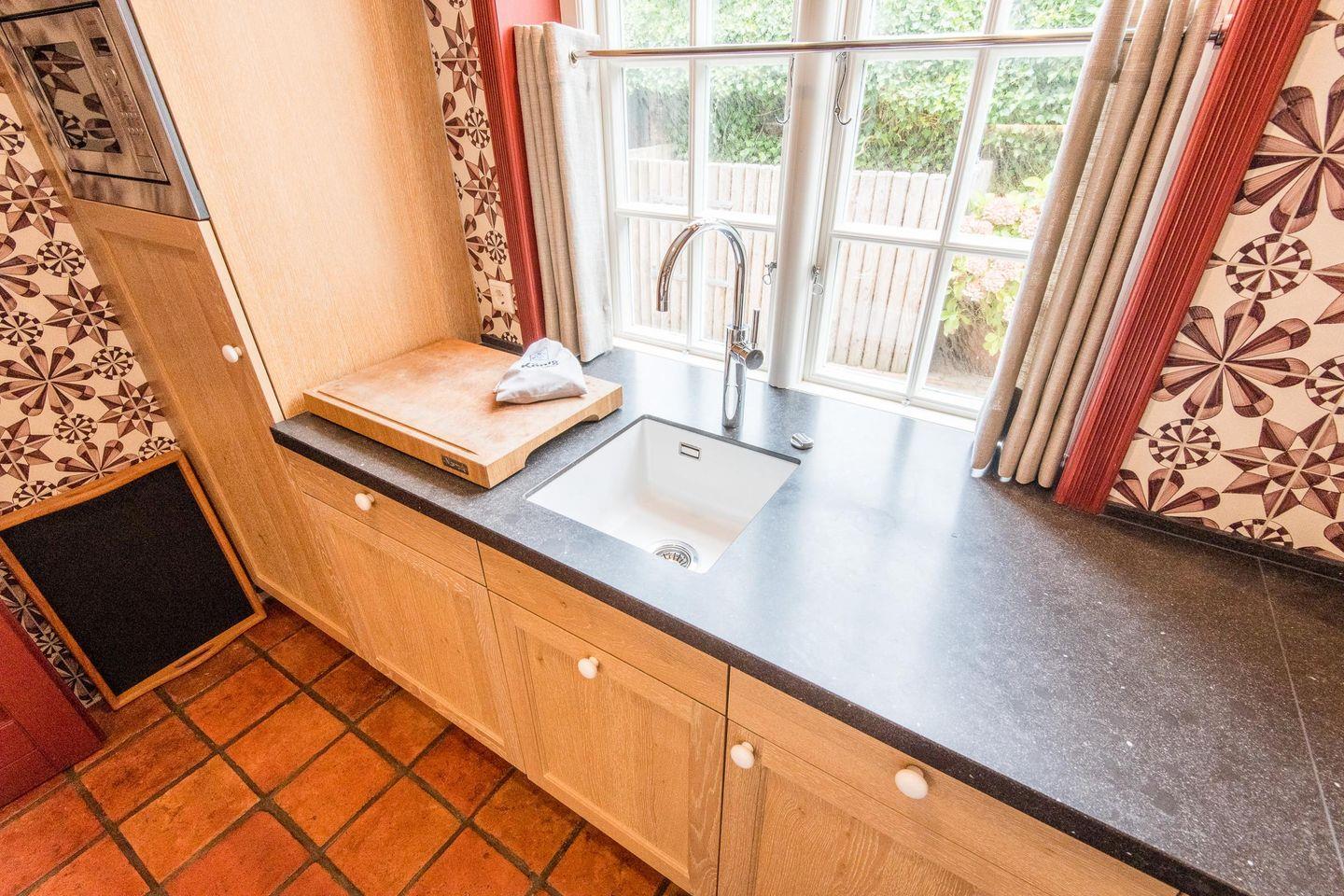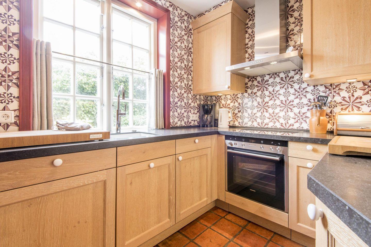 Die separate, gut ausgestattete Küche bietet alle modernen Annehmlichkeiten, die Sie in einem Ferienhaus erwarten. Ausgestattet mit Ceranfeld, Filterkaffeemaschine, Mikrowelle und Geschirrspülmaschine ist sie perfekt für das Zubereiten gemeinsamer Mahlzeiten.