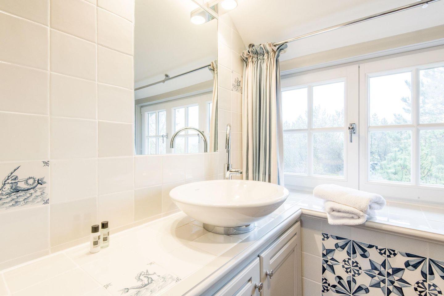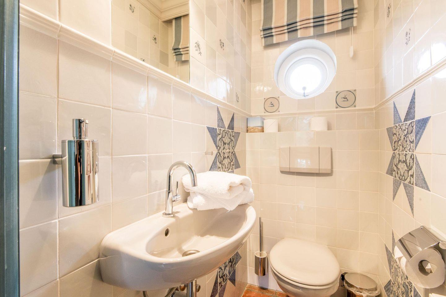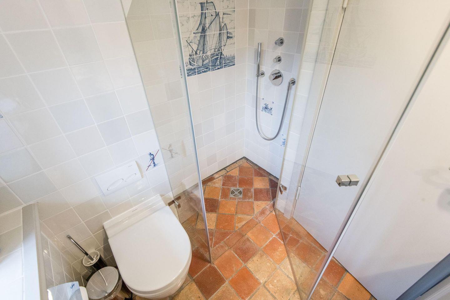 Ein modernes Duschbad mit Tageslicht sorgt für Frische und Entspannung. Zusätzlich steht ein separates Gäste-WC im Eingangsbereich zur Verfügung, was den Komfort des Hauses abrundet und gerade für Familien oder Freundesgruppen ideal ist.