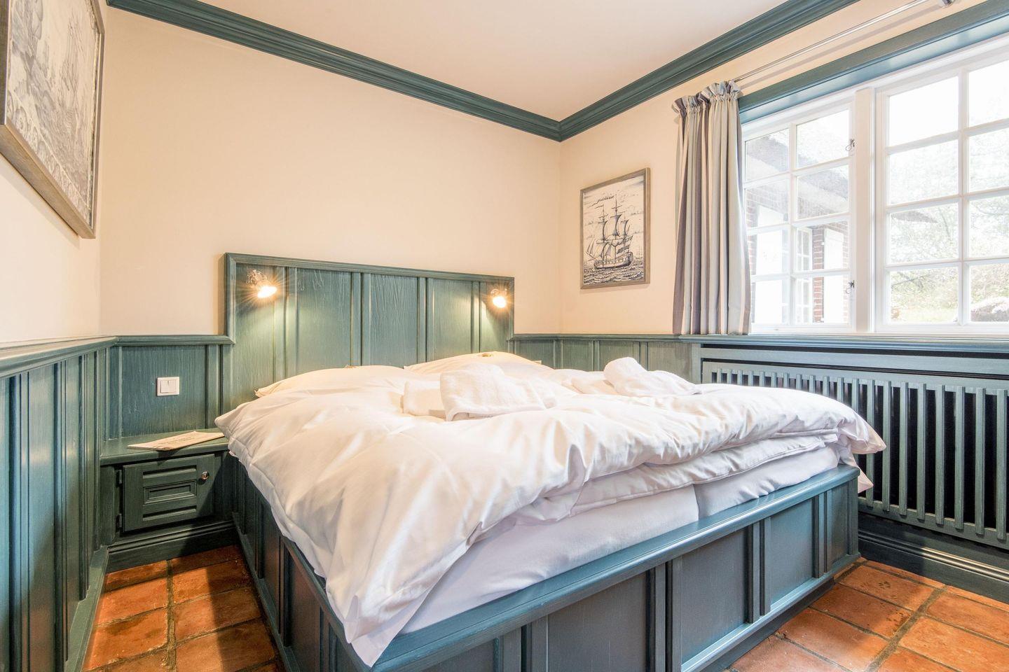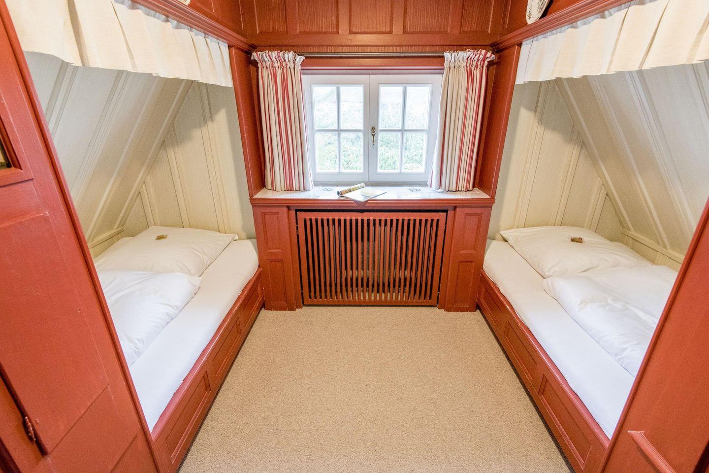 Das Haus verfügt über drei gemütliche Schlafzimmer, die alle mit hochwertigen Tischlereinbauten für reichlich Stauraum und Komfort sorgen. Das Hauptschlafzimmer bietet ein komfortables Doppelbett (160x200 cm), das ideal für eine erholsame Nachtruhe ist. Die beiden weiteren Schlafzimmer sind jeweils mit zwei großzügigen Einzelbetten (je 120x200 cm) ausgestattet und bieten ebenfalls einen Rückzugsort für ruhige Nächte.