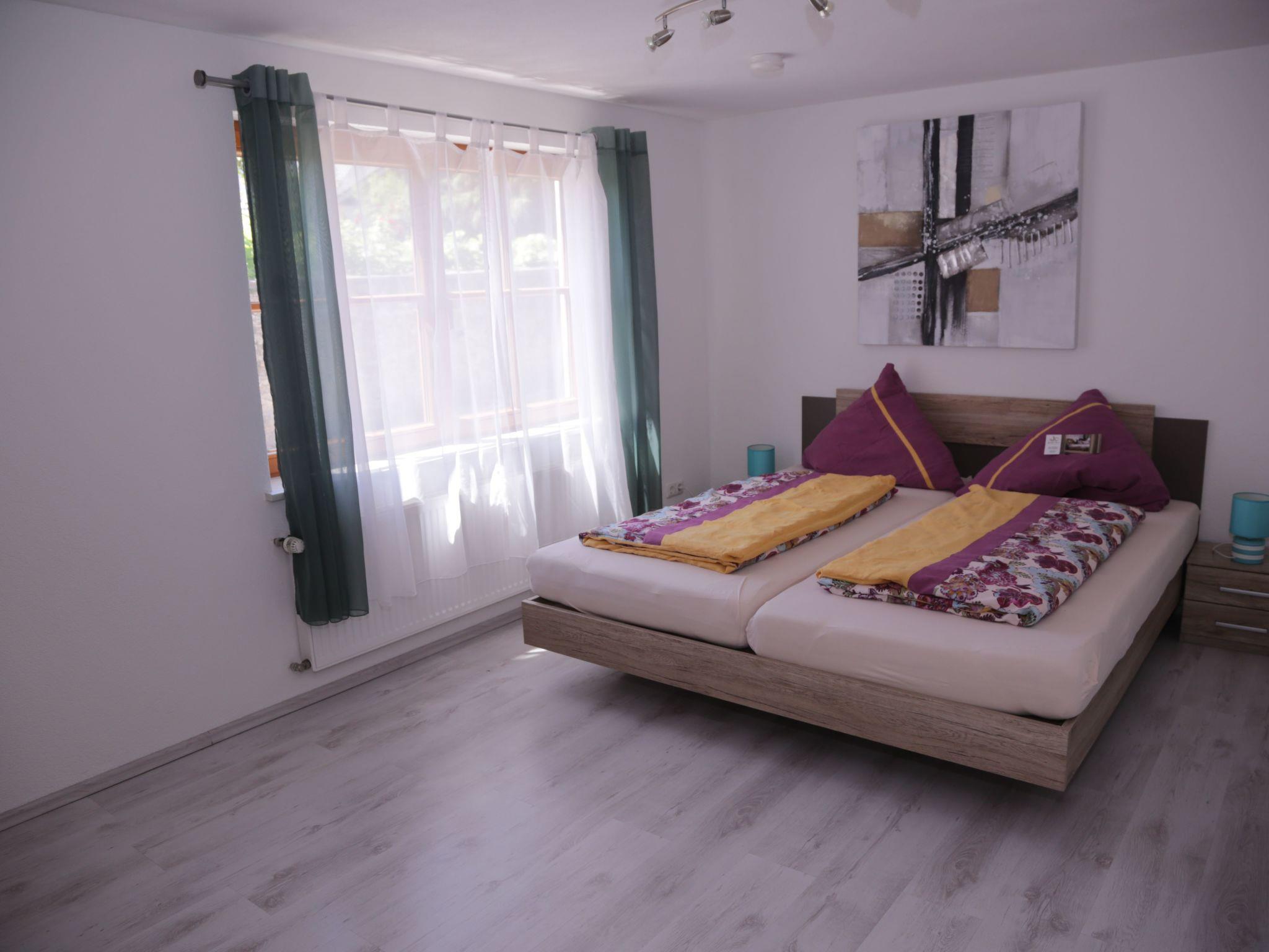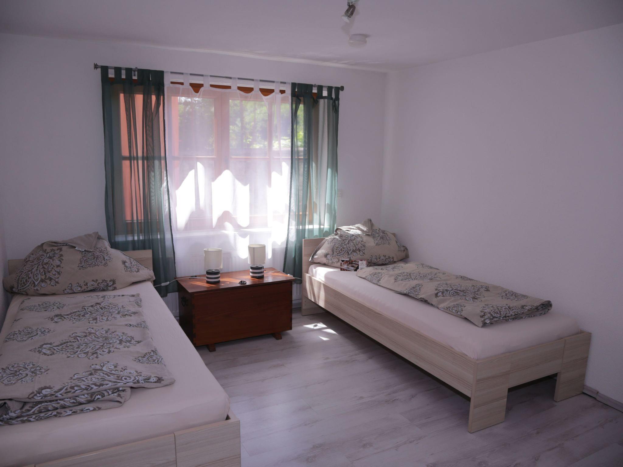 The comfortable flat offers 105 square metres of space for up to six people. It was completely renovated and refurnished in spring 2015. It has two large bedrooms, one of which is furnished with a double bed (180 x 200 cm) and one with two single beds (90 x 200 cm). Two more beds can be found in the living room on the comfortable sofa, which can be converted into a double bed (200 x 200 cm). An open fireplace and a television provide cosy hours in this bright and friendly room. The kitchen is new and equipped with everything you need for cooking. The separate dining room is spacious and can seat six people on the benches and chairs around the table. The bathroom is also modern with a corner bath (incl. shower), washbasin and WC. All rooms can be heated and Internet access (WLAN) is also available.