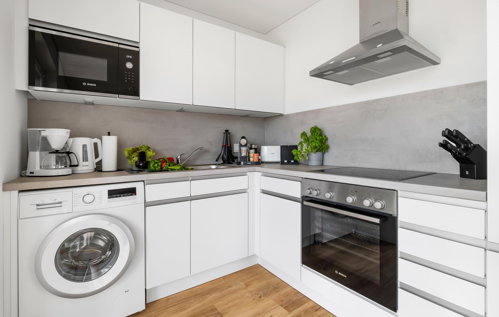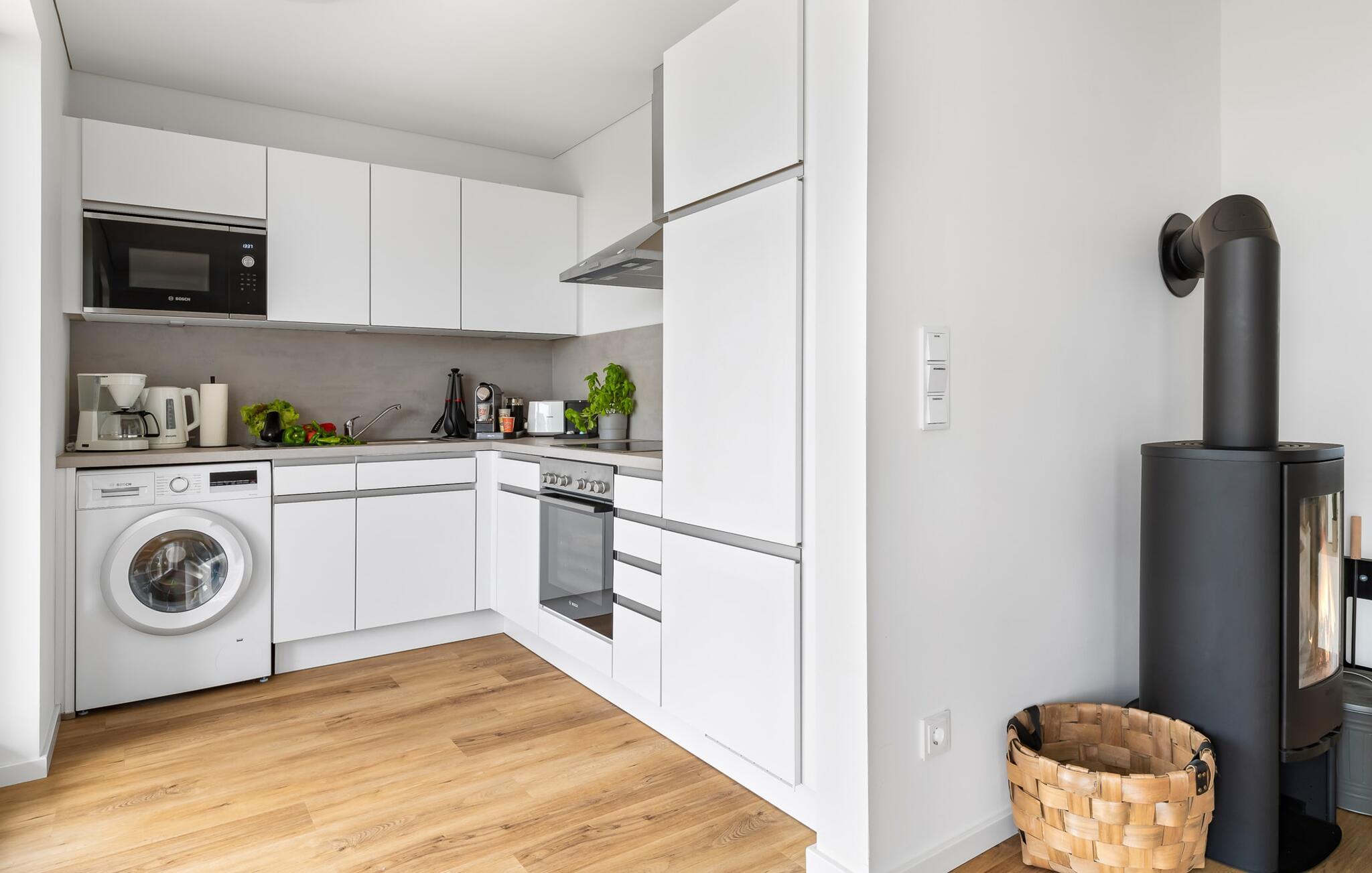 Hjertet i den moderne stueetages lejlighed er den rummelige og lyse stue/spisestue med en stor hjørnesofa, en komfortabel gyngestol og en brændeovn – ideel til spil eller filmaftener på fladskærms-tv'et med hele familien eller venner. Et Bluetooth-aktiveret hi-fi-system til afspilning af jeres egne medier (musik eller lydbøger), brætspil og børnespil fuldender lejlighedens generøse faciliteter.