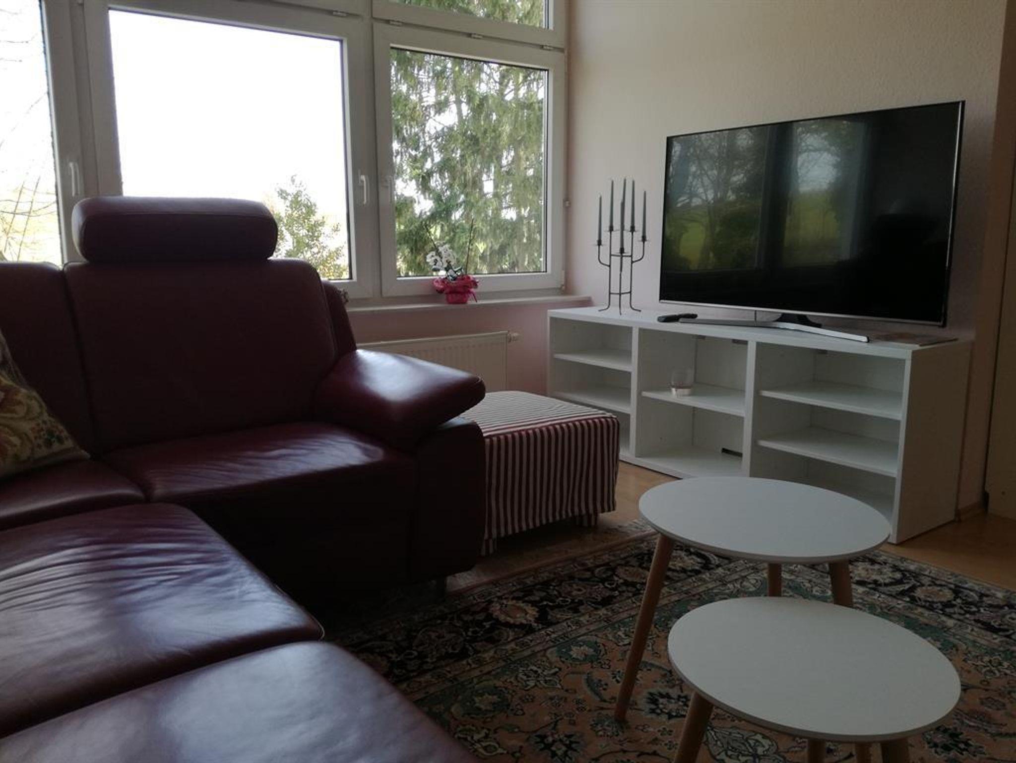 Die Fewo mit 2 Schalfzimmern erwartet Sie mit 80 qm Wohnfläche und liegt im 1. OG des Ferienhauses. Sie besticht durch ein sehr großes Wohnzimmer mit durchgängiger Fensterfront zum Garten hinaus. Die Ostseit beschert ein schönes Morgenlicht. Das große Sofa bietet bis zu 6 Personen Platz, ebenso der ausziehbare Esstisch. Dazu erwartet Sie eine separate großzügige Küche mit einem zusätzlichen Sitzplatz. Der zugehörige Balkon ist überdacht.