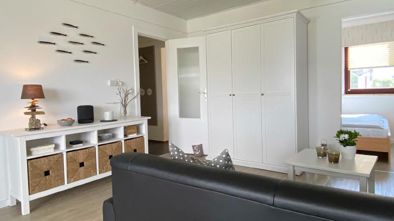 Das modern, hell und gemütlich eingerichtete 70qm Ferienhaus gemäß DIN 277 verfügt über zwei Schlafräume, einen kombinierten Wohn- und Essbereich mit offener Küchenzeile sowie ein Duschbad/WC. In der Küche befinden sich unter anderem eine Mikrowelle, Kaffeemaschine und ein Wasserkocher. Waschmaschine und Wäschetrockner sind ebenfalls vorhanden. Vom Wohn- und Essbereich aus gelangen Sie auf die großzügige überdachte Terrasse, wo Sie die Sonnenstrahlen bei einem Glas Wein entspannt genießen können.