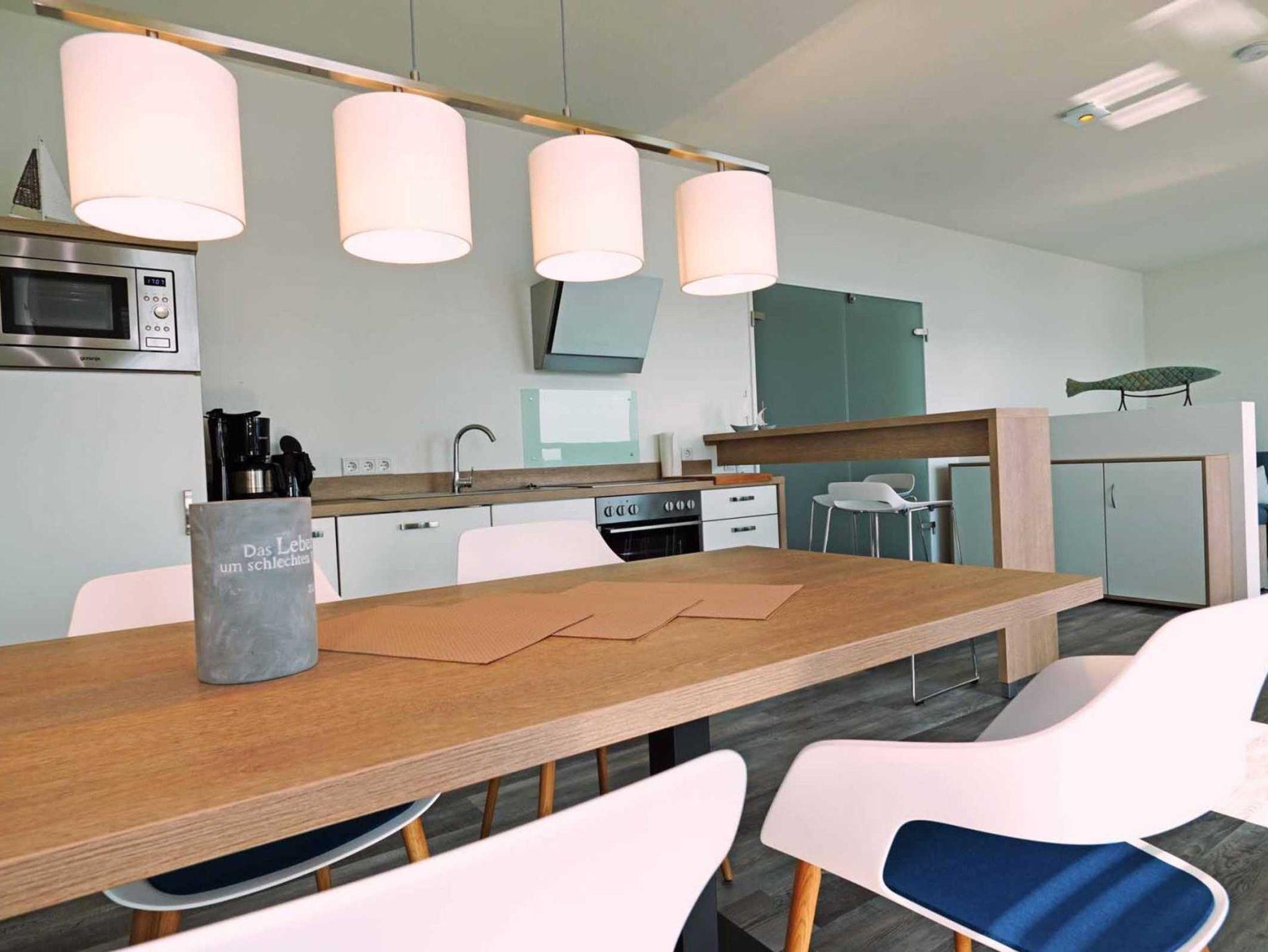 Die sorgfältig aufeinander abgestimmten Farben der Bodenbeläge, Möbel und Wohntextilien bilden eine harmonische Einheit. Für Unterhaltung sorgt ein Sat-TV mit Sky-Programmen. Einige Appartements besitzen eine private Sauna. Zu jeder Wohnung gehört ein Stellplatz entweder in der Tiefgarage oder im Außenbereich. Über einen Lift sind auch die Wohnungen in den oberen Stockwerken bequem zu erreichen. Eine Rezeption vor Ort ermöglicht ein stressfreies Ankommen. Gerne kümmert sich das Team um alle Fragen und Anliegen der Gäste und gibt Tipps zur abwechslungsreichen Urlaubsgestaltung in der Region. Für Aktivurlauber ist ein geräumiger Fahrradkeller vorhanden. Insbesondere Familien und Feriengäste, die einen längeren Aufenthalt an der Schleimündung genießen, schätzen die Möglichkeit, eine Münz-Waschmaschine sowie einen Münz-Trockner nutzen zu können.