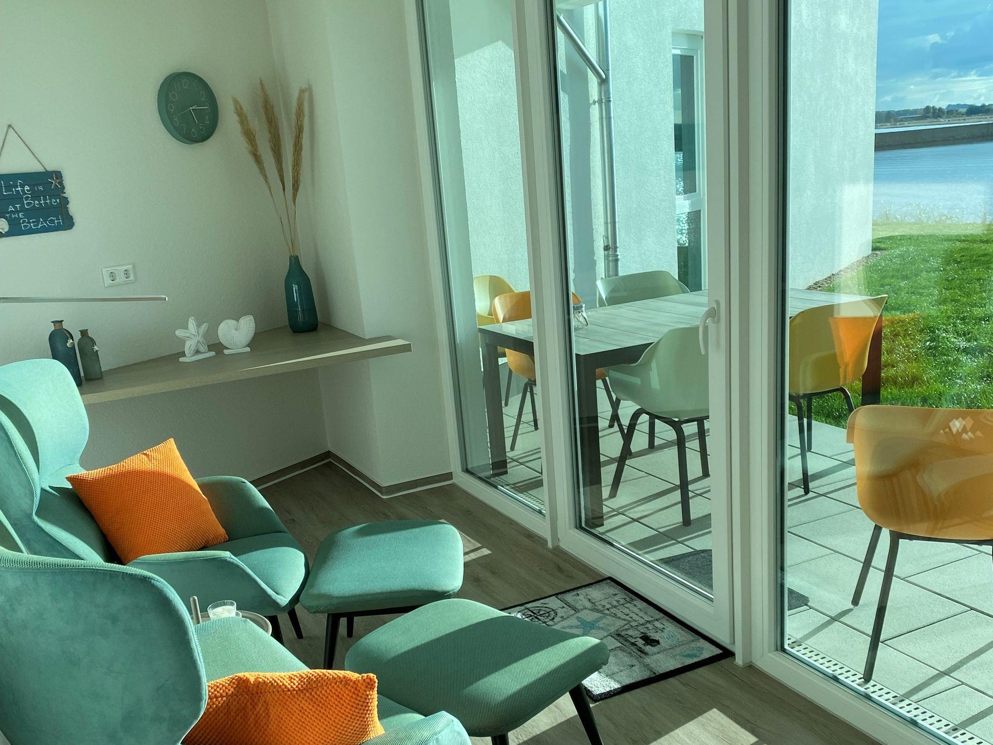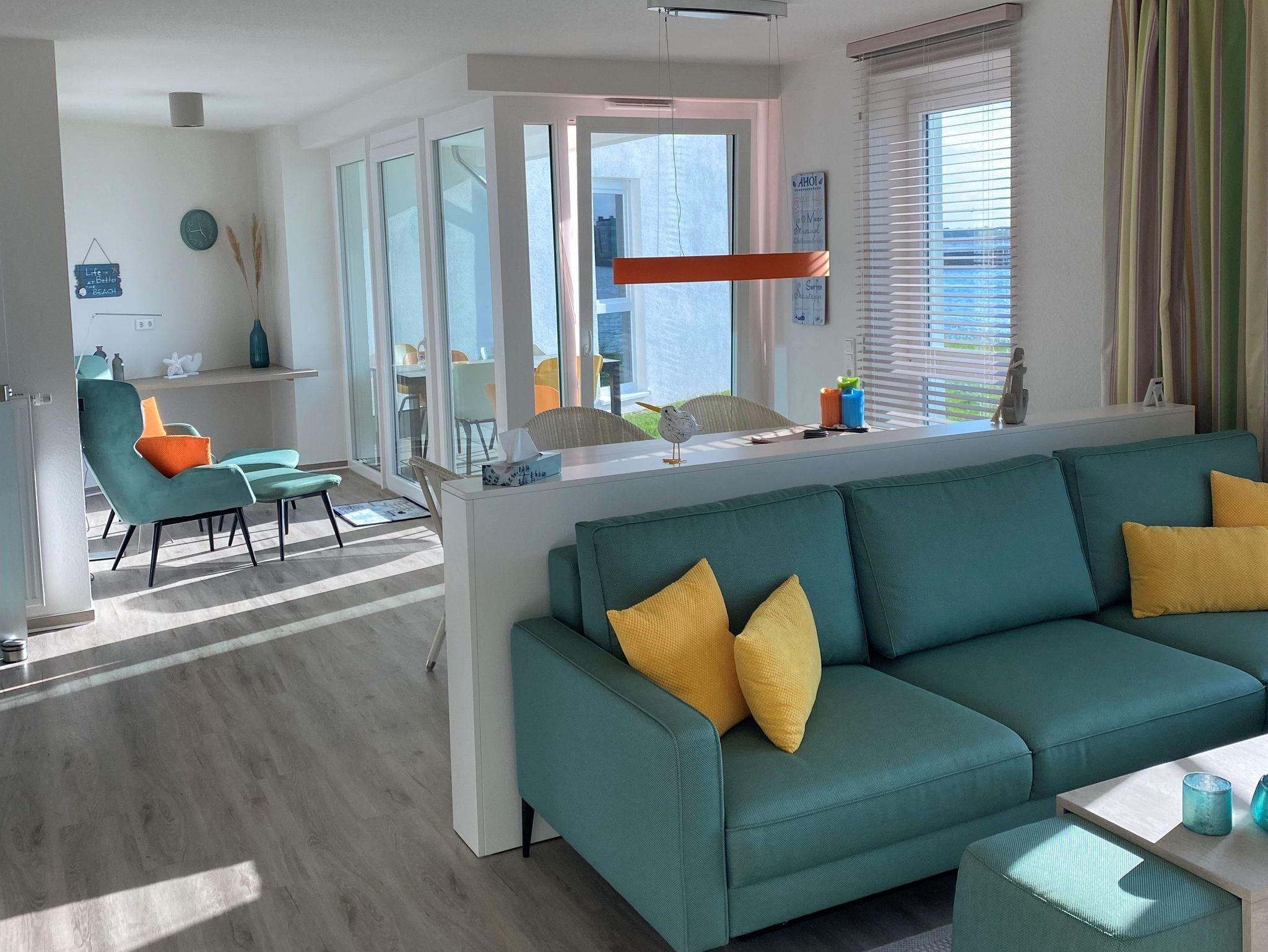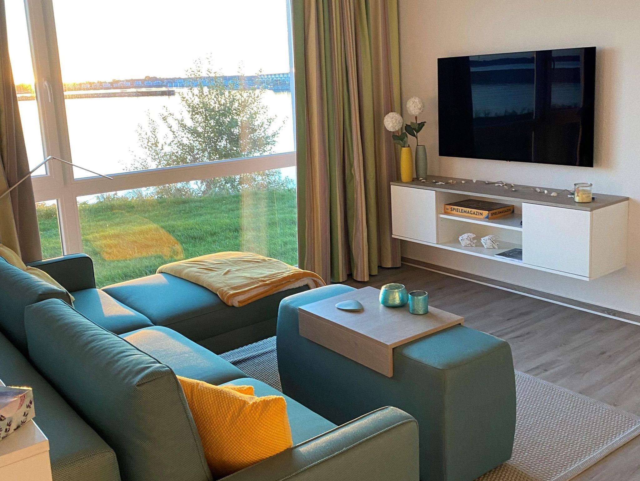 Helle Wohnung mit offenen Wohn-Küchenbereich, modern eingerichtet, Wasserblick, Terrasse Südwest Ausrichtung
