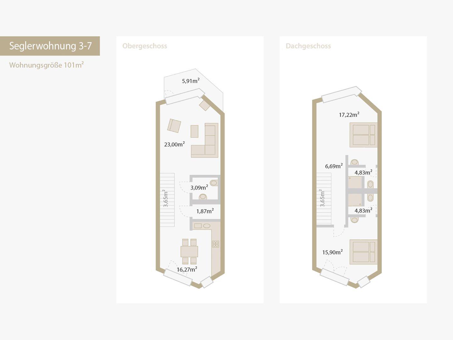 Auf ca. 102 m² finden bis zu 4 Personen bequem Platz. Die Wohnung verfügt über zwei Schlafzimmer, Fußbodenheizung, eine voll ausgestattete Küche, zwei moderne Duschbäder (en suite), ein zusätzliches WC, einen Balkon mit Blick auf die Schlei, und ein geräumiges Wohnzimmer. Hier erwarten Sie Annehmlichkeiten wie Spülmaschine, Trockner und Waschmaschine für Ihren Komfort.