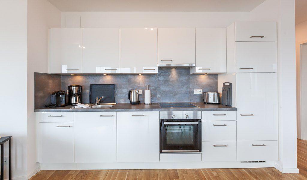 Ein besonderer Hingucker ist der helle, offene Wohn-/ Essbereich, welcher mit einer voll ausgestatteten Küche und bequemen Sitzmöglichkeiten ausgestattet ist. Zusätzlich befindet sich hier der Zugang zur Loggia. Diese verfügt über Gartenmöbel und einen Elektrogrill für sonnige Stunden.