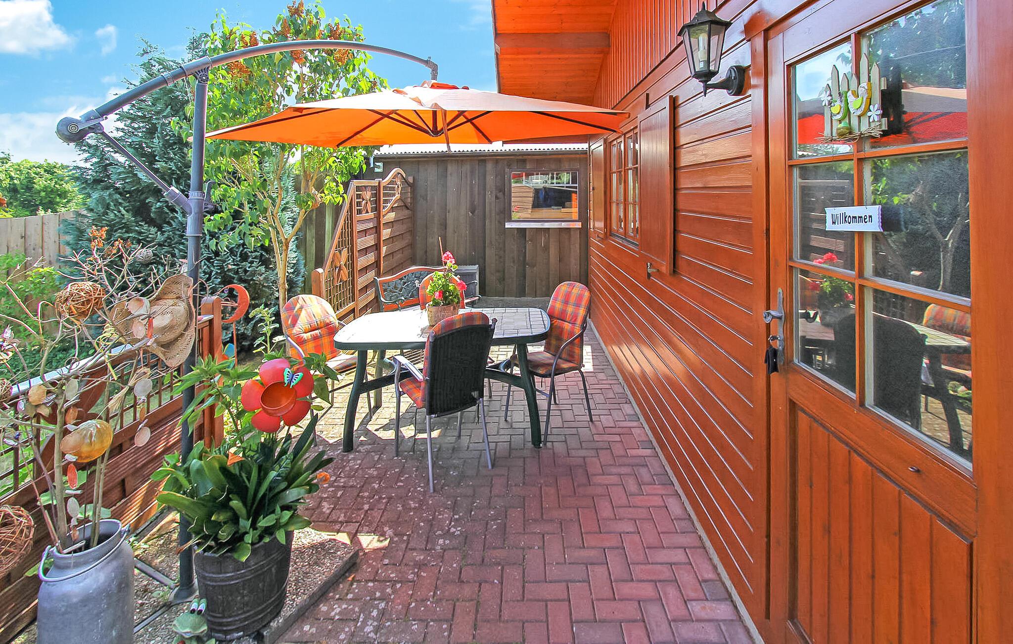 Feriehuset i rustik-romantisk bjælkehyttestil er beliggende separat på ejerens 3000 kvm boligområde i en rolig udkantsbeliggenhed. Fra terrassen har du en smuk udsigt over de ubebyggede omgivelser. Bedste forhold for naturgæster, der søger fred og ro Feriehuset, som blev moderniseret i 2015, er udstyret med stue (polstrede møbler, fladskærms-tv, stereoanlæg, spisebord), soveværelse (2 enkeltsenge, der kan sættes sammen), åbent køkkenalrum (elkomfur, køleskab med fryserum, miniovn , diverse køkkenmaskiner), åben hems (adgang via stige) med to sovemadrasser og badeværelse med brus/toilet. Huset er el-opvarmet (bruser/toilet med gulvvarme) Der er møbleret terrasse, legeplads, opbevaringsplads til cykler og parkeringsplads til rådighed Samlet pris inkluderer sengelinned, håndklæder, slutrengøring samt vand og energi forbrug. Kæledyr: Højst 1 kæledyr er tilladt i denne ejendom (op til en højde på 40 cm). Kargow er et lille samfund i Müritz Nationalpark, som er et af de vigtigste levesteder for sjældne dyr og planter takket være enorme skovkomplekser, mange små søer, enge og hede. I nabobyen Federow (4 km) ligger Müritz National Park Information Center, hvor besøgende blandt andet kan tage direkte del i disse sjældne rovfugles liv via et levende kamera i en fiskeørnebo Fra de mange guidede ture gennem nationalparken, der tilbydes her til Observation af vilde dyr og fugle er særlige højdepunkter ved tranernes rastepladser. Tusindvis af disse "lykkefugle"; stop her i foråret og efteråret. Besøgende kan bruge det veludviklede netværk af cykel- og vandrestier og kombinationen af bus, bådtur og cykel med Nationalparkbilletten; Du kan også selv udforske området glimrende. Ikke langt fra Kargow er kilderne til floderne Peene og Havel. Turistcentret i Mecklenburg Lake District med flere restauranter og indkøbsmuligheder, klimakurstedet Waren (Müritz) ligger cirka 8 km væk og kan også nås med bus.