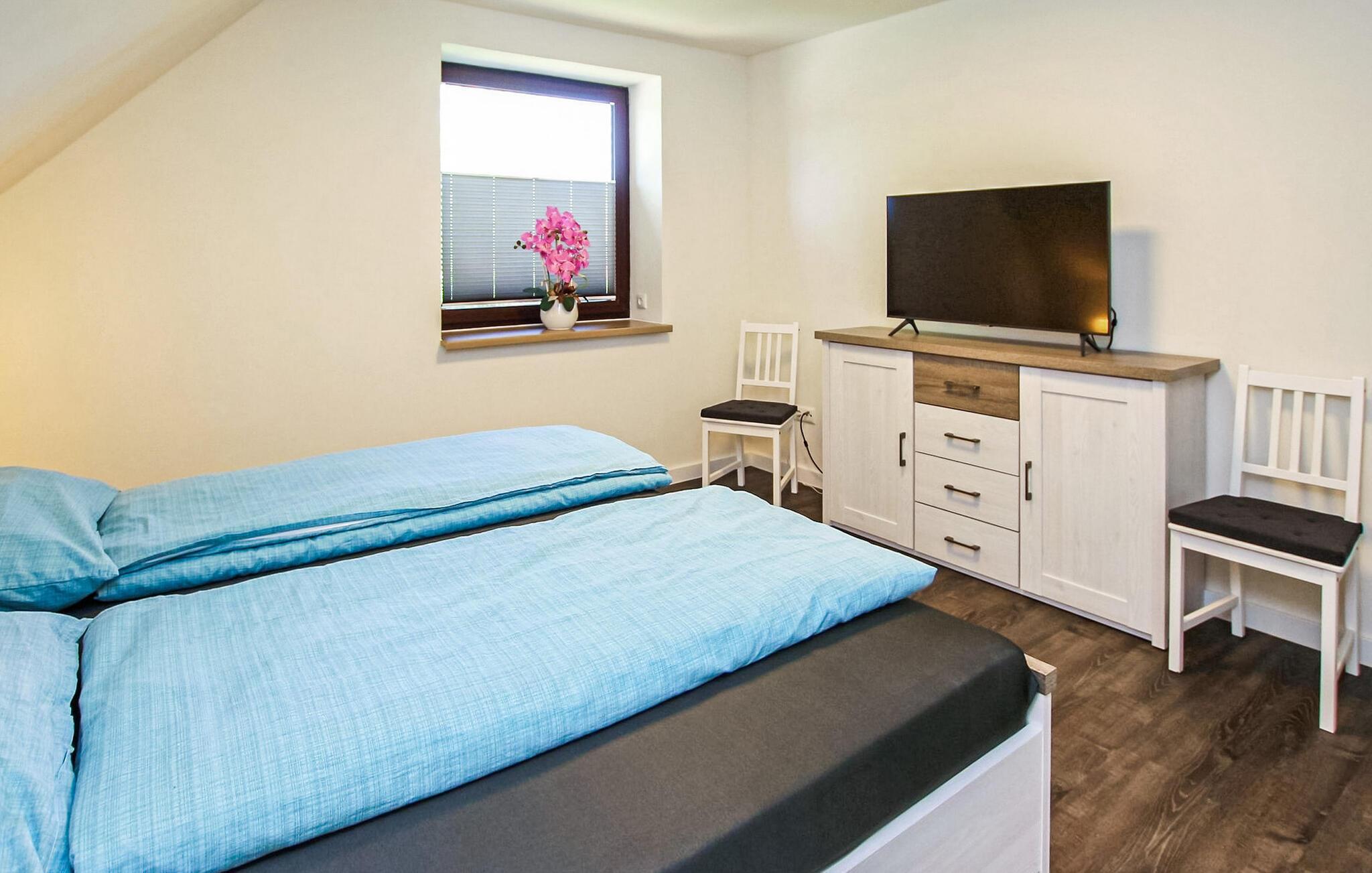Roligt beliggende for enden af landsbyen, omgivet af masser af grønt, er der 3 store, moderne ferielejligheder for i alt op til 22 personer på en helt indhegnet beboelsesejendom på øverste etage i en boligejendom, der blev totalrenoveret i 2022, som er ideelle til familieferier, møder eller mindre grupper. Et naturligt badeområde ved Hofsee ligger cirka 1,5 km væk og en restaurant ligger cirka 4,50 km væk, Yderligere spisemuligheder og diverse indkøbsmuligheder findes cirka 6-7 km i Waren (Müritz). Denne centralt opvarmede (delvis gulvvarme), smagfuldt indrettede ikke-ryger lejlighed for op til 6 personer i ét plan har insektbeskyttelse på soveværelsesvinduerne og kan nås via en åben udvendig trappe og en fælles gang. Lejligheden har et rummeligt opholdsområde (sovesofa og ekstra seng til 2 personer, fladskærms-tv, musikanlæg) med åbent køkken (spisebord, el-komfur med ovn, køleskab med fryser mulighed, opvaskemaskine, kaffemaskine, brødrister, elkedel, kaffemaskine), soveværelse med dobbeltseng og fladskærms-tv, badeværelse (bruser i gulv, toilet, hårtørrer) og endnu et soveværelse med 2 enkeltsenge. Lejligheden har en lille altan med egen adgang, en anden altan er foran indgangspartiet. Parkeringspladser, cykelopbevaringsfaciliteter, gratis Wi-Fi og et udendørs område med overdækket opholdsområde, parasol og grill er også til rådighed for alle gæster. Efter anmodning kan eksisterende babyudstyr (seng inklusiv madras, tæppe, høj stol) stilles til rådighed. Den samlede pris inkluderer slutrengøring, sengetøj, vand og energiforbrug. Medbring venligst dine egne håndklæder eller lej dem mod et gebyr. Betales på stedet: spa skat, håndklæder (hvis forespurgt). Kæledyr er ikke tilladt i denne ejendom. Kargow er et lille samfund i Müritz Nationalpark, som er et af de vigtigste levesteder for sjældne dyr og planter takket være enorme skovkomplekser, mange små søer, enge og hede. I nabobyen Federow (4 km) ligger Müritz National Park Information Center, hvor besøgende blandt andet kan tage direkte del i disse sjældne rovfugles liv via et levende kamera i en fiskeørnebo Fra de mange guidede ture gennem nationalparken, der tilbydes her til Observation af vilde dyr og fugle er særlige højdepunkter ved tranernes rastepladser. Tusindvis af disse heldige fugle stopper her om foråret og efteråret. Besøgende kan nemt selv udforske regionen ved hjælp af det veludviklede netværk af cykel- og vandrestier og med kombinationen af bus, bådtur og cykel via nationalparkbilletten. Regionen er også hjemsted for Havelquell-søerne, et populært padleområde.I Federow er der en gård med restaurant og den eneste radiospillekirke i Tyskland. Yderligere spisemuligheder og en række indkøbsmuligheder findes i det klimatiske kursted Waren (Müritz), som ligger cirka 7 km væk og kan nås med bus med Müritz-Rundum-Ticket (inkluderet i spakortet) .