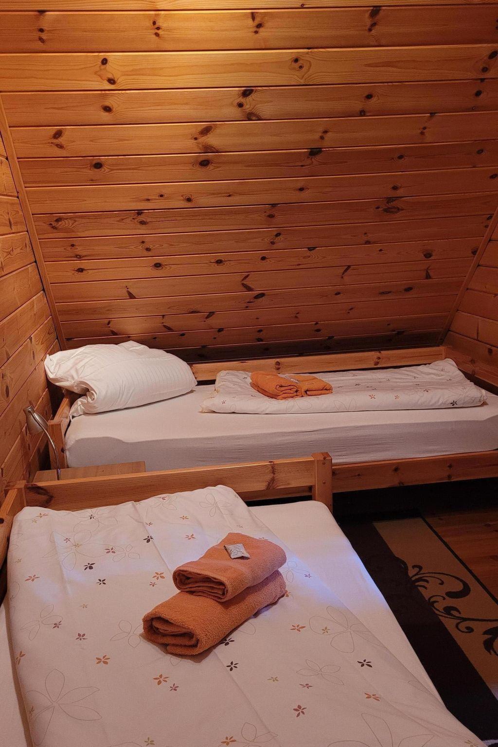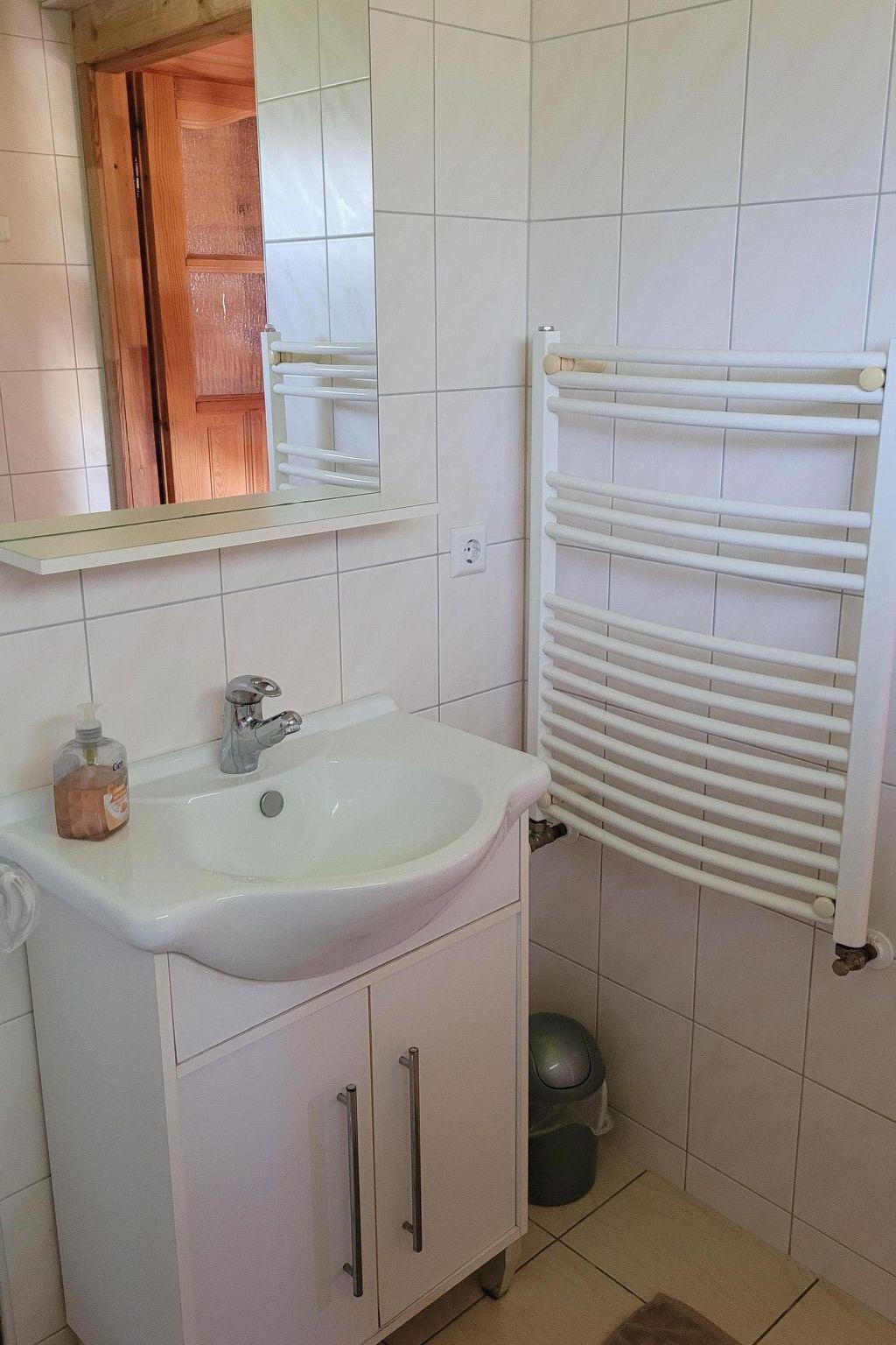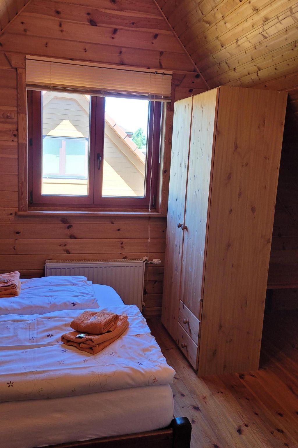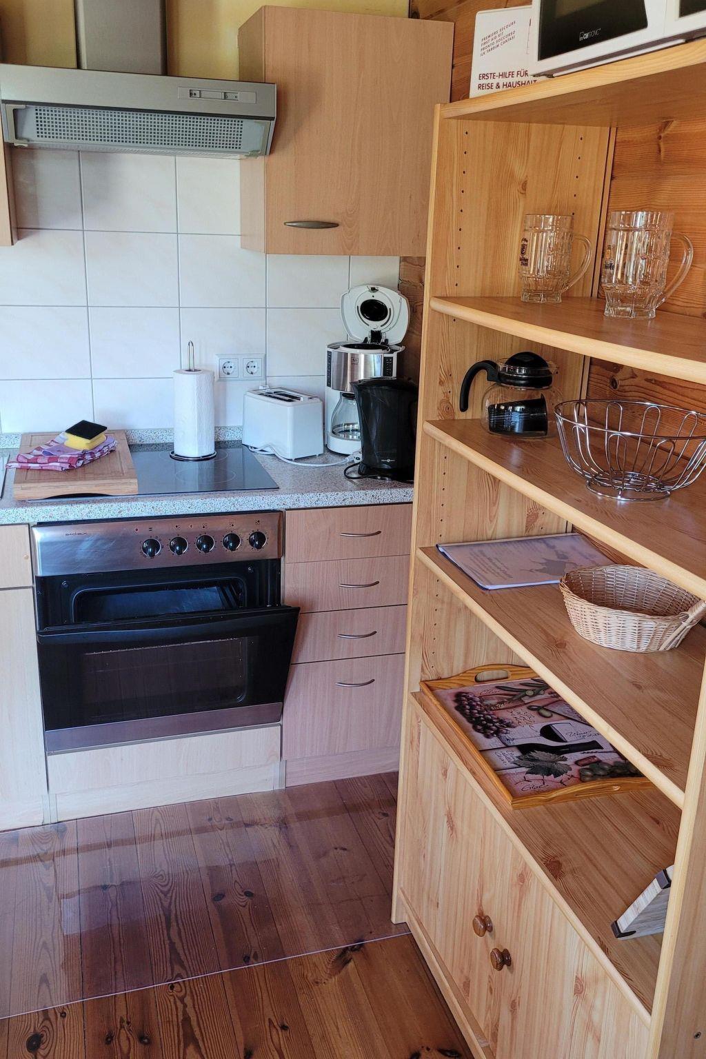 The holiday flat no. 2 is located together with another holiday flat (no. 1) in a wooden house at the beginning of the village. The flat extends over 2 floors. On the ground floor is the living room, the kitchen with dining area and the bathroom with shower/WC and washbasin. A balcony door leads to the outside terrace. The living room, kitchen and dining area are connected as open-plan areas. The living area is equipped with a satellite TV, CD player, radio and a cosy couch. The two bedrooms are located on the upper floor. The first bedroom has a double bed 140 cm wide, the second has two single beds, each 80 cm wide. The terrace is equipped with a parasol and various items of garden furniture. In front of the holiday homes is a 2400 square metre lawn with an uninterrupted view of the surrounding countryside and a 250 square metre fish pond. The village's own bathing area is only a few hundred metres away. The most beautiful beach on the Müritz, with marvellous sand, beach chairs and appropriate facilities, can be reached by bike in 10 minutes. There you can also set sail with the White Fleet or hire a boat yourself. In the neighbouring town of Klink (2 km) there is an indoor tennis court with adjoining bowling alley, as well as a sports field. You can hire bicycles just 200 metres from the holiday flat. A bus stop, from which you can travel to Waren, is only 150 metres away. In Röbel (18 km) you can visit the local thermal baths in the cooler months of the year.