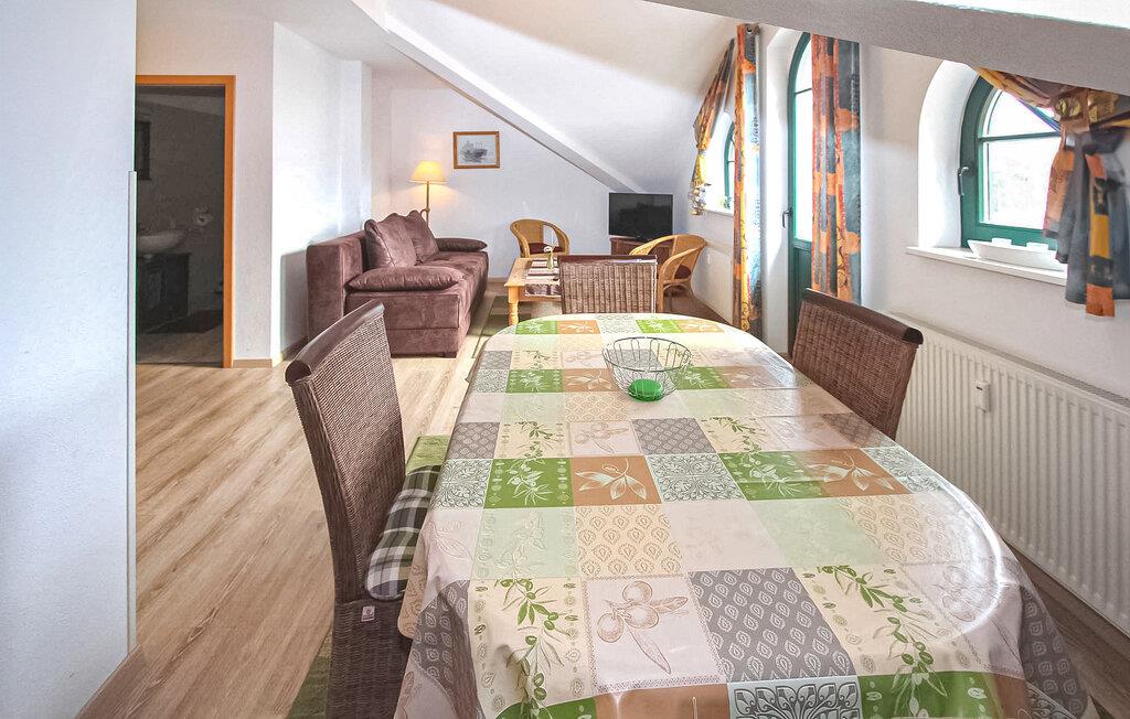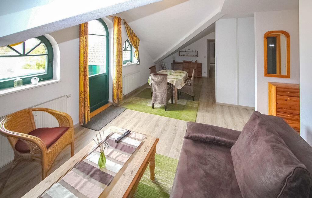 De fem ferielejligheder ligger på øverste etage i et bolig- og erhvervsbyggeri med en central beliggenhed, cirka 500 m fra Østersøstranden. Der er en restaurant, et apotek og en souvenirbutik i bygningen. Adgang til lejlighederne, parkeringspladser, cykelrum og et centralt udendørs opholdsområde med siddepladser og grill er til rådighed for feriegæster i et separat og afgrænset område. Den samlede pris inkluderer vand- og energiforbrug samt slutrengøring. Du skal selv medbringe sengelinned og håndklæder. Husdyr: ÉN lille hund op til en højde på 30 cm er tilladt i denne ejendom. Denne lejlighed har en størrelse på cirka 50 kvadratmeter og er velegnet til op til 4 personer. egnet. Det har en stue (polstret opholdsområde med sovesofa, spiseplads, TV, radio), tekøkken med el-komfur, soveværelse (dobbeltseng, udtræksseng), bruser/toilet, centralvarme. Karlshagen er et feriested ved Østersøen i den nordlige del af øen Usedom. Restauranter, butikker, lystbådehavn med fragtmuligheder og cykelstier ligger i byen. Ridestald, tennis og bowlingbane ca 2,5 km. Stedet har en smuk sandstrand.
