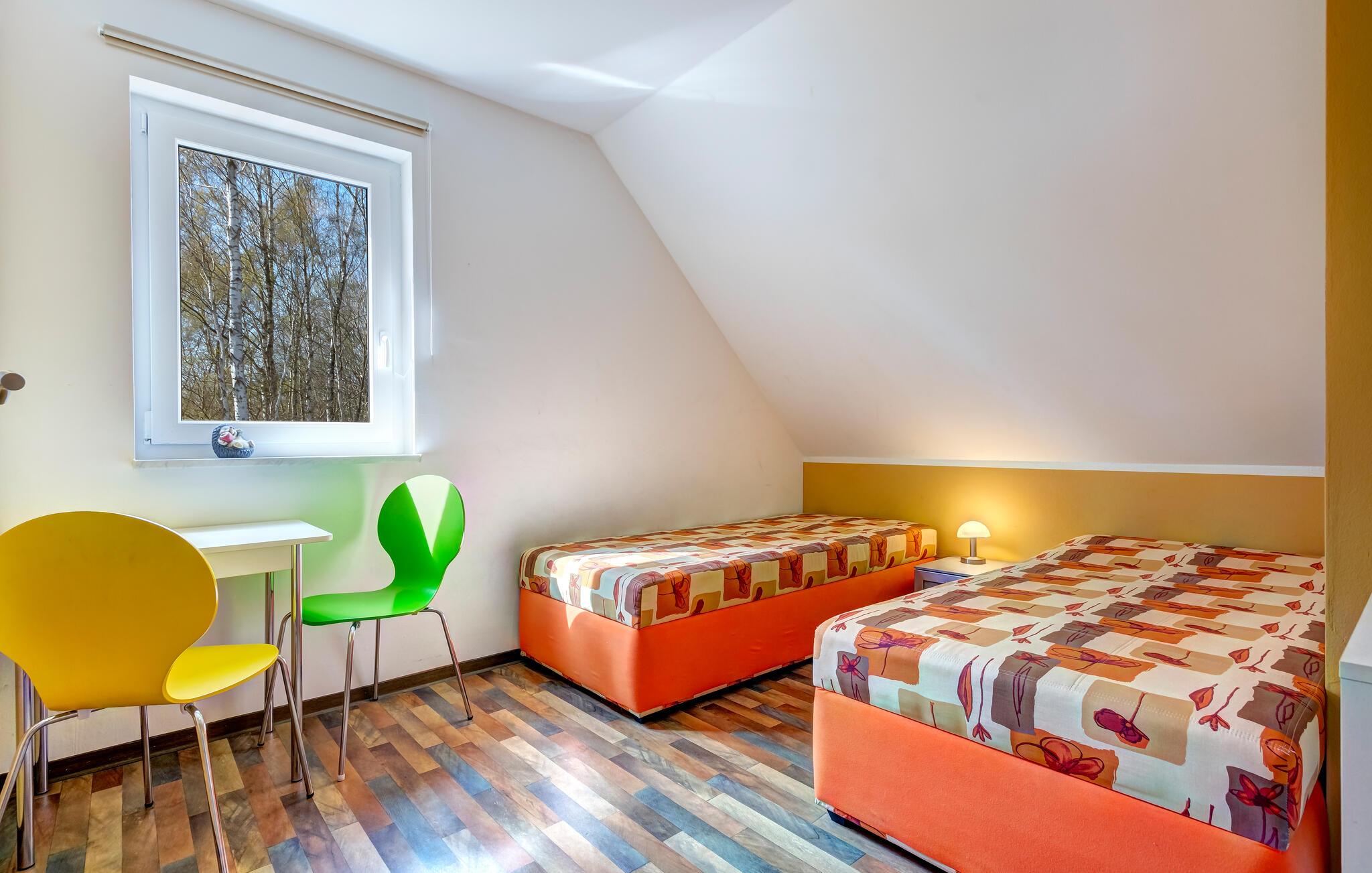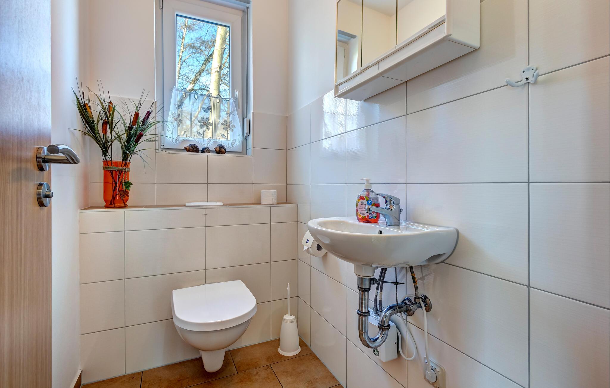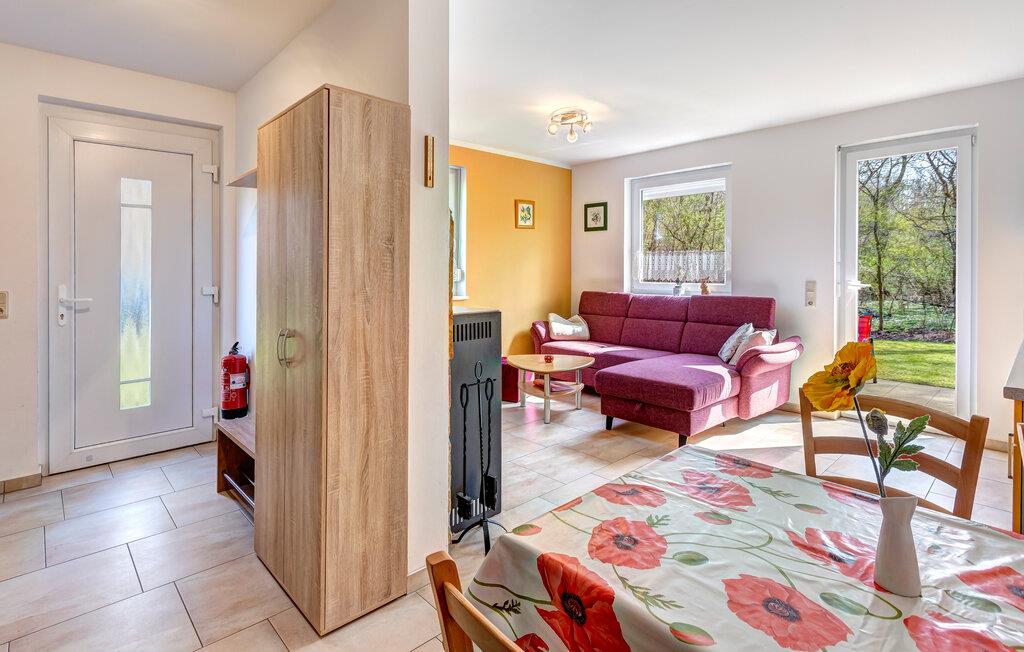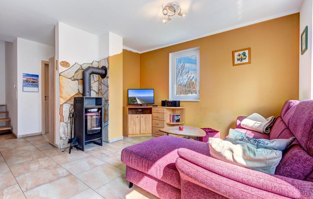 Denne ene af to ferielejligheder ligger inden for et sommerhus på en 650 kvm, separat fritidsejendom i en lille sommerhusbebyggelse i udkanten af ??by og skov. Afstanden er ca. 1,2 km (i luftlinje) til Østersøen og ca. 1,6 km til stranden (korteste vej). -fi, pejs), et åbent tekøkken (komplet med opvaskemaskine, el-komfur, køleskab med fryser, mikroovn), 2 soveværelser på øverste etage (1 x dobbeltseng og LCD TV/DVD, 1 x 2 senge, ekstra barneseng, en badeværelse med brus/toilet på øverste etage, gæstetoilet i stueplan og centralvarme Lejligheden har møbleret terrasse, aflåselig cykelkælder, børnestol, grill og 2 parkeringspladser afhængig af vejret, internet (WLAN ) er kun tilgængelig i begrænset omfang via Wireless Giga-Cube. Der er også et lille saunahus på stedet mod betaling. Den samlede pris inkluderer: vand, energiforbrug, slutrengøring. Medbring venligst eget sengelinned og håndklæder. Rygning er kun tilladt udendørs. Østersøferiestedet Karlshagen opkræver en turistskat, som opkræves via ejendomsadministratoren.