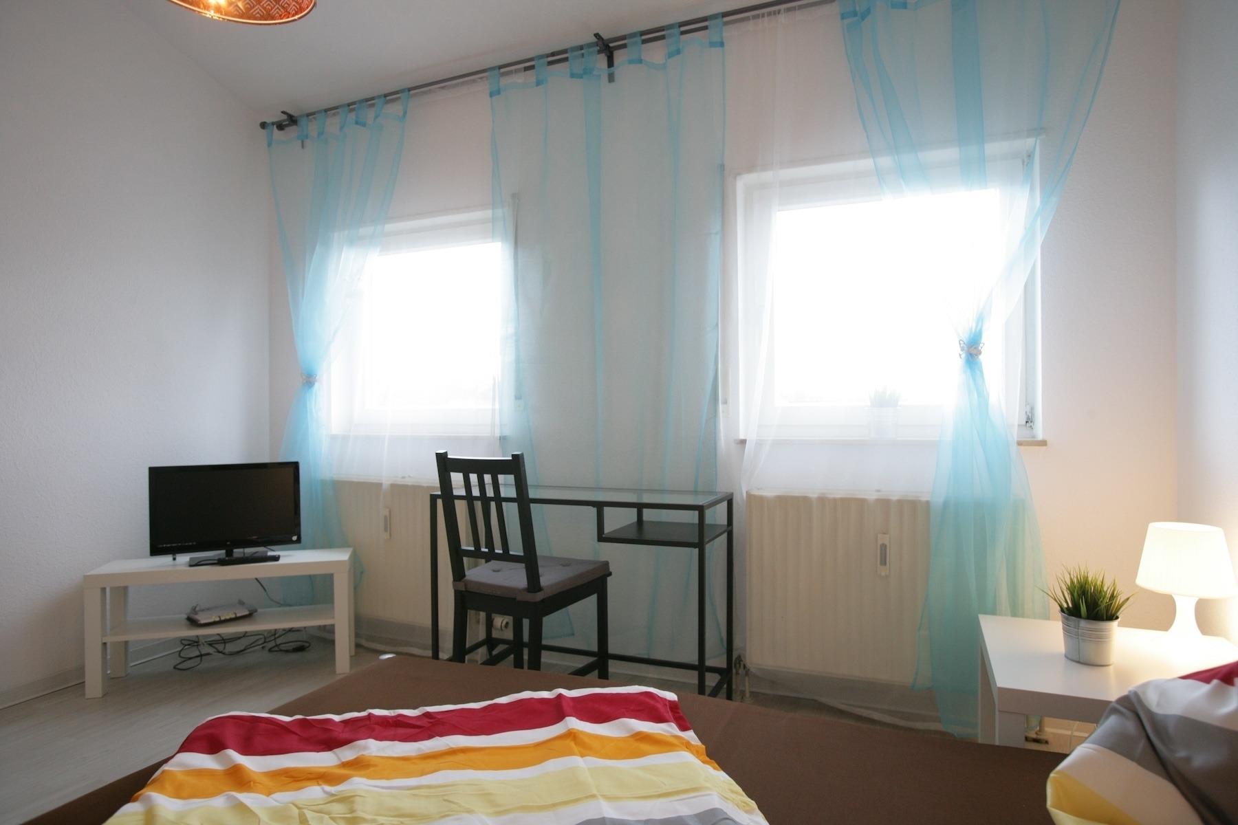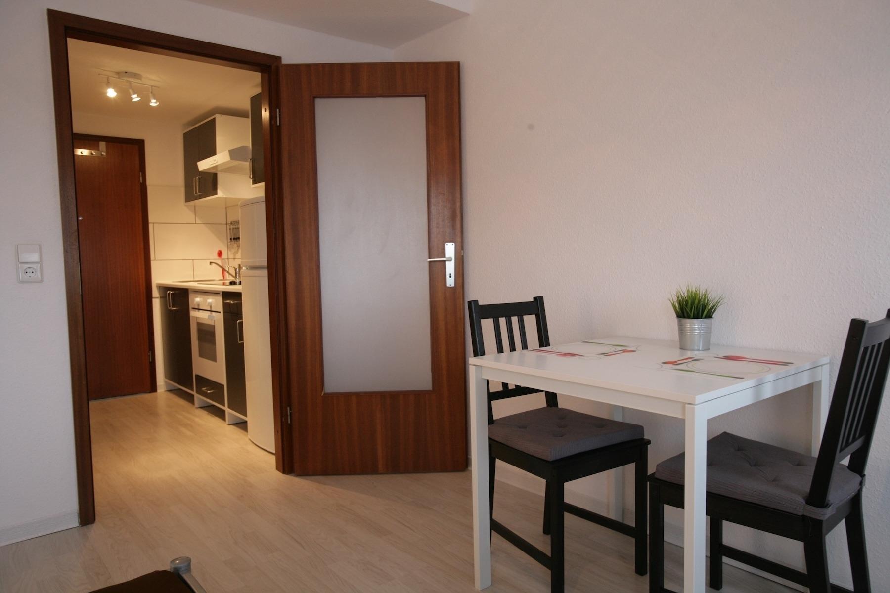 - quiet, cental and very good traffic connection, in front of the house - shops of the everyday life, like supermarket, butcher, baker, drugstore, banks, are to be reached etc. - the city bus and train stop in front of the house. From here they are at approx. 15 minutes directly in the city center - Apartments are complete furnished. We have a bed 140x200, TV, table, chairs, couch, cabinet, own kitchen, own bathroom with shower. Washing machines and dryers are in the house. - free parking infront of the house - All apartments with own Wifi-Internet -