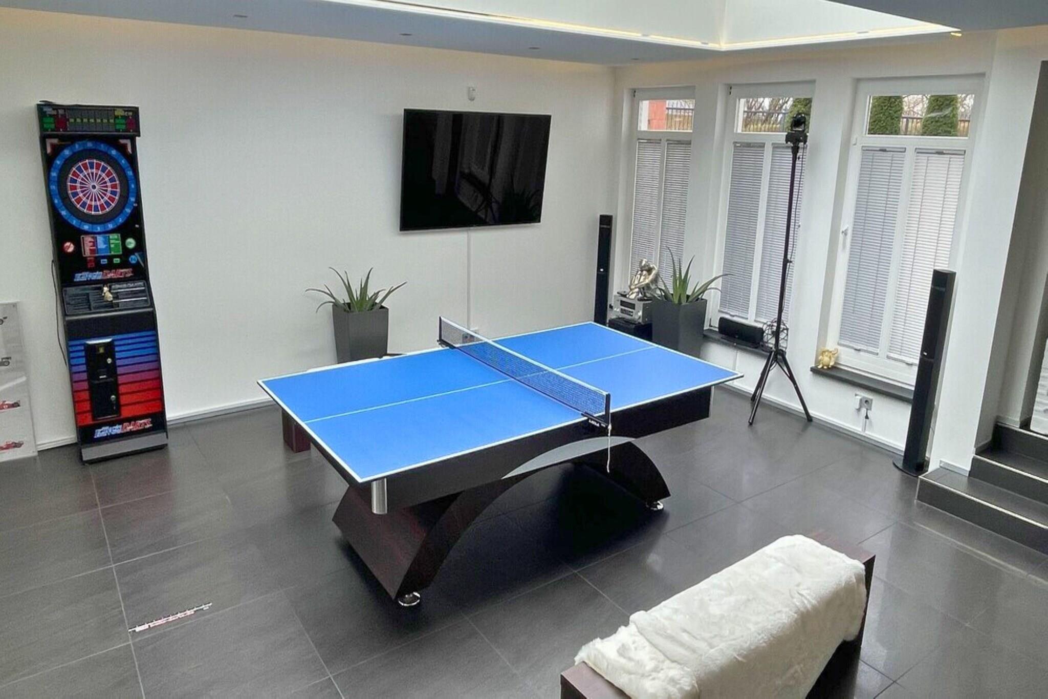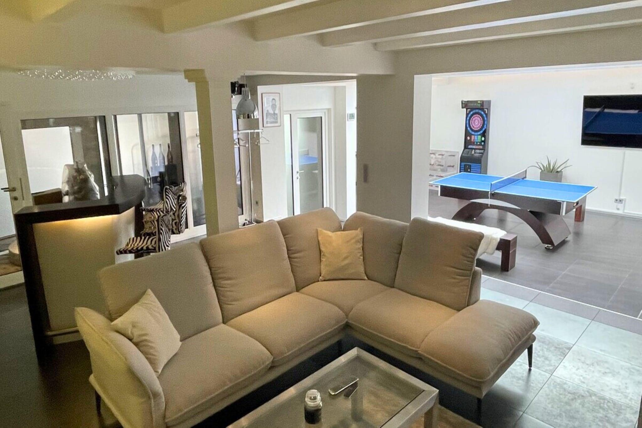 Velkommen til jeres stilfulde ferielejlighed i hjertet af Hunsrück! Denne cirka 160 m² store kælderlejlighed i Kastellaun har plads til op til 4 personer og kan prale af exceptionelle faciliteter – ideel til familier, venner eller aktive feriegæster. Højdepunktet: et rummeligt opholdsrum med billard, bordtennis, dart og forskellige spil – til sjov uanset vejret. Hotellets bar i stuen inviterer jer til at slappe af i slutningen af dagen. To soveværelser, hver med eget badeværelse, et fuldt udstyret køkken med spisebord og moderne faciliteter såsom opvaskemaskine, espressomaskine, mikrobølgeovn og ovn sikrer maksimal komfort. Yderligere faciliteter inkluderer vaskemaskine, tørretumbler, barneseng, højstol, terrasse med grill, havemøbler, cykelkælder, parkering direkte ved huset og endda en ladestation til elbiler – perfekt til bæredygtig rejse. Uanset om I leder efter en aktiv familieferie, afslappende dage på landet eller hyggelige aftener i baren – denne ferielejlighed i Kastellaun lader intet tilbage at ønske!