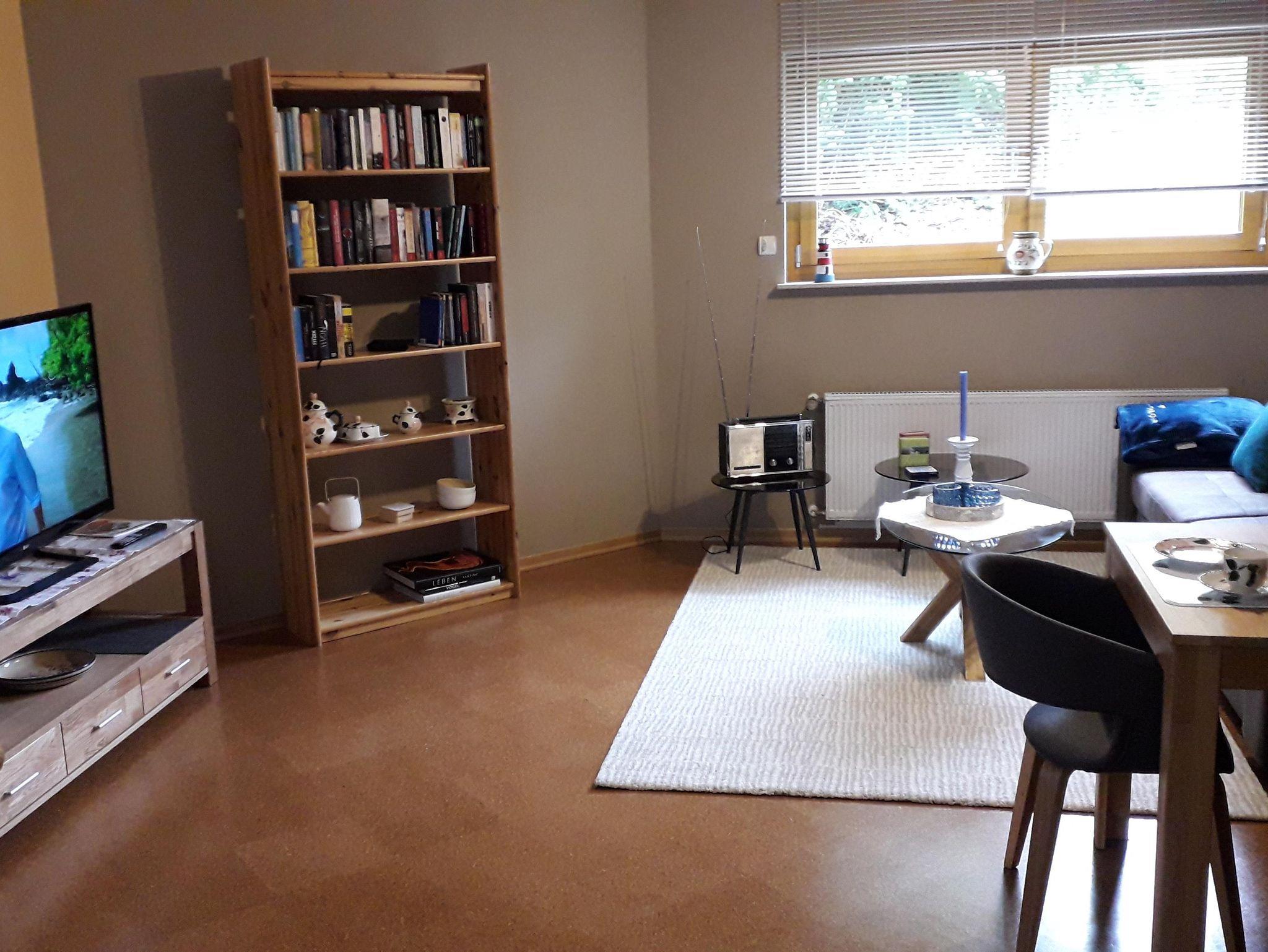Unsere Ferienwohnung liegt sehr ruhig und besteht aus Wohn-/Esszimmer, Schlafzimmer Küche und Bad. Sie befindet sich im Untergeschoss (15 Stufen), hat aber normale Fenster.