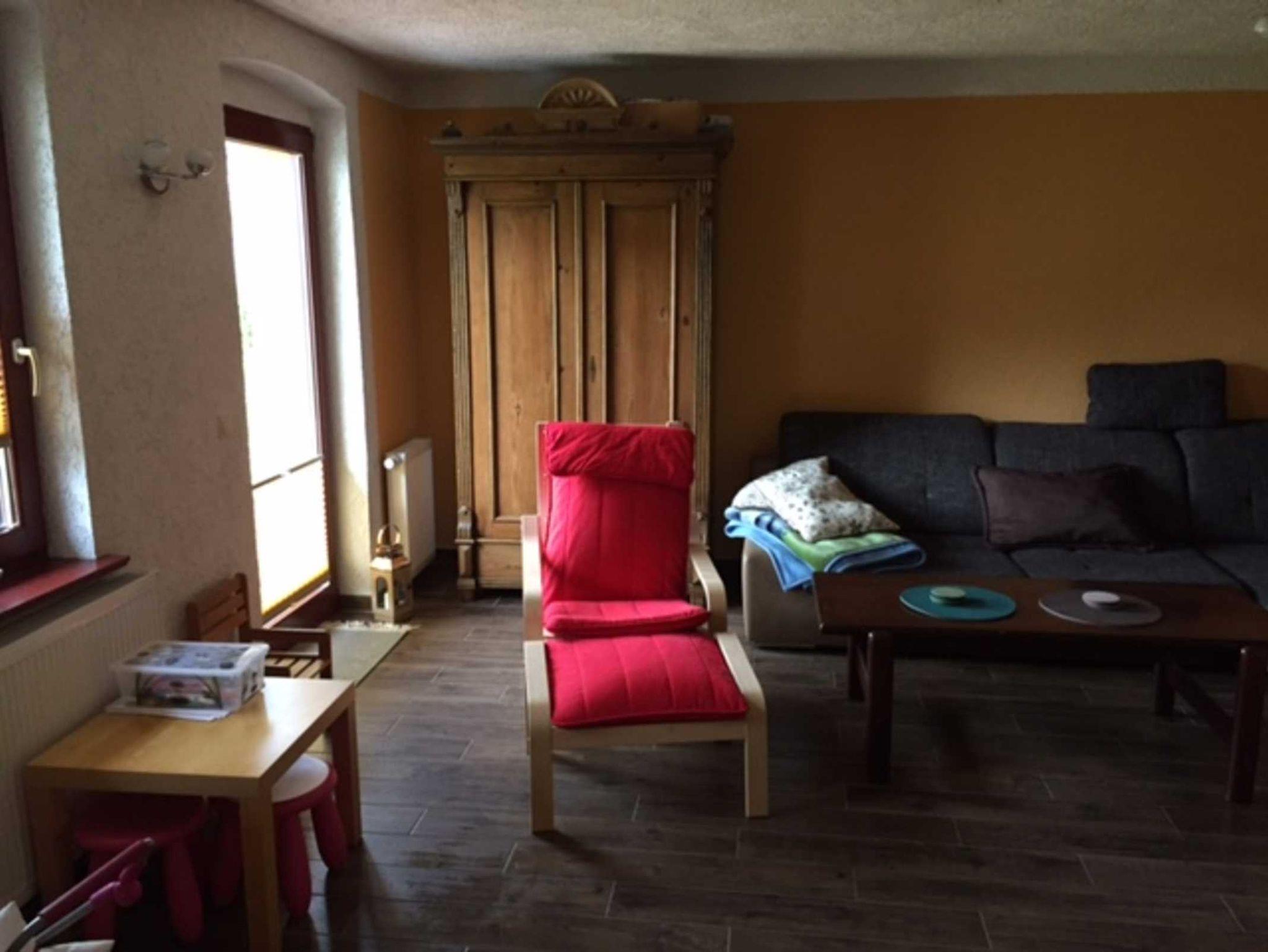 Zwei weitere Aufbettungen sind im separatem Zimmer (Durchgangszimmer) auf dem Schlafsofa/Schlafcouch möglich. Eine Terrasse mit Grillmöglichkeit und ein kleiner Spielplatz im Garten. PKW Stellplatz auf dem Grundstück. Bettwäsche und Handtücher sind mitzubringen bzw. können auf Anfrage gemietet werden.