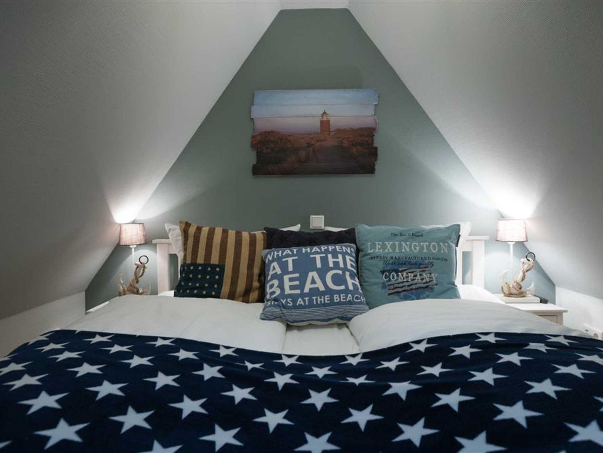 Die Farbauswahl entspricht dem heutigen Zeitgeist und ist insgesamt sehr harmonisch gehalten. Der Wohnbereich, die Küchenzeile und das Badezimmer befinden sich im Obergeschoss. Das Schlafzimmer mit gemütlichem Doppelbett befindet sich im Dachgeschoss.