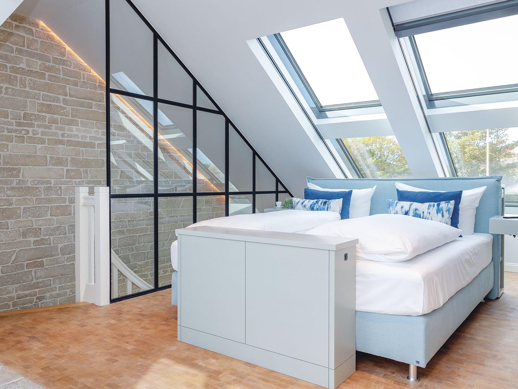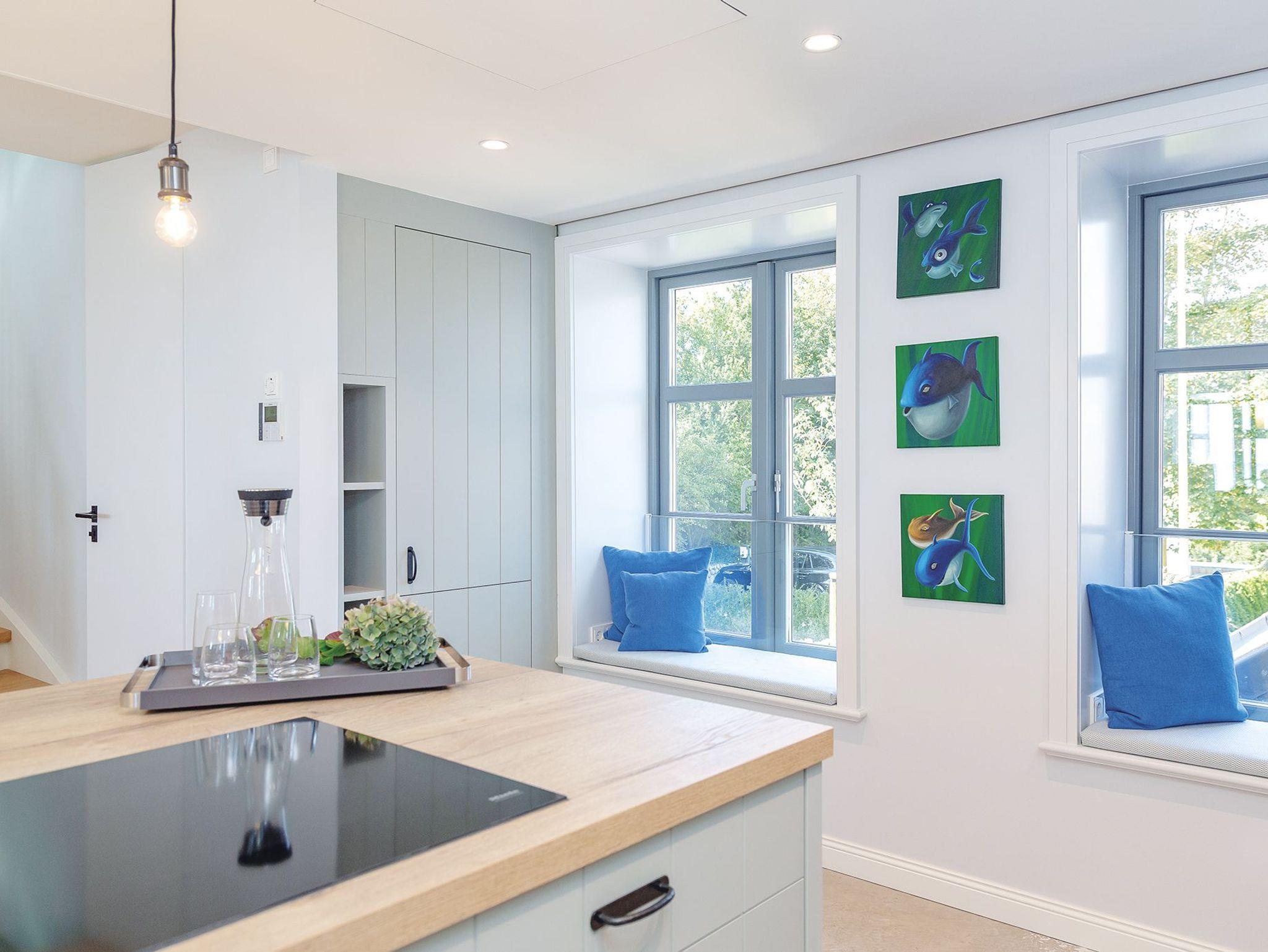 Früher geschäftiges Packhaus am Keitumer Hafen - heute exklusiver Logenplatz mit unvergleichlichem Wattblick. Dieses exklusive Ferienquartier gehört nicht ohne Grund zu den Keitumer Geschichtspunkten - das Endhausteil für bis zu sechs Gäste lässt keine Wünsche offen. Im ebenerdigen Eingangsbereich auf der Westseite finden Sie große Einbauschränke und ein Gäste-WC. Ein elegantes Doppelschlafzimmer samt Bad mit Dusche und Wanne schließen an. Von hier haben Sie auch Zugang zu der privaten Terrasse mit unvergleichlich schönem Wattblick gen Sonnenaufgang. Über eine elegante Treppe erreichen Sie das stilvoll eingerichtete Untergeschoss mit extragroßem Spiegel und vielen Einbauschränken. Nebenan erwartet Sie ein weiteres nicht minder behagliches Doppelschlafzimmer und ein Bad mit XXL-Dusche en suite. Im 1. OG meint man über dem Watt zu schweben. Von dieser komplett offen gestalteten Etage mit voll ausgestatteter Küche, einladend großem Esstisch, Elektro-Gaskamin, Gäste-WC und Sofas vor den Fenstern mit atemberaubendem Wattblick erreicht man die offene Galerie im 2. OG. Hier halten dann Wellness und Achtsamkeit Einzug. Neben dem Doppelbett mit freiem Blick in den Sternenhimmel durch die riesigen Dachfenster, gibt es hier auch eine gläserne Dusche mit Ausblick und eine Sauna für Zwei. Das ganze Hausteil ist mit edelsten Materialien ausgestattet, die Böden sind mit Naturstein und Echtholz ausgelegt.
