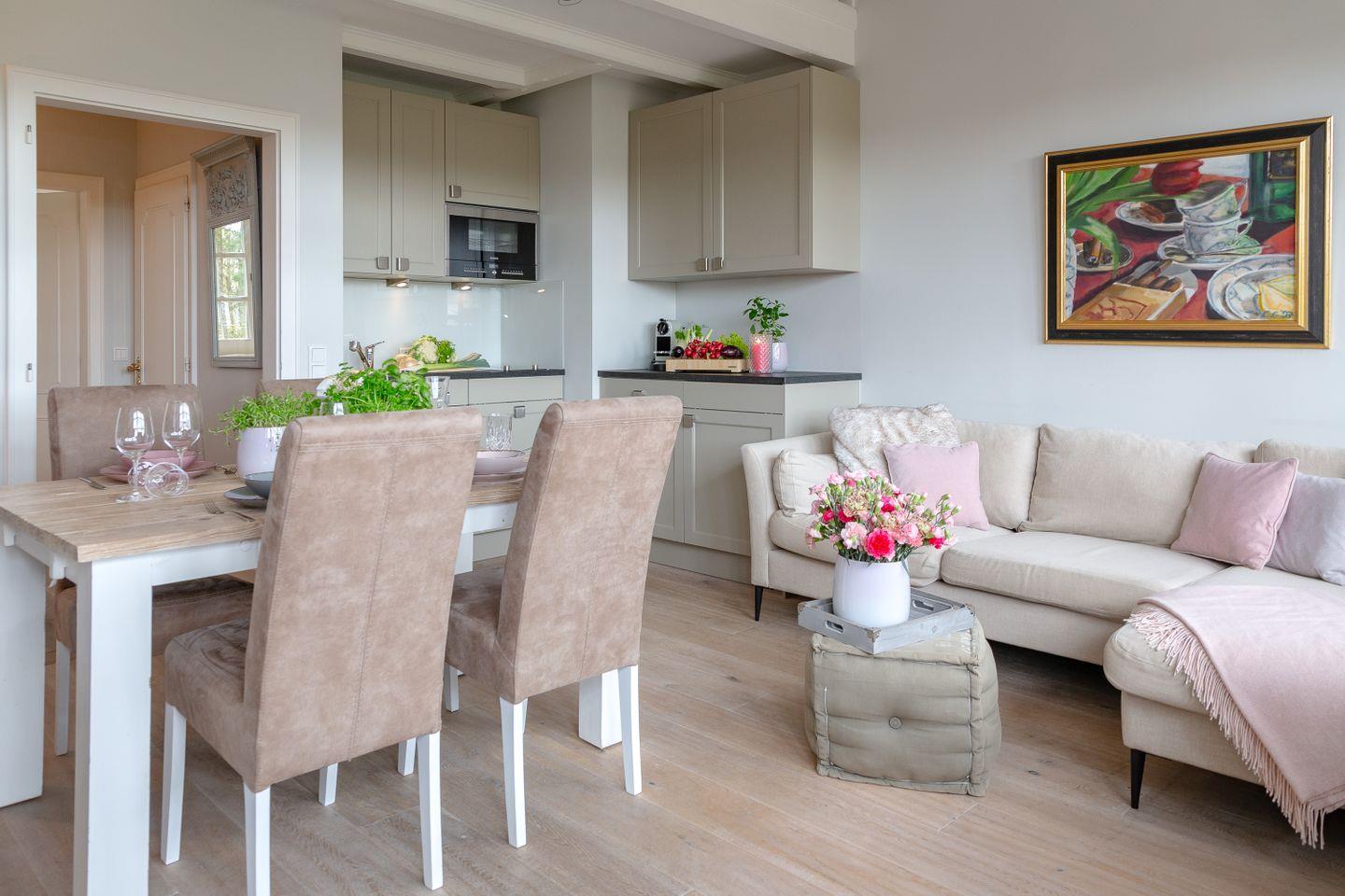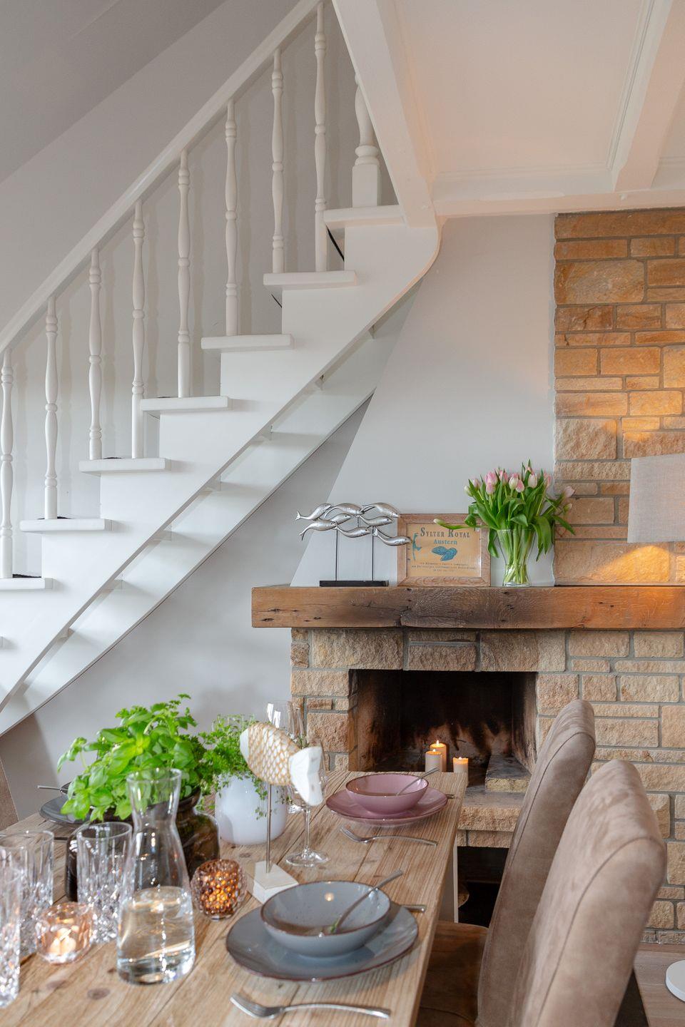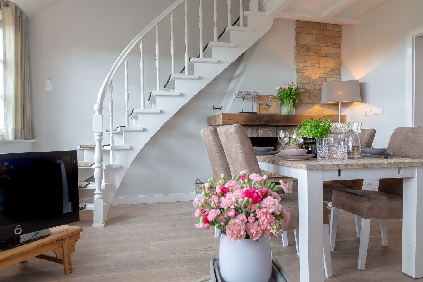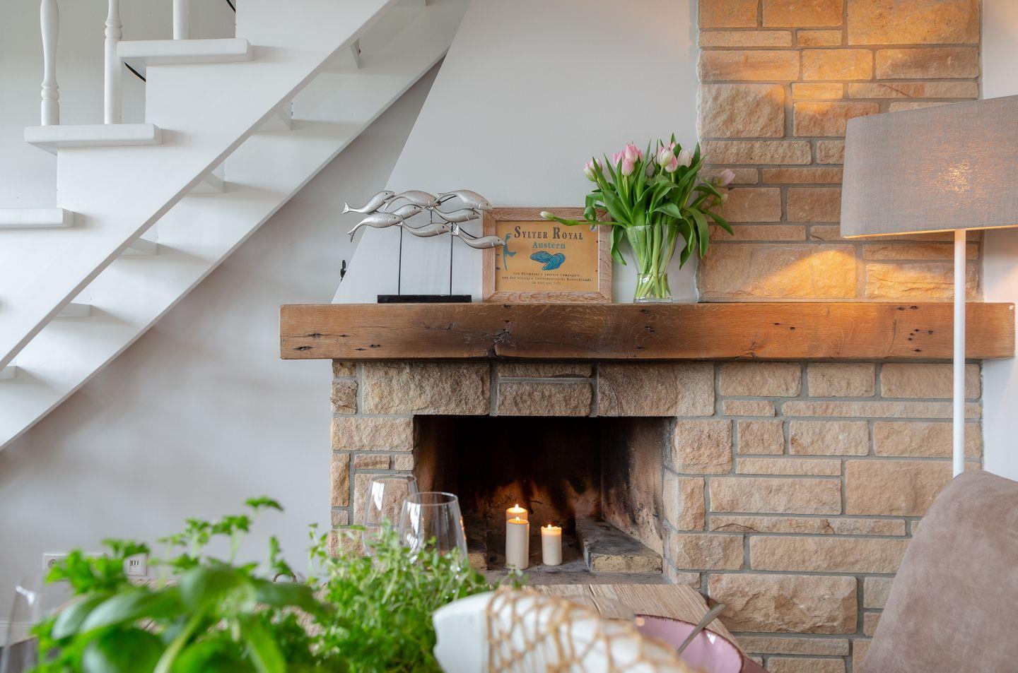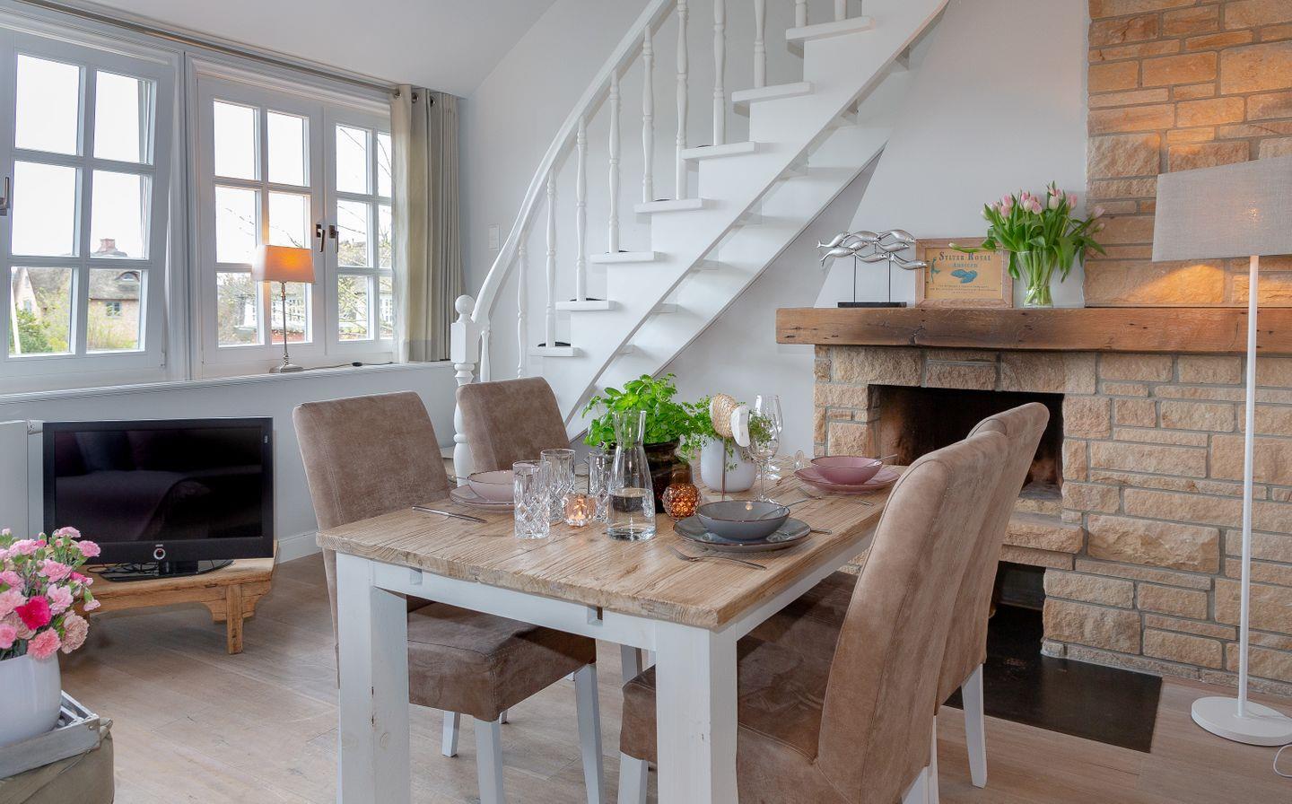 Der offene Wohnbereich mit stilvollem Kamin lädt zu geselligen Stunden mit Familie oder Freunden ein. Die modern ausgestattete Küche mit Filterkaffeemaschine macht gemeinsames Kochen zum Vergnügen und den großzügigen Essplatz zum beliebten Treffpunkt.
