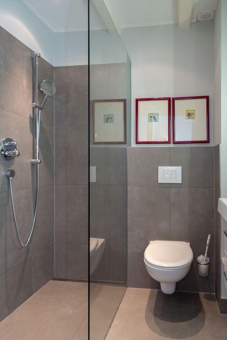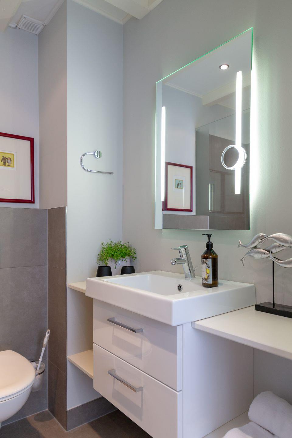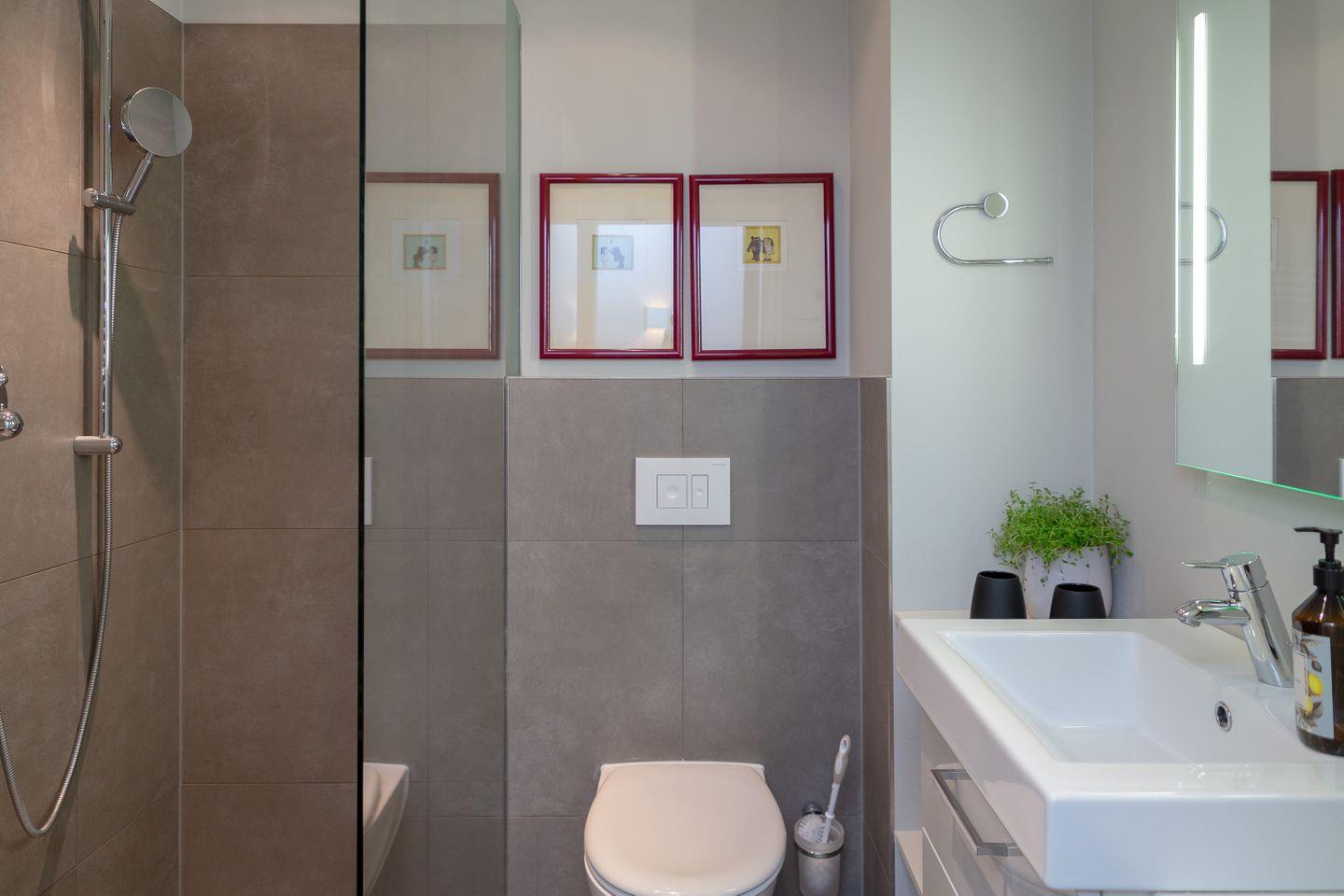 Im modernen Badezimmer erwartet Sie eine großzügige Dusche, zusätzlich sorgen Waschmaschine & Trockner (gemeinschaftlich) sowie ein Föhn für angenehmen Komfort während Ihres Aufenthalts.