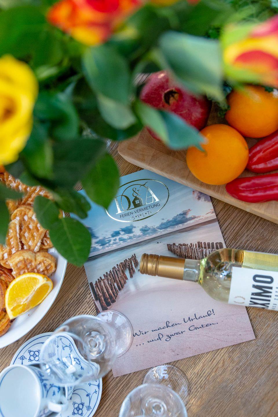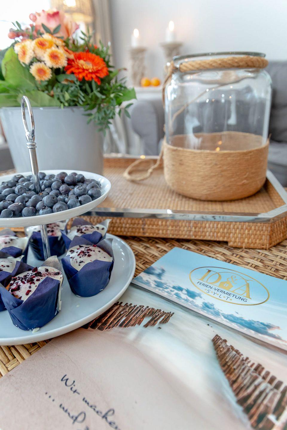 Die geschützte Terrasse mit eigenem Strandkorb lädt zum Entspannen und Genießen der frischen Sylter Luft ein – ideal für sonnige Tage und laue Sommerabende.