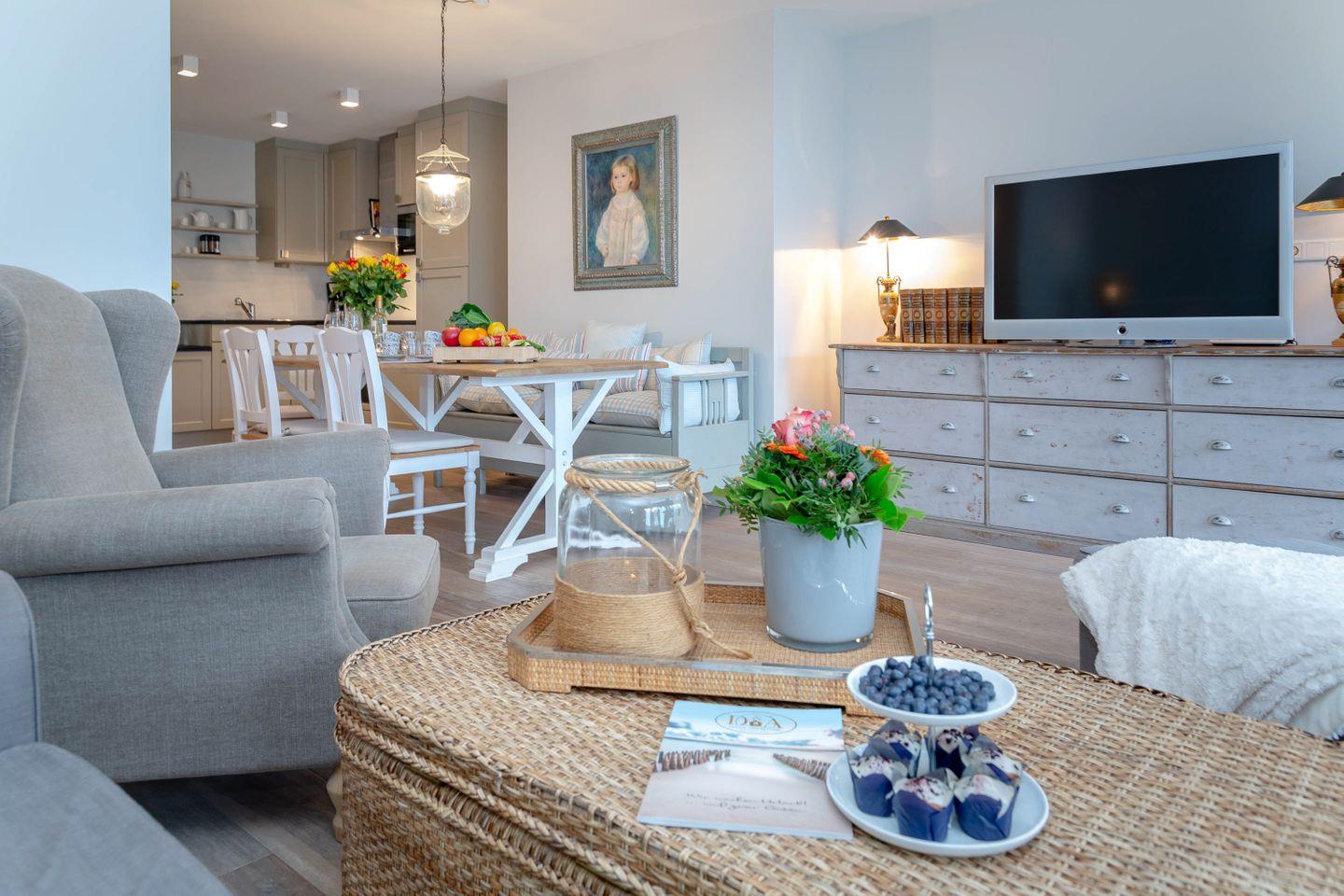 Die Wohnung besticht durch ihre helle, freundliche Atmosphäre und hochwertig-moderne Ausstattung. Im gemütlichen Wohnbereich mit komfortabler Sofaecke und großzügigem Essplatz verbringen Sie entspannte Stunden. WLAN und ein TV sorgen für Unterhaltung und Komfort.