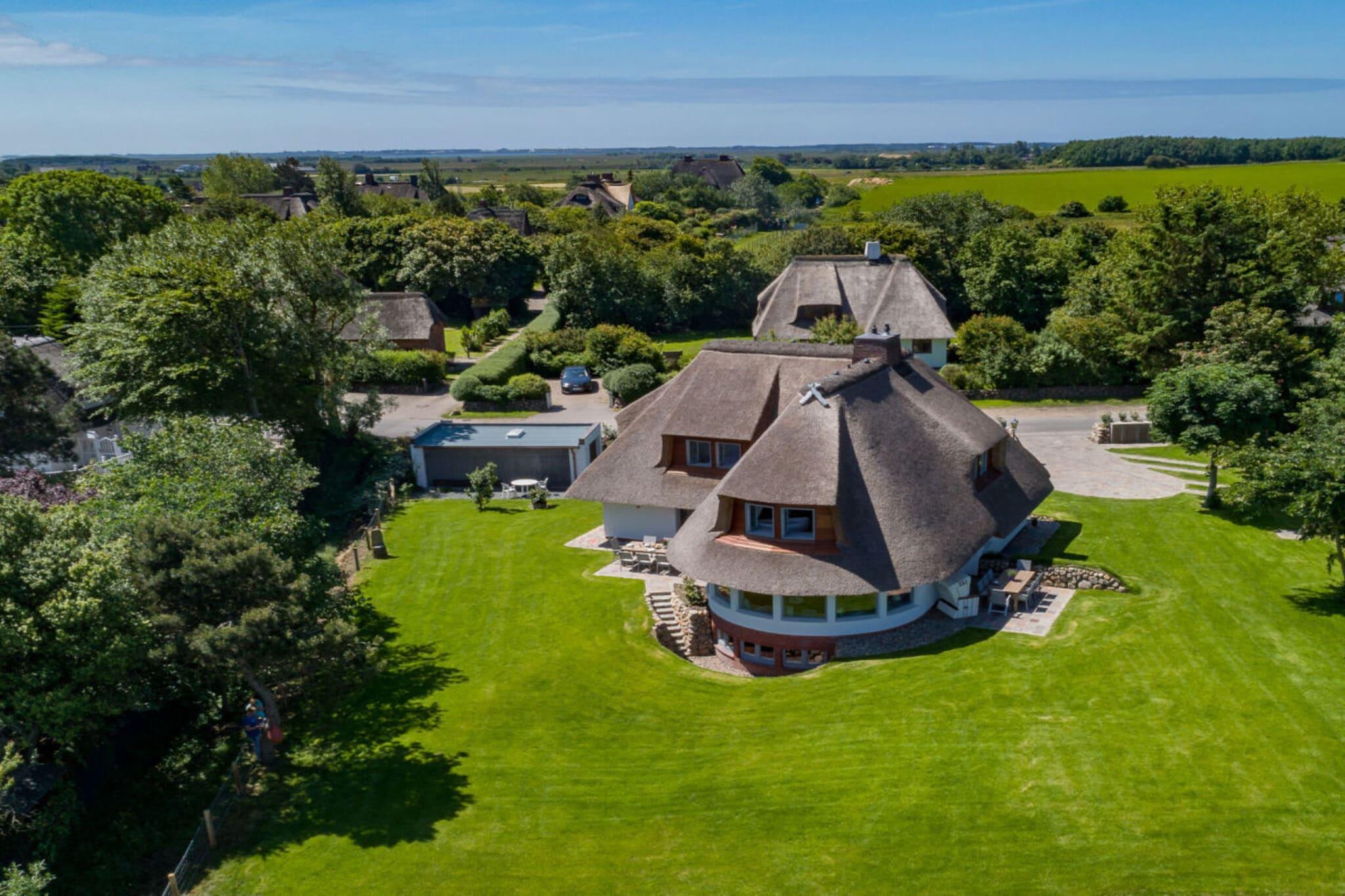 Urlaub in einem exklusiv eingerichteten, freistehenden Reetdachhaus in Keitum auf Sylt mit uneingeschränktem Wattblick - das erwartet Sie im Ferienhaus „Pequod“! Im 280 qm² großen Haus befinden sich auf drei Etagen insgesamt fünf Schlafzimmer, fünf Badezimmer, ein Wellnessbereich im Souterrain sowie ein großzügiges Wohnzimmer mit offener Küche und uneingeschränkten Wattblick. Die zwei vom Wohnzimmer zu erreichenden Außenterrassen laden zum Verweilen unter freien Himmel ein. Im Erdgeschoss werden Sie von einem hellen Flur empfangen, von dem das Wohnzimmer sowie zwei Schlafzimmer mit direkt angrenzenden Badezimmer zu erreichen sind. Im ersten Obergeschoss ist eine weitere Schlafmöglichkeit für zwei Personen, ein vollausgestattetes Badezimmer und das Masterschlafzimmer zu finden. Letzteres weist neben einem hochwertig ausgestatteten Bad en suite und einem King-Size-Bett eine freistehende Badewanne vor, von der aus ebenfalls der traumhafte Blick über das Meer zu genießen ist. Im Souterrain erwartet Sie ein Wellnessbereich, bestehend aus einer Sauna und einem Schlafbereich für zwei Personen.