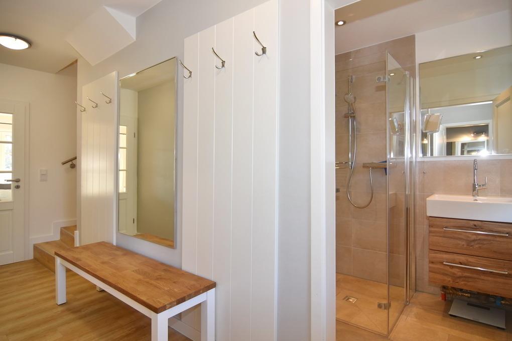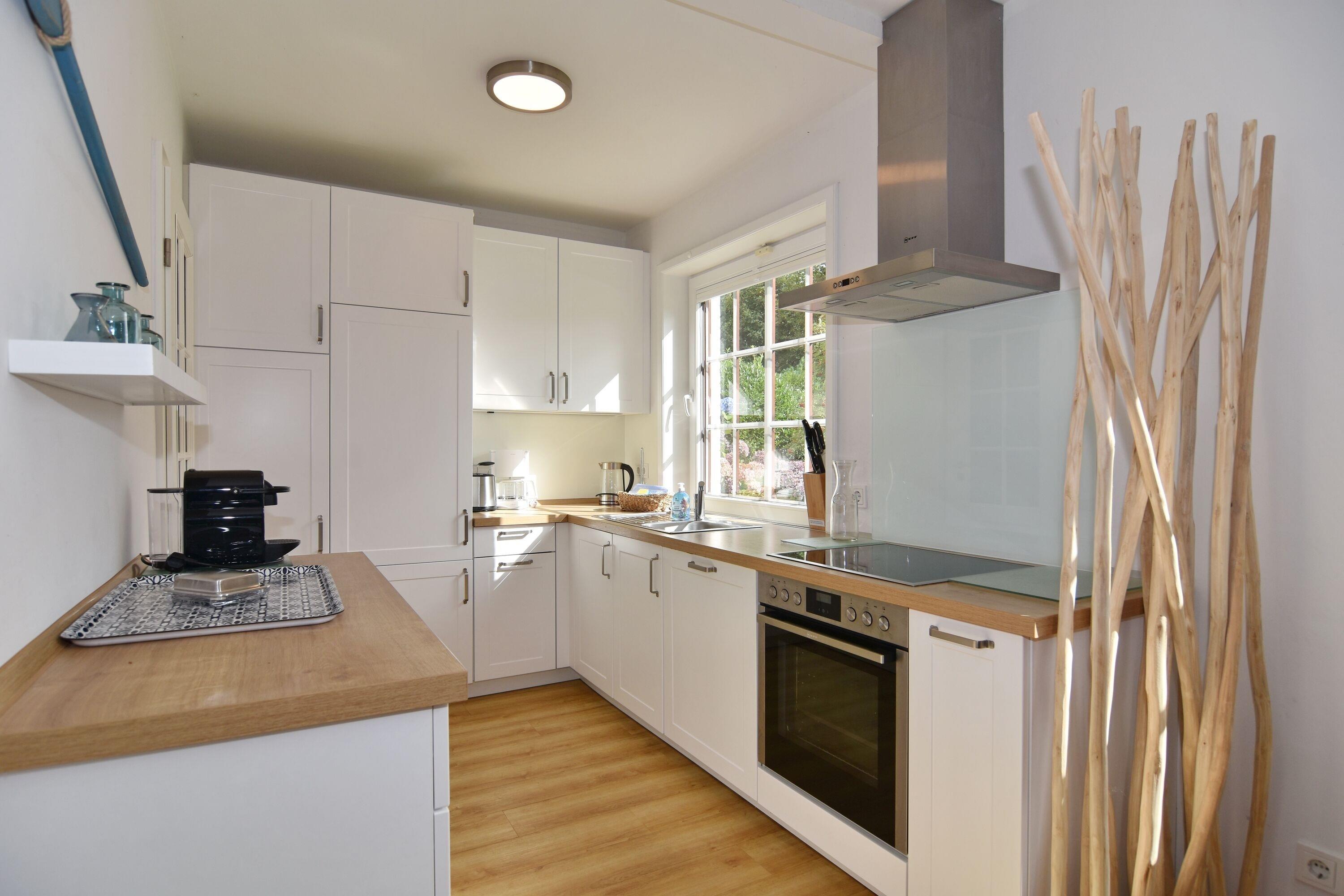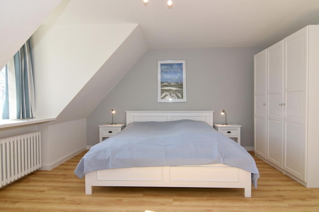 Ferienhaus (Endhausteil) unter Reet für max. 4 Personen. Ca. 100 qm. Nichtraucherobjekt! EG: Sonniges Wohnzimmer mit Essplatz und Sitzgruppe, Kabel-TV, DVD, Radio, Südterrasse mit Strandkorb, großer Garten, offene Küche mit Backofen und Geschirrspüler, Duschbad und Gäste-WC. OG: 1 großes Schlafzimmer mit Doppelbett, Kleiderschrank und Sitzgruppe, 1 Schlafzimmer mit 2 Einzelbetten und Einbauschrank. Beide Schlafräume sind mit Designboden ausgelegt. Duschbad/WC. Das Dachgeschoss wird nicht vermietet. Waschmaschine und Trockner, PKW-Stellplatz. Bettwäsche und Handtücher sind zur Anreise aufgezogen. Im EG ist Tierhaltung gestattet (nur Hunde, keine Katzen), bitte anmelden ( keine Kampfhunde). Grillen im Garten ist nicht statthaft! WLAN (ohne Gewähr). Mindestmietdauer 6 Übernachtungen!