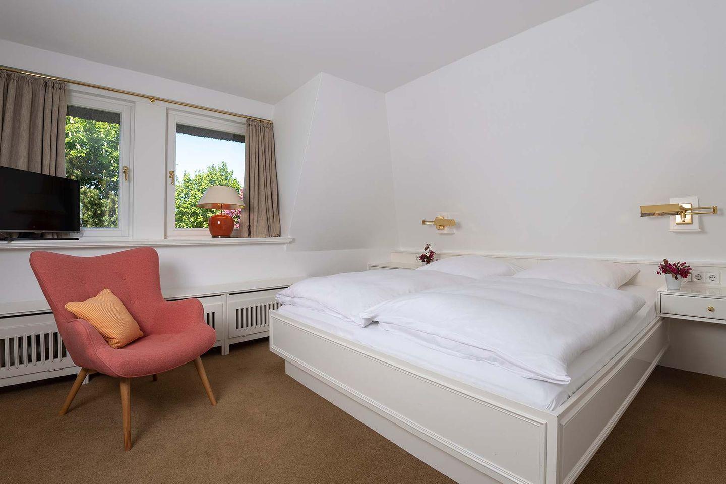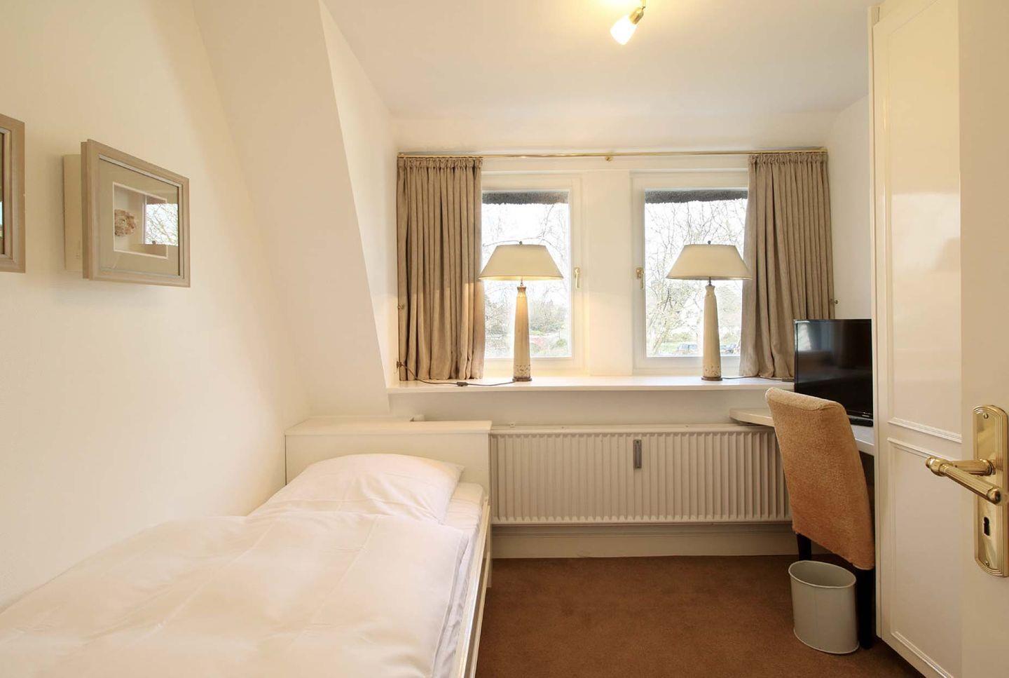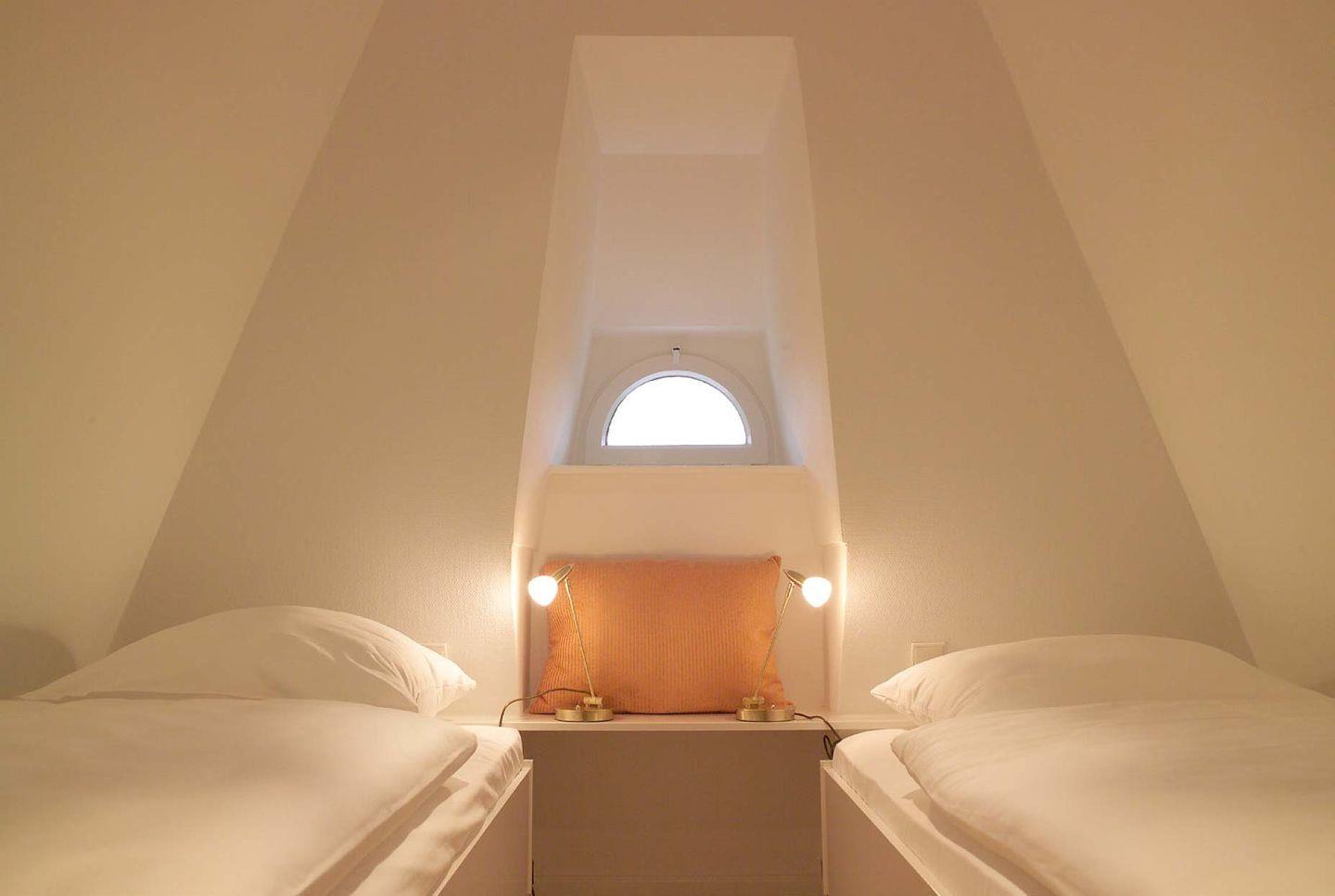 Spitzgiebel: Schlafzimmer mit 2 getrennt stehenden Einzelbetten und TV