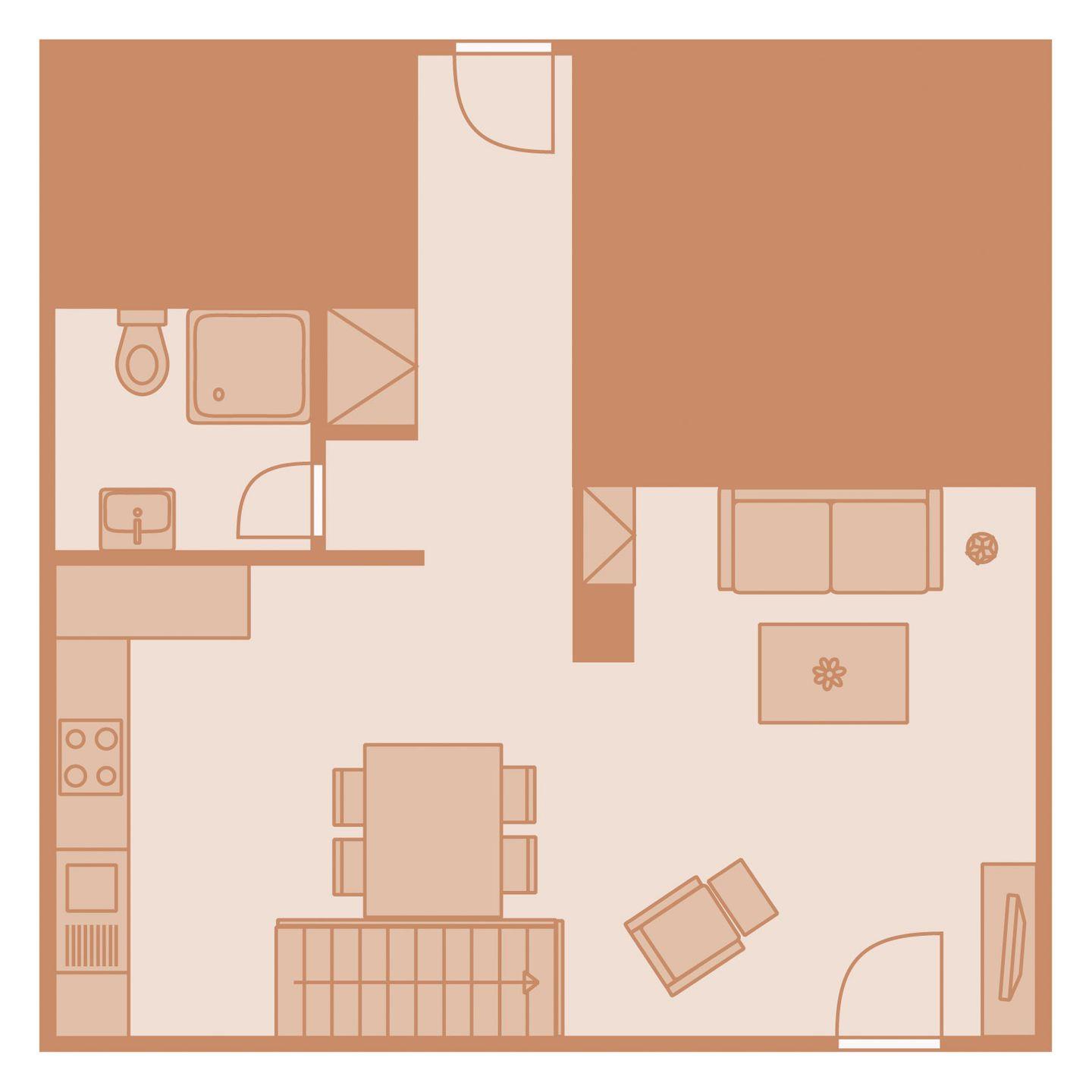 Das Ferien Domizil im Erich-Johannsen-Wai 7 (ca. 74 m²) geht über zwei Etagen mit folgender Aufteilung: