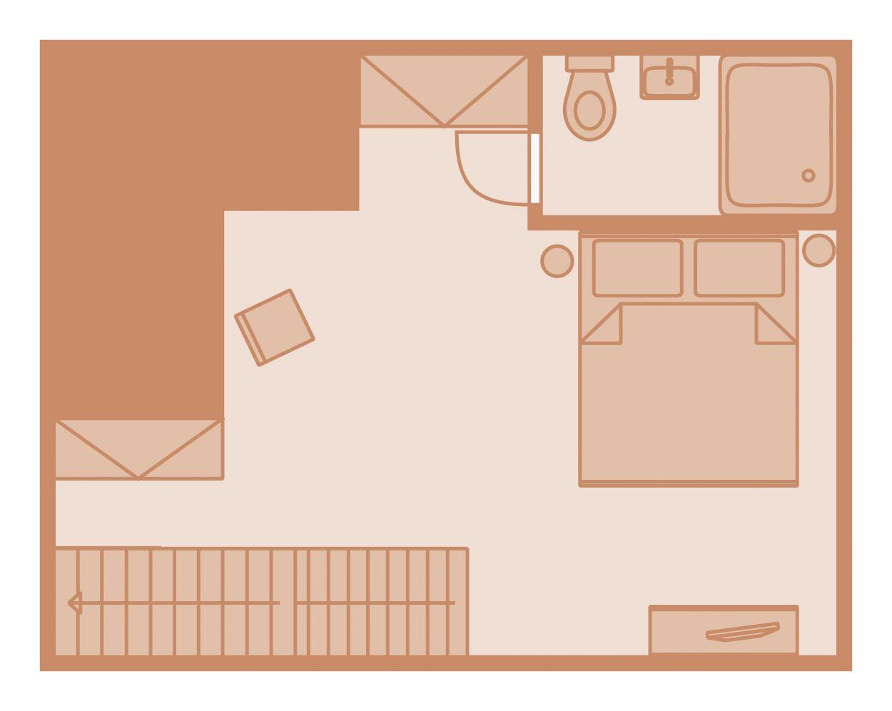 Souterrain: 1 Doppelzimmer, Bad mit Dusche und WC