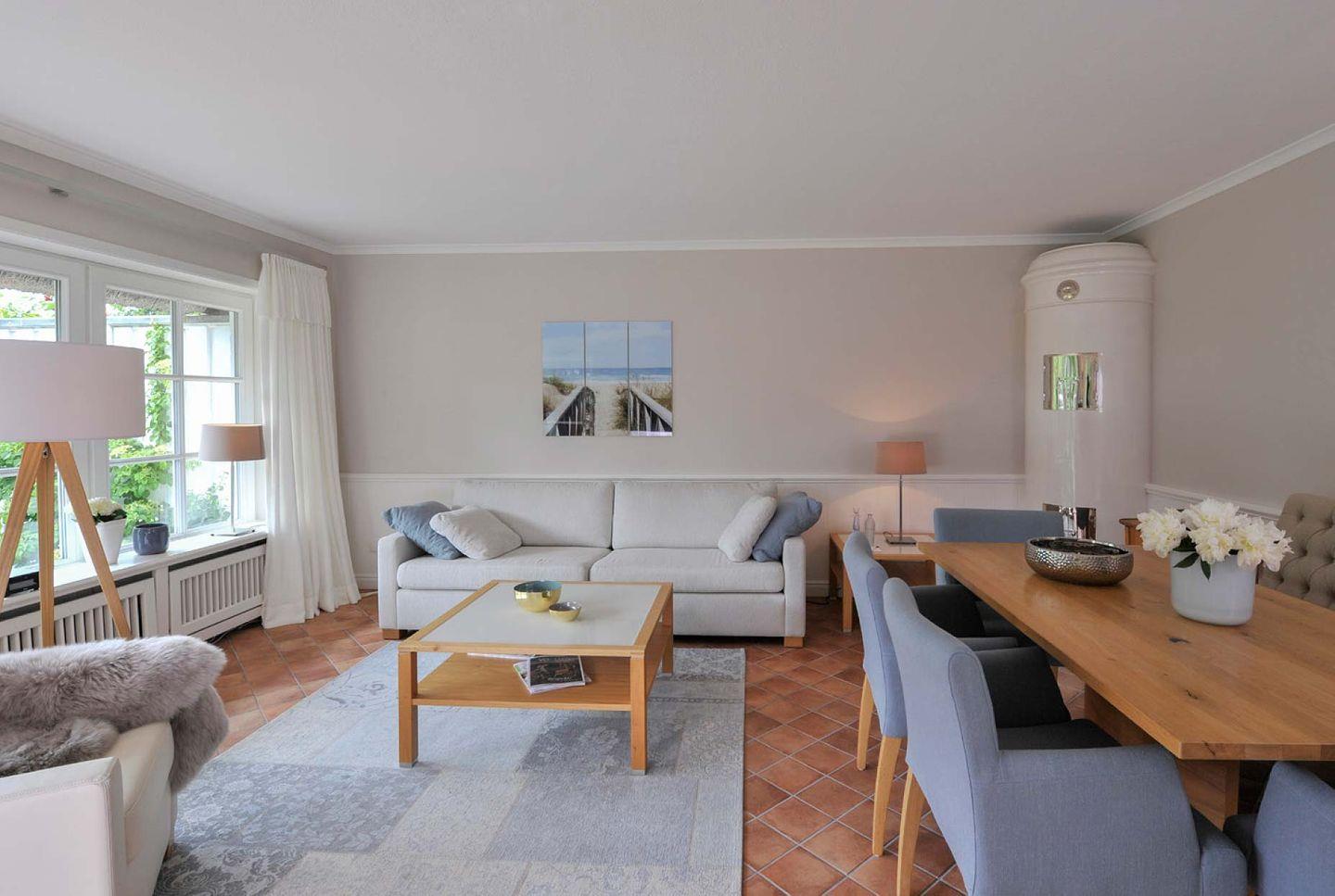 Das exklusive 5-Sterne Ferien Domizil im Lörkiwai 17 garantiert der ganzen Familie mit Hund oder Freunden einen entspannten und erholsamen Urlaub. Stilvoll luxuriös und mit Charme eingerichtete Räumlichkeiten bieten bis zu vier Personen auf 110 m² Wohnraum das perfekte Ambiente, das Leben zu genießen und den Alltag zu vergessen. Für freie Sicht, Tageslicht und Sonnenwärme sorgt eine große Fensterfront. An kalten Tagen verschafft der typisch friesische Kachelofen dem Wohn- und Essbereich eine Wohlfühlwärme und gemütliche Atmosphäre. Die mit Liebe zum Detail eingerichteten Räume sind mit kunstvollen maritimen Accessoires in den natürlichen Farben des Meeres gestaltet bis hin zu zauberhaften Elementen, welche dem Ferien Domizil ein einzigartiges Flair verleihen. Zwei Terrassen bilden den Übergang zwischen dem Wohnbereich und dem großzügig eingewachsenen Garten. Der 950 m² große Garten mit Sonnenliegen und Sylter Strandkorb lädt zum Verweilen und Genießen ein. Auf dem eingezäunten Gelände sind Hunde herzlich willkommen. Sie können sich vollkommen frei, ohne Leine bewegen und die Gegend erkunden. Das luxuriöse Feriendomizil befindet sich in unmittelbarer Nähe zum Benen-Diken-Hof und ist aufgrund seiner Lage ein idealer Ausgangspunkt, um das Kapitänsdorf Keitum und den Rest der Insel zu erkunden.