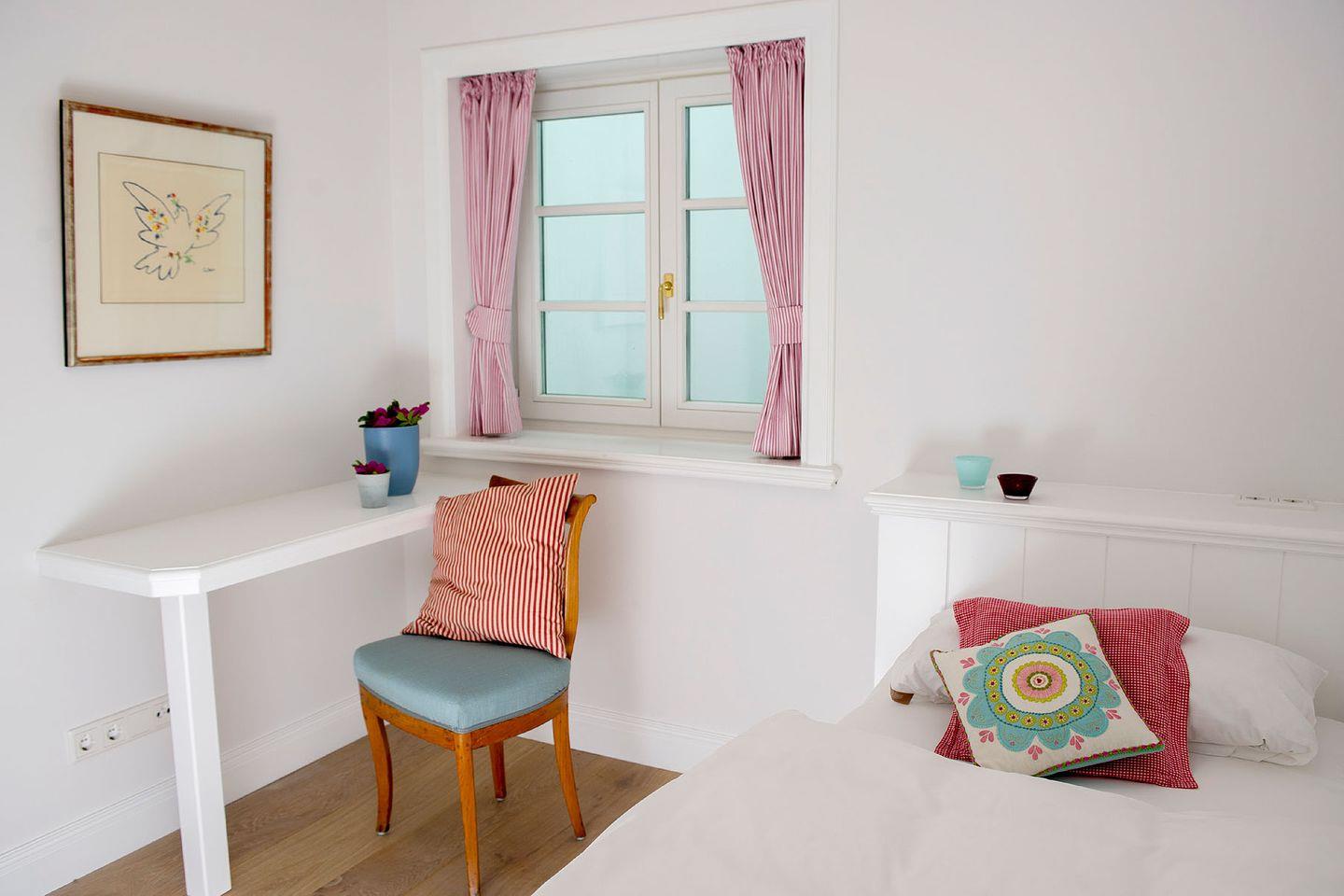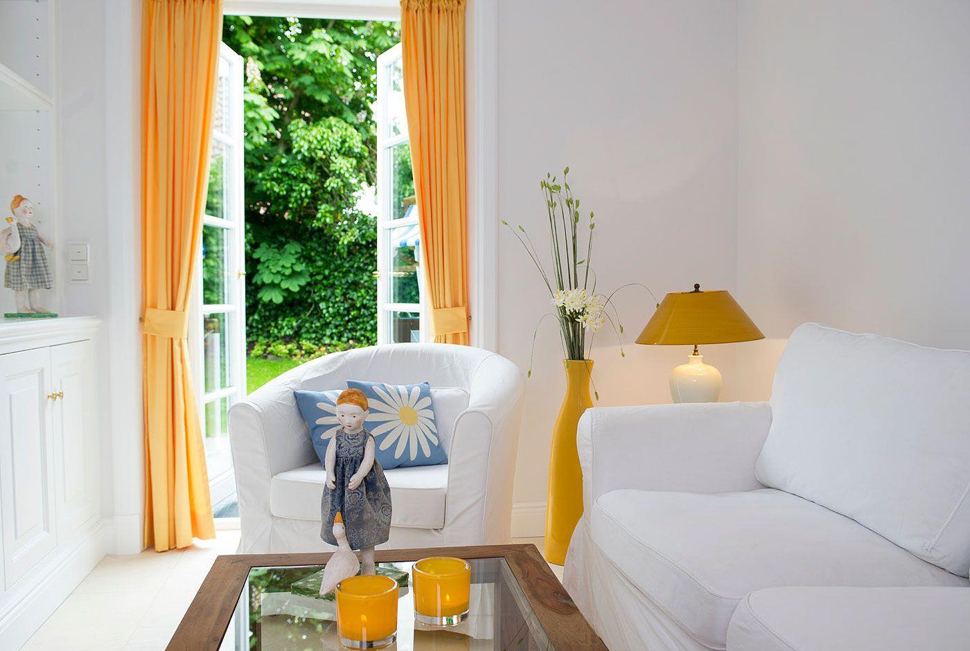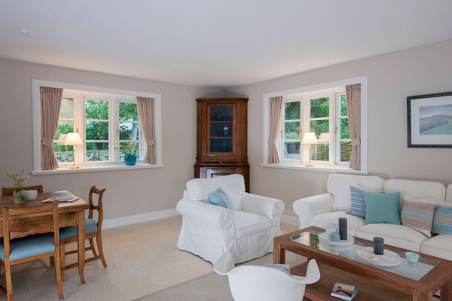 Das 150 m² große LORNSEN HÜS bietet ausreichend Platz für maximal acht Personen. Dreh- und Angelpunkt des exklusiven Hauses ist der großzügige Wohnraum mit integriertem Essplatz. Von dort aus gelangt man in die gut ausgestattete Küche, wo sich eine zweite Essgruppe mit schöner Eckbank befindet. Wer sich gerne mal zurückzieht, wird den Lieblingsraum des Eigentümers zu schätzen wissen – ein kleiner, gemütlicher, in Gelb gehüllter Raum mit Fernseh- oder Lesemöglichkeit und direktem Zugang zum Garten. In den drei schönen Schlafräumen im Obergeschoss findet man schnell zur Ruhe, und in den angrenzenden, modernen Bädern kann Badekultur wunderbar gelebt werden. Besonderes Highlight ist die im Bad integrierte Sauna im Souterrain des Hauses. Die Einrichtung folgt dem Prinzip von Alt trifft Neu. So werden Möbel aus der Biedermeierzeit in der Küche, im Wohnzimmer und im Schlafraum zu Statements neben frischen, modernen Möbeln wie z.B. dem Eames Plastic Armchair RAR im Wohnraum.