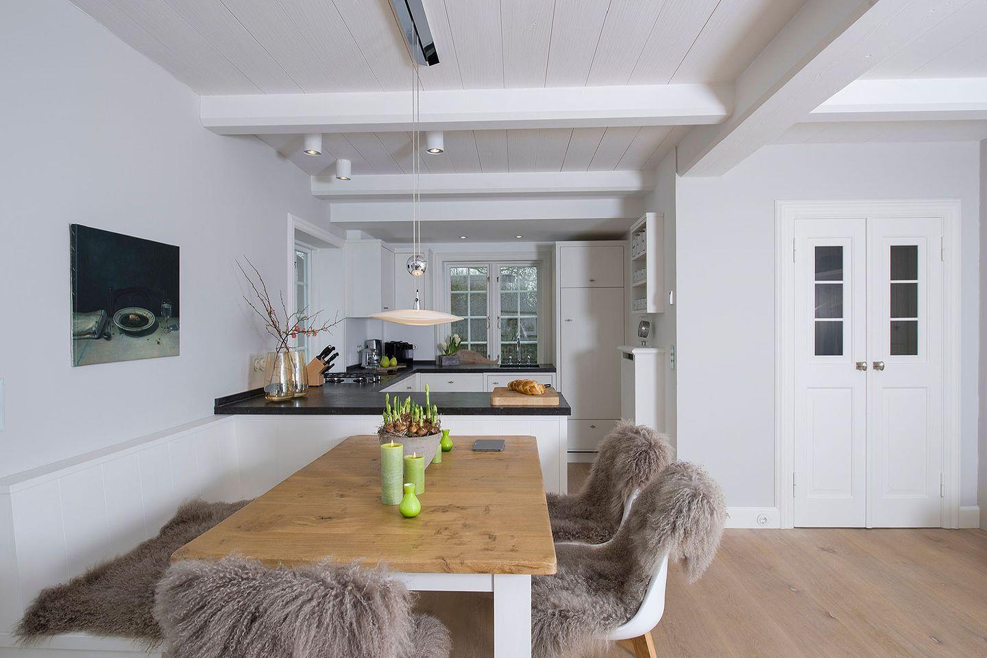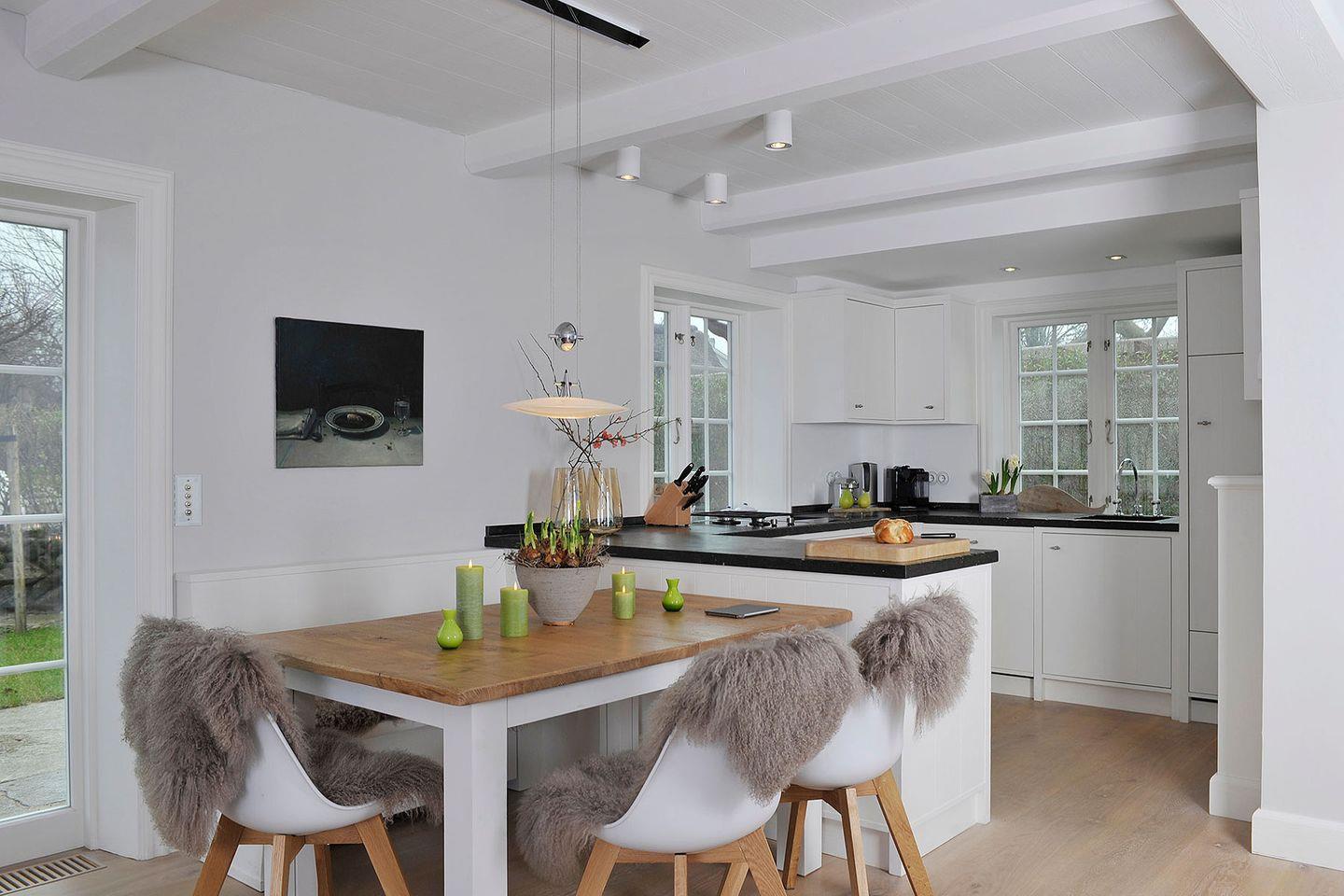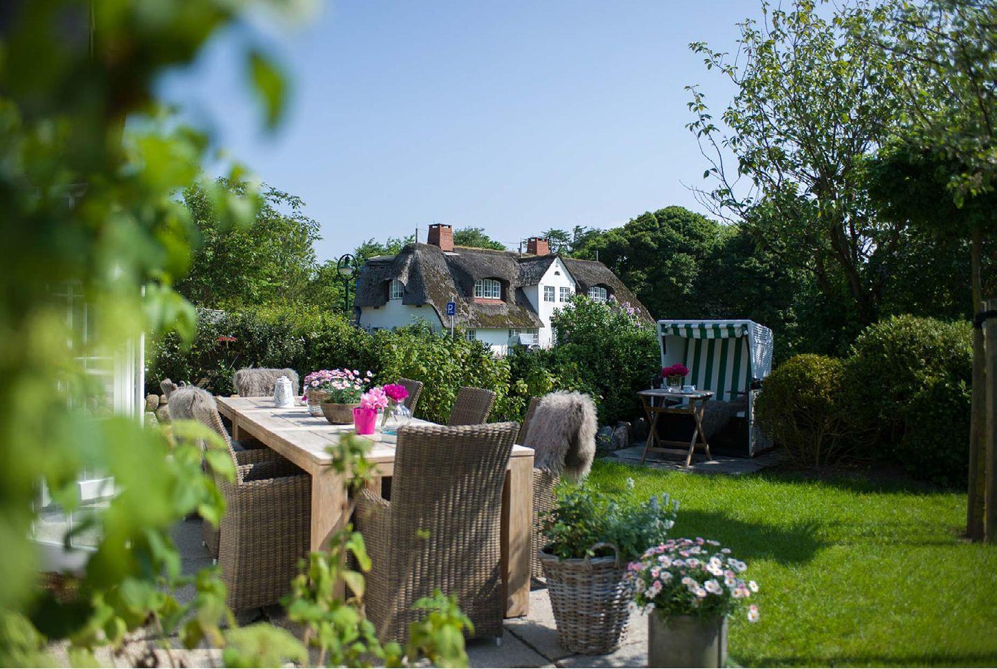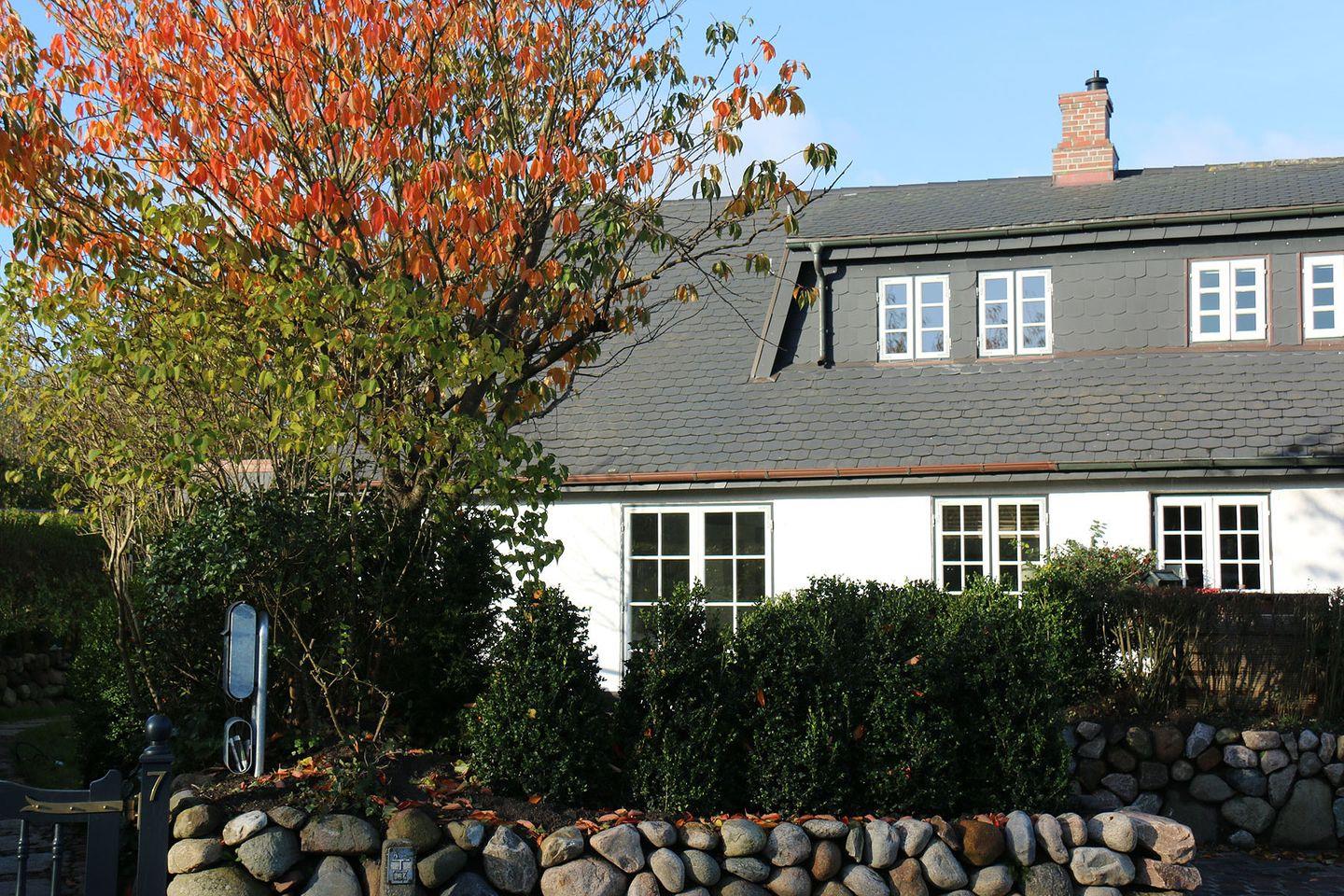 Das exklusive 5-Sterne Ferien Domizil an der Munkmarscher Chaussee 7 in Keitum bietet für maximal sieben Personen ausreichend Platz, um hier gemeinsam auf drei Ebenen und 106 m² entspannte Urlaubstage zu verbringen. Eine Terrasse erweitert den großzügigen Wohn- und Essbereich zu den beiden Sonnenplätzen im Garten. Stilsicher und mit viel Liebe zum Detail wurde dieses Domizil neu konzipiert und für die Ansprüche seiner Gäste durchdacht eingerichtet. Das helle Wohnzimmer mit modernem Esstisch, kuscheliger Sofalandschaft und offener, voll ausgestatteter Küche ist prägend für das sympathische Wohnambiente. Die Großzügigkeit findet sich auch in den zwei Bädern wieder. Die Farben sind Beige und Grau in vielen Abstufungen, kombiniert mit pastelligen Farbtönen. Familien werden sich hier sehr wohl fühlen, denn es bietet großen Raum für Gemeinsamkeit und gleichzeitig viele Möglichkeiten sich zurück zu ziehen. Jeder findet hier seinen Platz. Das Ferien Domizil ist in unmittelbarer Nähe des Wattenmeers gelegen und bietet eine wunderbare Ausgangslage für lange Spaziergänge am Strand. Wenn man den ganzen Tag über vom Wind umfangen ist, gibt es nichts Schöneres als sich abends vor dem Kachelofen aufzuwärmen und zu entspannen – Glücksgefühle garantiert.