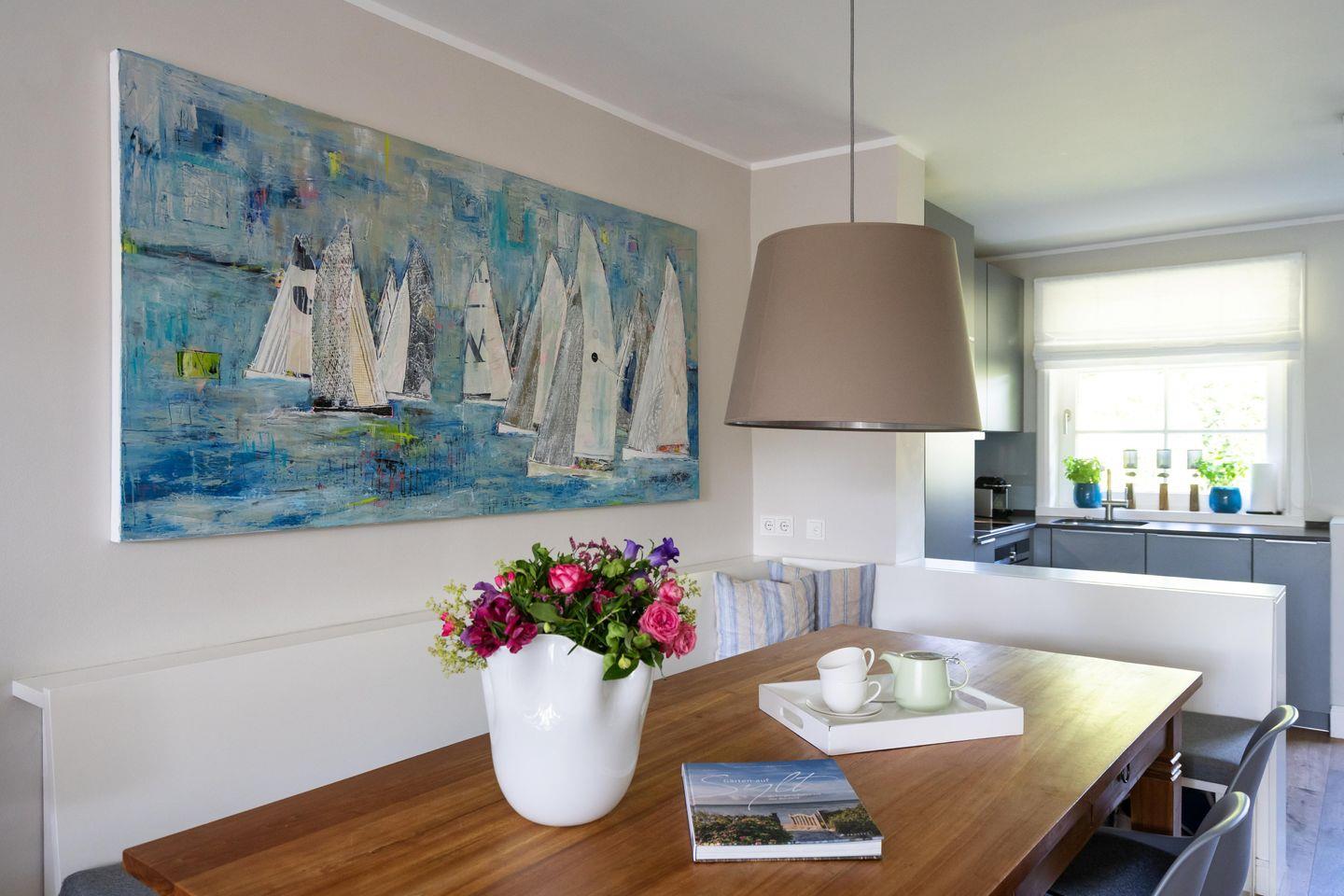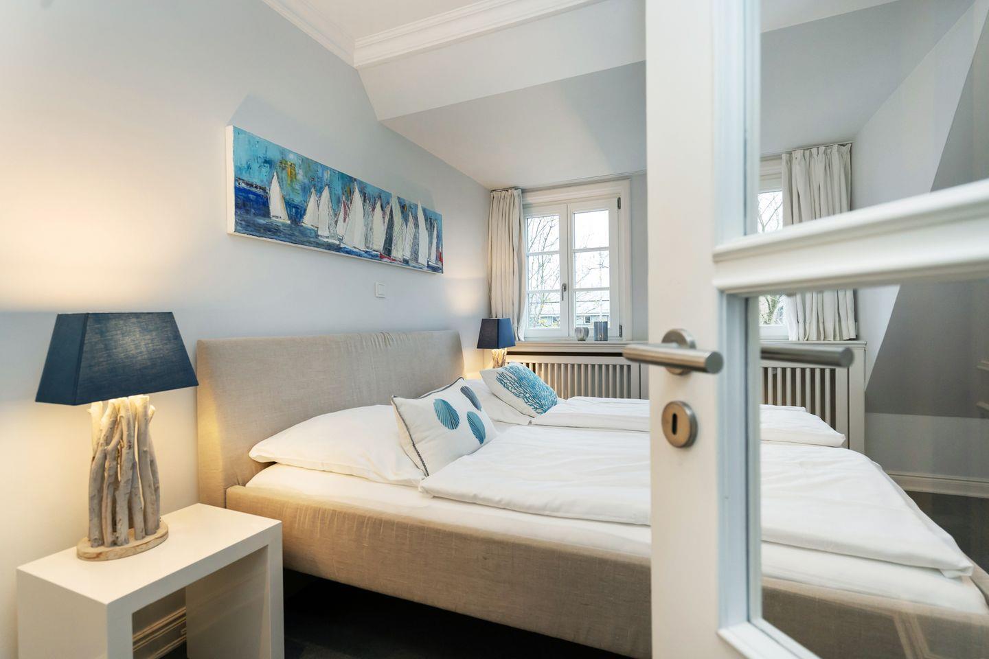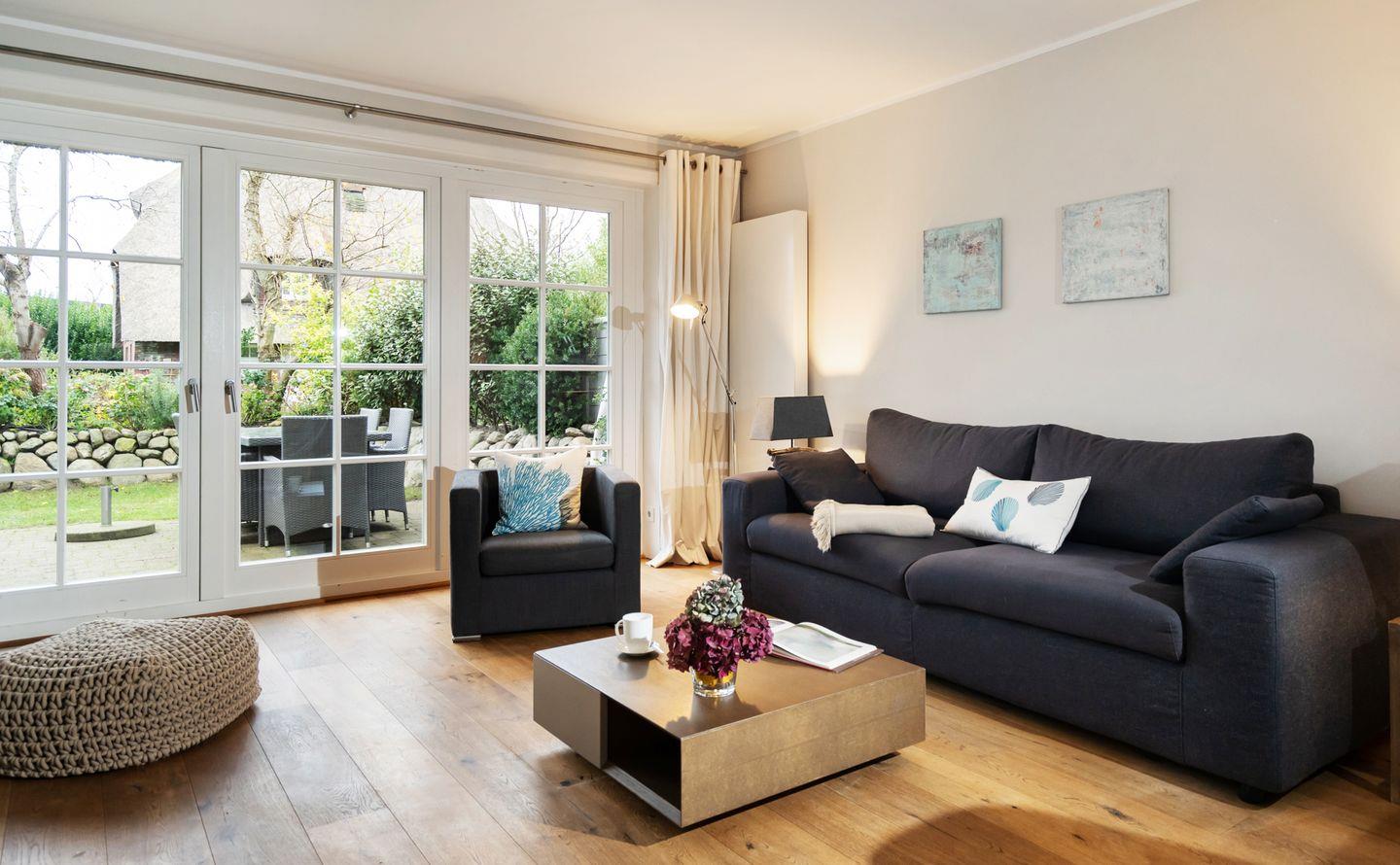 Das exklusive 5-Sterne Ferien Domizil an der Süderstraße 46 II erstreckt sich über vier Ebenen und bietet auf 120 m² in zeitlos moderner Ausstattung viel Platz für maximal sechs Personen. Das helle und offene Wohnzimmer mit Essplatz und angrenzender Küche vermitteln ein Gefühl anspruchsvollen und zeitgemäßen Wohnens. Ein Lieblingsplatz ist der offene Kamin, welcher friesische Gemütlichkeit ins Wohnzimmer zaubert. Helle Pastelltöne in Türkis, Lila und Blau überwiegen in der Farbgebung der Inneneinrichtung und lassen ein außergewöhnliches Wohnambiente entstehen. Stilvoll und mit viel Liebe zum Detail wurde dieser Hausteil unter Reet konzipiert und ausgestattet. Jeder Raum gleicht einer Entdeckungsreise schöner und ausgesuchter Accessoires, die der Lebensraum charmant und liebenswert erscheinen lässt. Ein zauberhafter Ort, um sich zurück zu ziehen. Im Frühjahr 2017 hat das Domizil mit einer neuen Sauna im Souterrain ein weiteres Highlight erhalten. Es lässt sich an kalten Tagen entspannen und die Ruhe Keitums genießen.