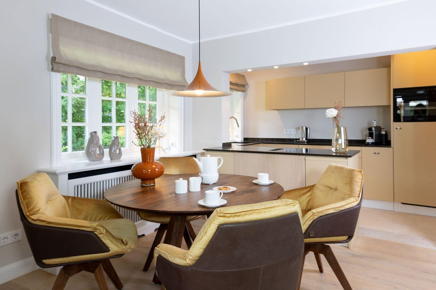 Das luxuriöse 5-Sterne Ferien Domizil im Lu¨vwai 3 in Keitum wurde im Fru¨hjahr 2024 umfassend und hochwertig renoviert und ist seitdem Teil des exklusiven Apartment-Angebotes des BENEN-DIKEN-HOF. Auf zwei Ebenen und einer Fläche von 125 m² bietet es ausreichend Platz fu¨r vier Personen.
