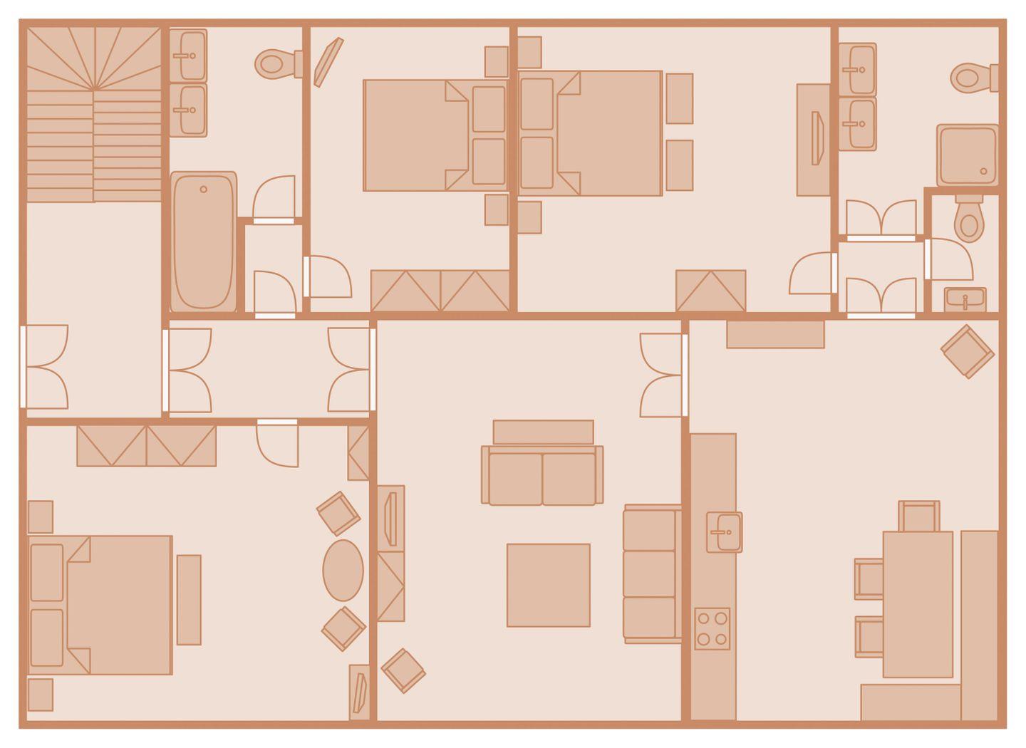 Das Ferien Domizil Zollhaus 1 im Gurtstieg 52 (ca. 111 m²) befindet sich im Erdgeschoss mit folgender Aufteilung: