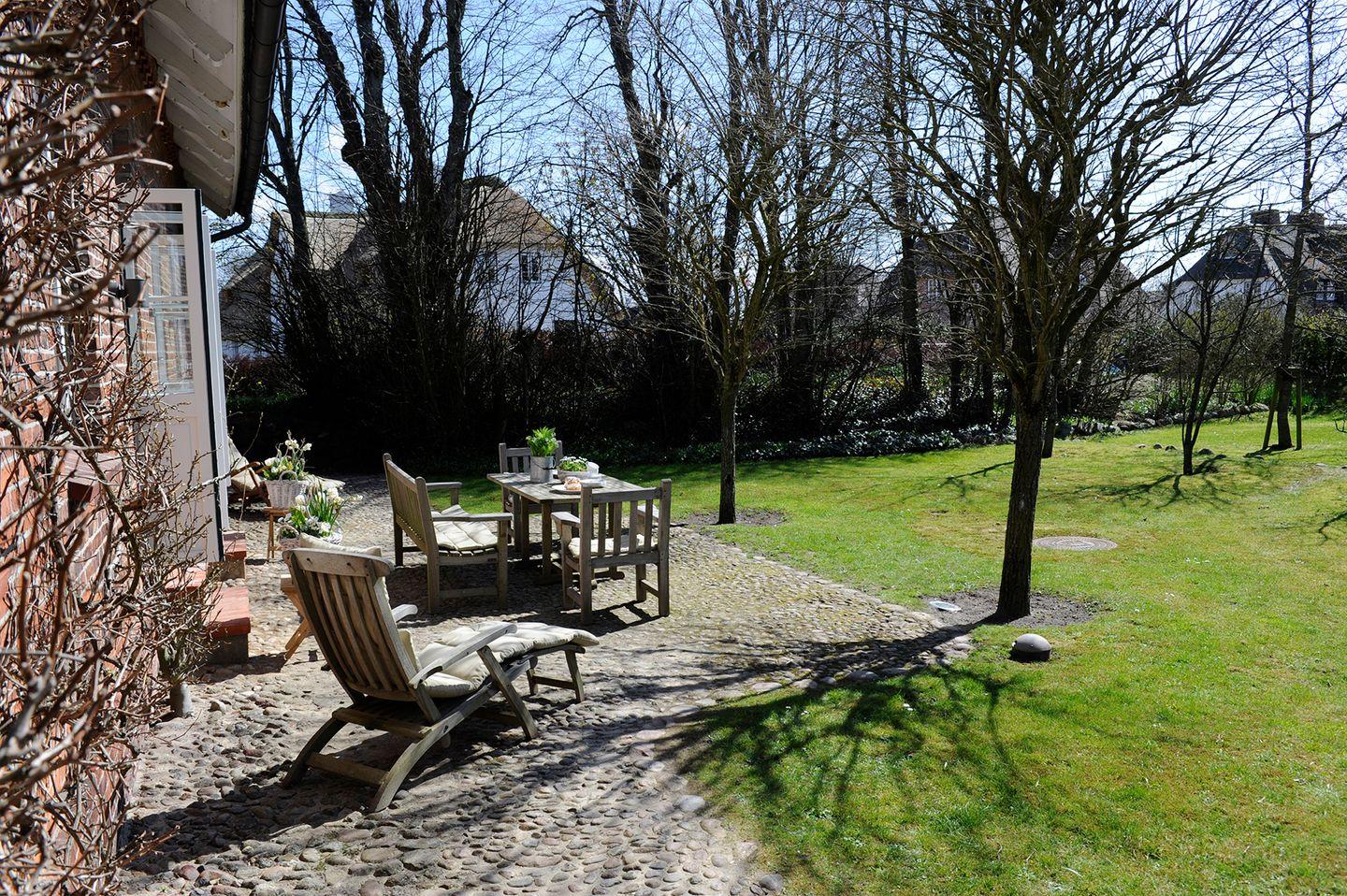 Die große und imposante, im Erdgeschoss gelegene, Wohnung Zollhaus 1 im Gurtstig 52 in Keitum bietet auf 111 m² ausreichend Platz für maximal sechs Personen. Von der Diele gelangt man über einen gemütlichen Wohnraum mit geräumiger Bücherwand und direktem Zugang zum Garten, zur großen Küche. Sie ist das Herzstück des Zollhauses. Zahlreiche Fenster schenken dem Raum ein wohliges Licht. Die integrierte Landhausküche, der ausladende Esstisch mit abgestimmter Eckbank, anspruchsvolle Schwarz-Weiß-Fotografien und die helle Farbgebung erzeugen eine Wohlfühl-Atmosphäre. Insgesamt gibt es drei großzügige und charmante Schlafräume und zwei hochwertig ausgestattete und helle Bäder. Zur Wohnung gehört eine großzügige Terrasse mit Sonnenplätzen am großen Gartentisch oder in einem der Teakholzsitzmöbel, eine komplette Küchenausstattung, TV, WLAN, Musikanlage und iPod Dockingstation sowie PKW-Stellplatz auf dem Grundstück. Damals noch unter dänischer Hoheit wurde das Königliche Zollhaus sowie ein kleines Stallgebäude mitten in Keitum errichtet. Bis 1902 diente das Haus als Zollamt, welches dann nach Westerland verlegt wurde. Mitte der 90er Jahre sind beide Gebäude in Zusammenarbeit mit Fachleuten der Denkmalpflege liebevoll restauriert worden. In 2012 folgte erneut eine vollständige Renovierung, der eigentliche Luxus des Hauses besteht darin, inmitten Keitums in historischer Kulisse auf großem und modernem Raum wohnen und leben zu können.