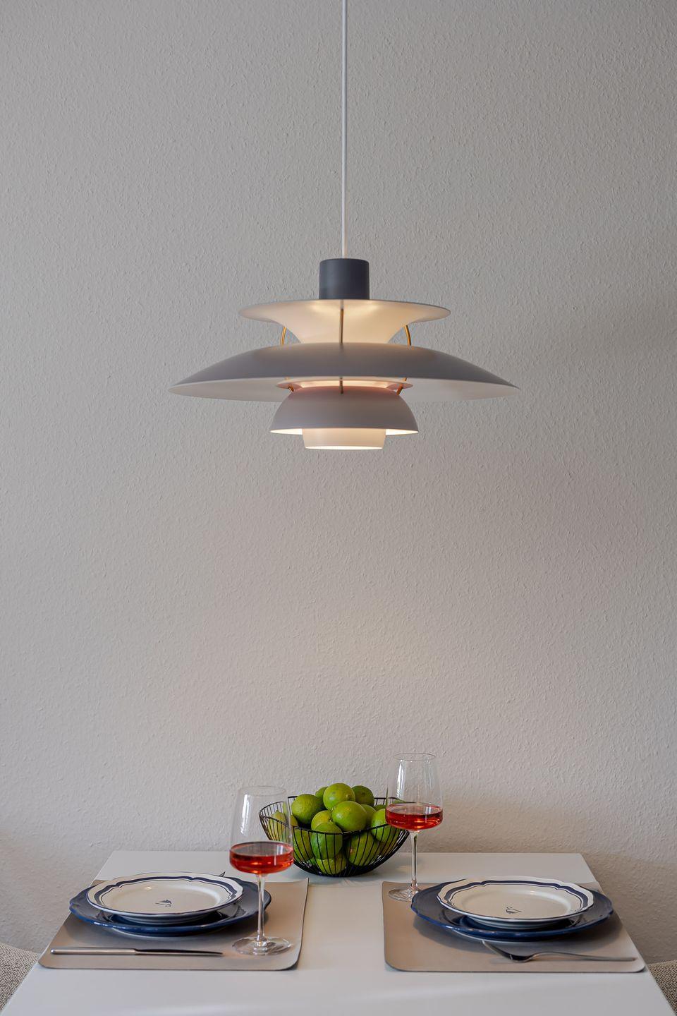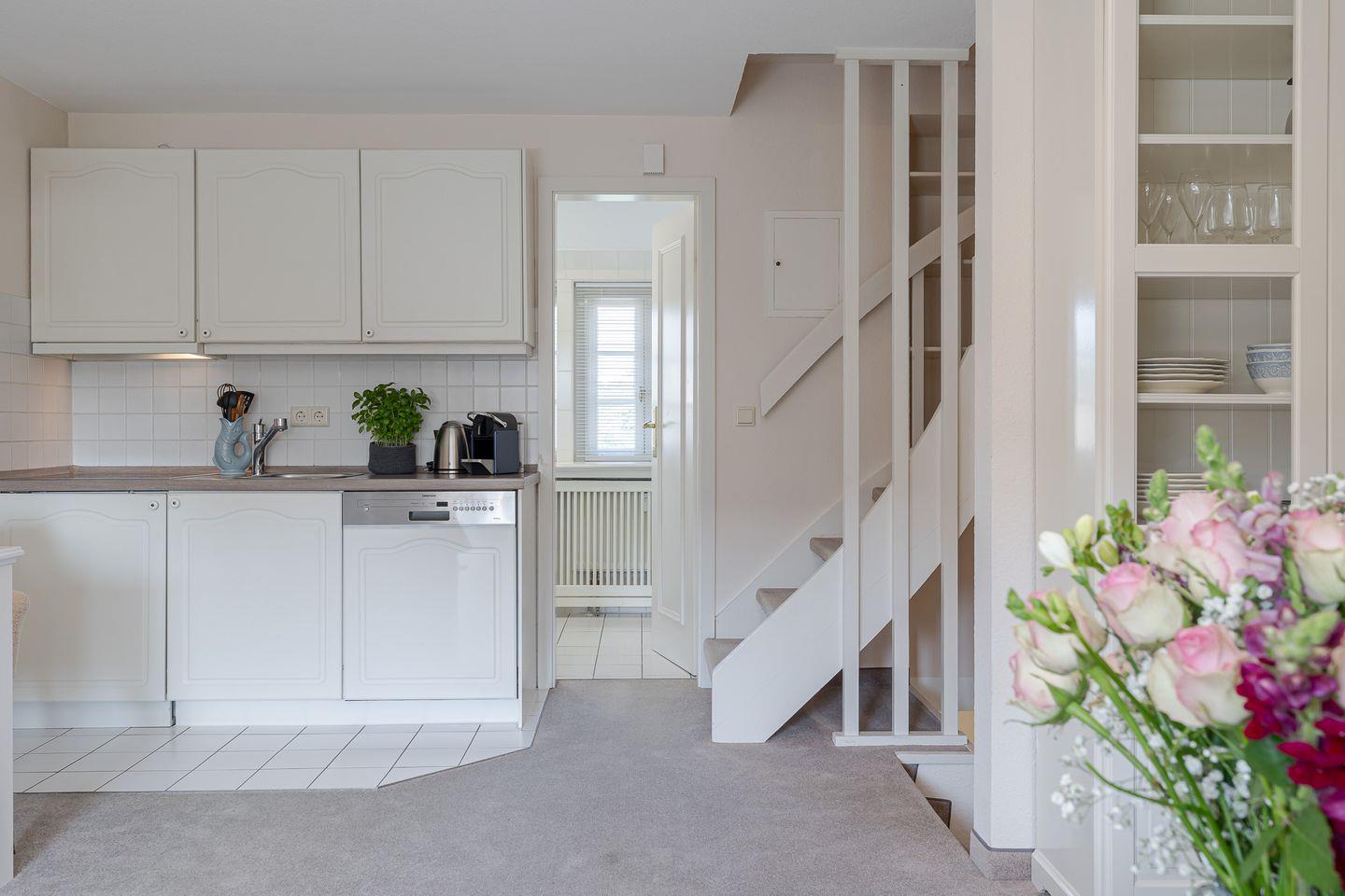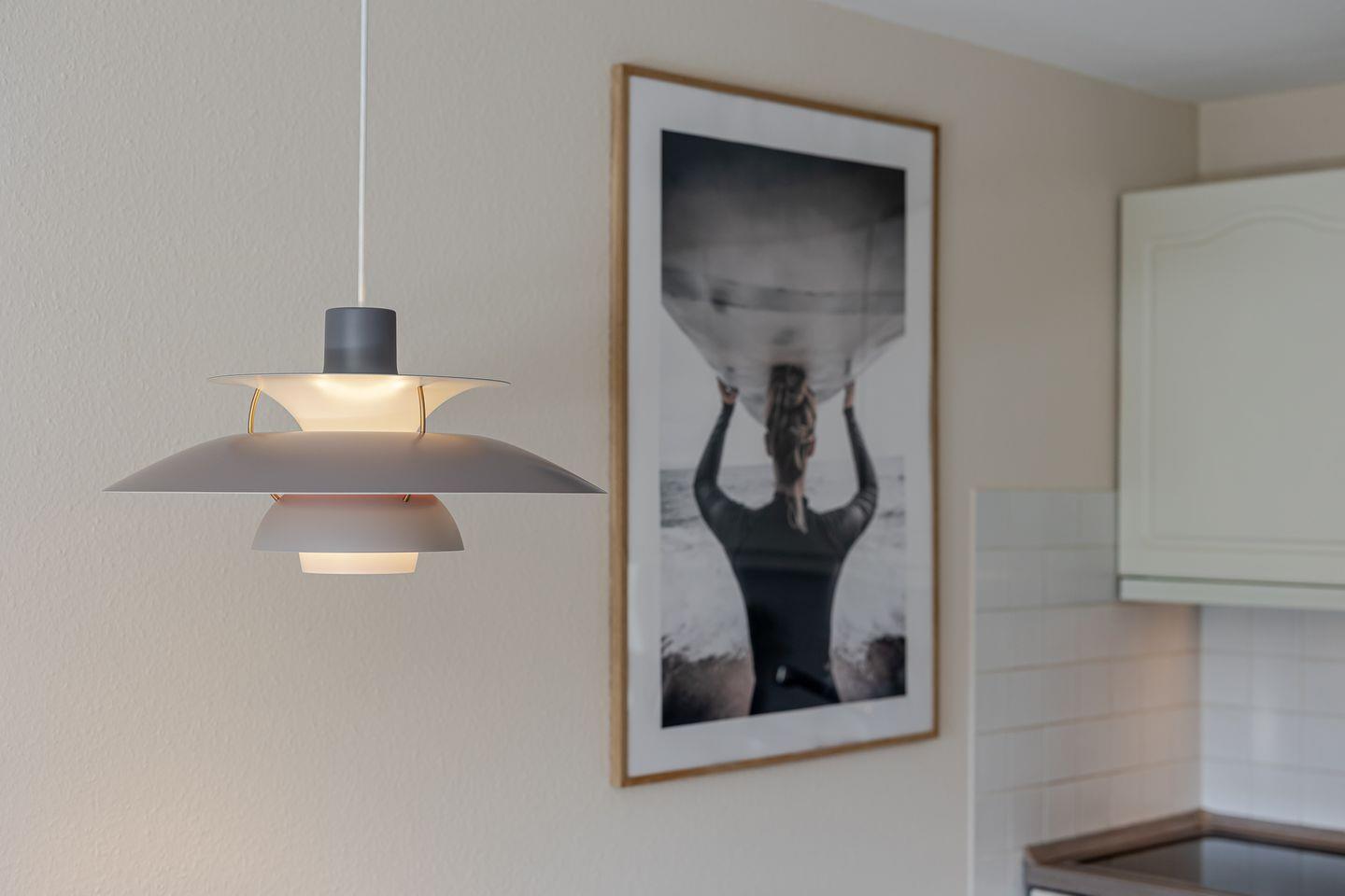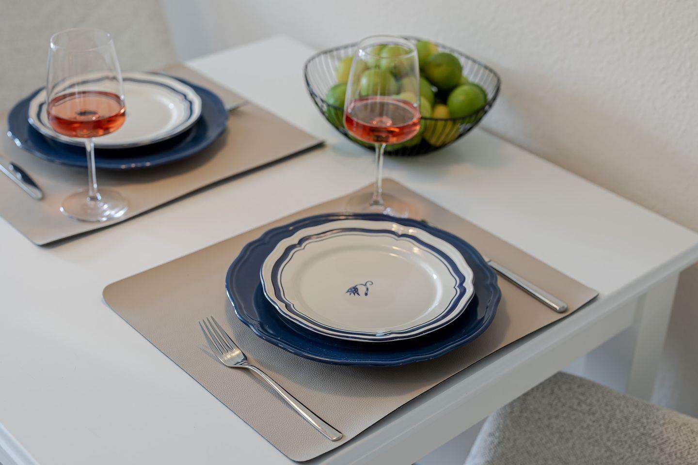 Die offene Küche mit Essbereich fügt sich harmonisch in den Raum ein und ist bestens für kleine Mahlzeiten ausgestattet – auch ohne Backofen oder Mikrowelle finden Sie hier alles, um sich zwischendurch etwas Leckeres zu zaubern.