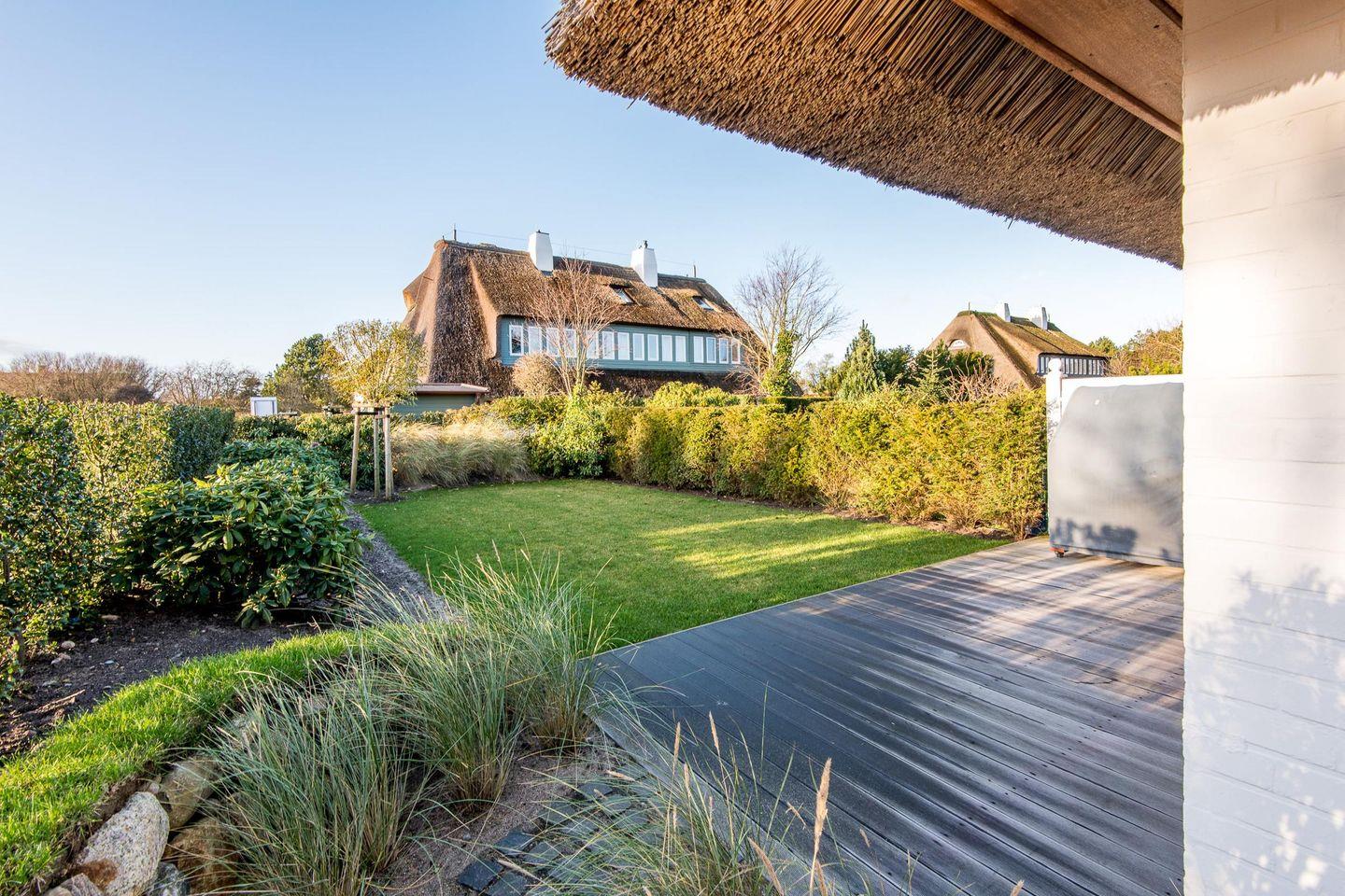 Das stilvolle Reetdach-Endhausteil 'Min Lek' erstreckt sich über ca. 140 m² auf drei Ebenen und bietet bis zu 6 Personen einen luxuriösen Rückzugsort auf der Insel Sylt. Umgeben von einem liebevoll angelegten Südgarten mit Terrasse und Strandkorb, genießen Sie in diesem exklusiven Friesenhaus in Keitum Ruhe, Komfort und nordfriesische Gemütlichkeit.