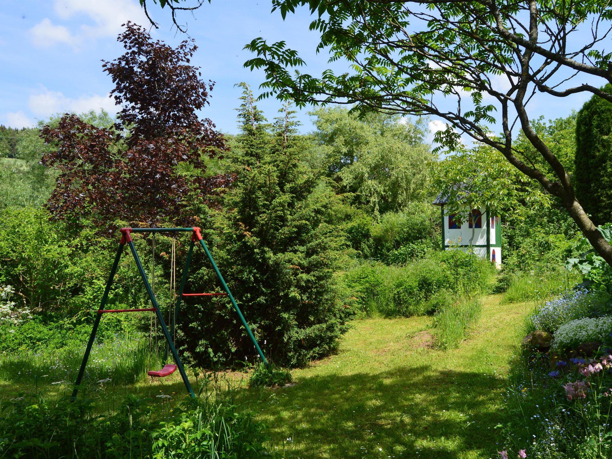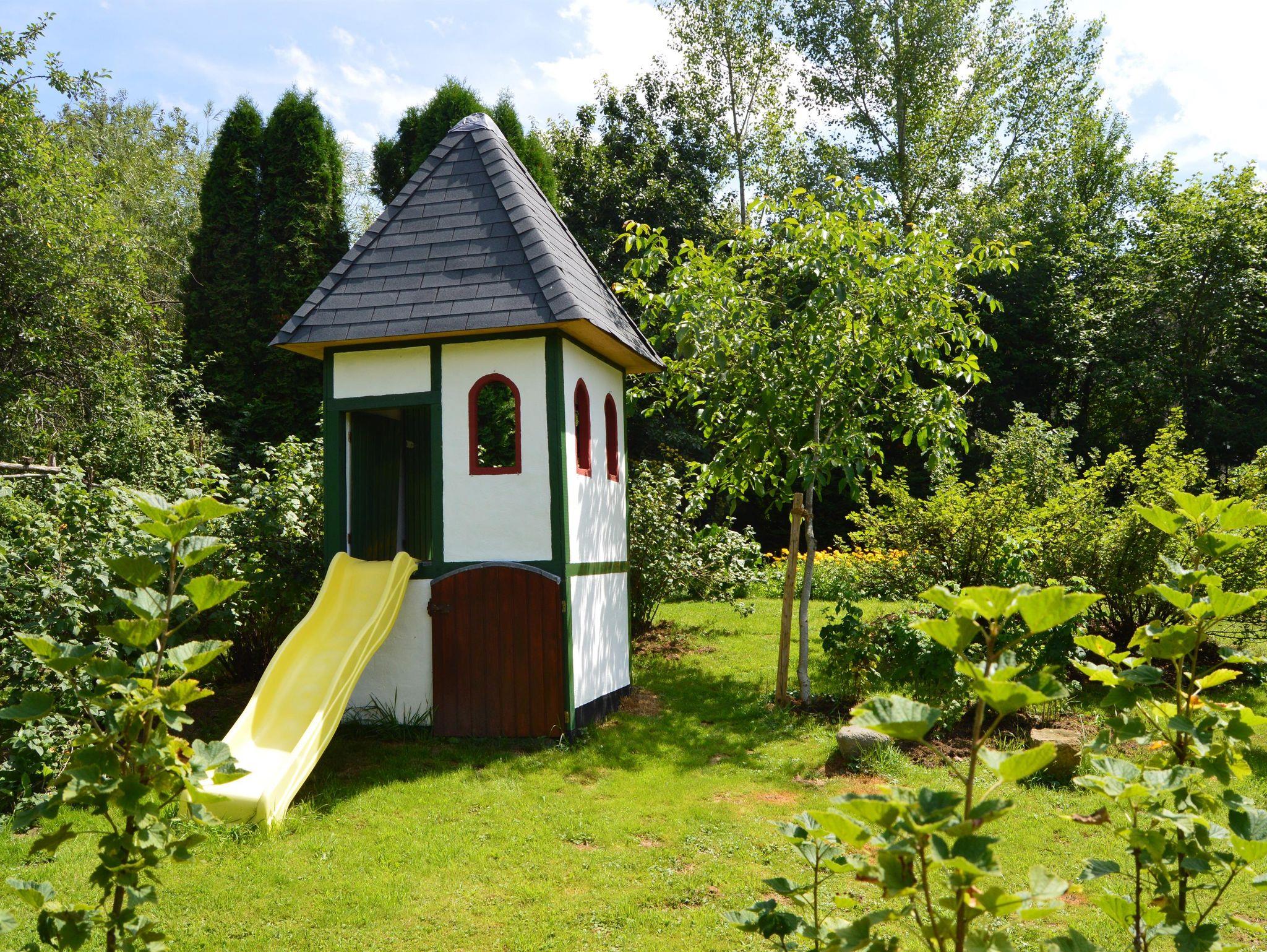 • Hauseigener Spielplatz mit Schaukel, Spielhaus, Rutsche, Trampolin