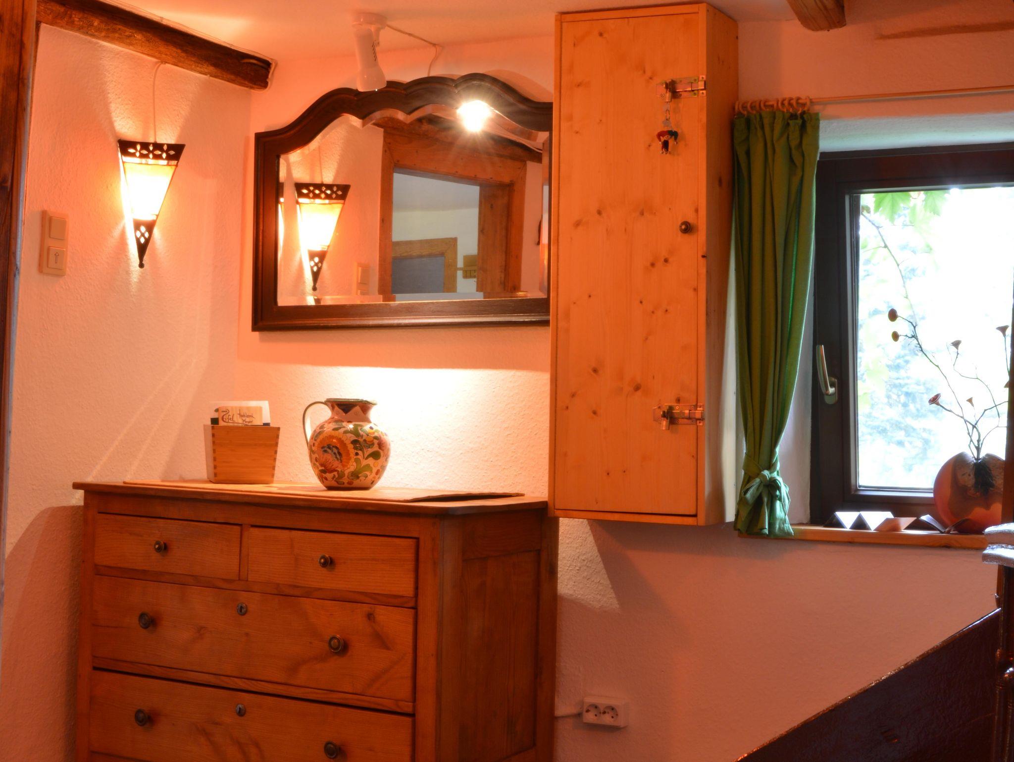 • Erdgeschoss: Wohnküche mit Kachelofen, Wohnzimmer, Backesraum, Bad mit WC, Flur mit Garderobe und Schuhregal