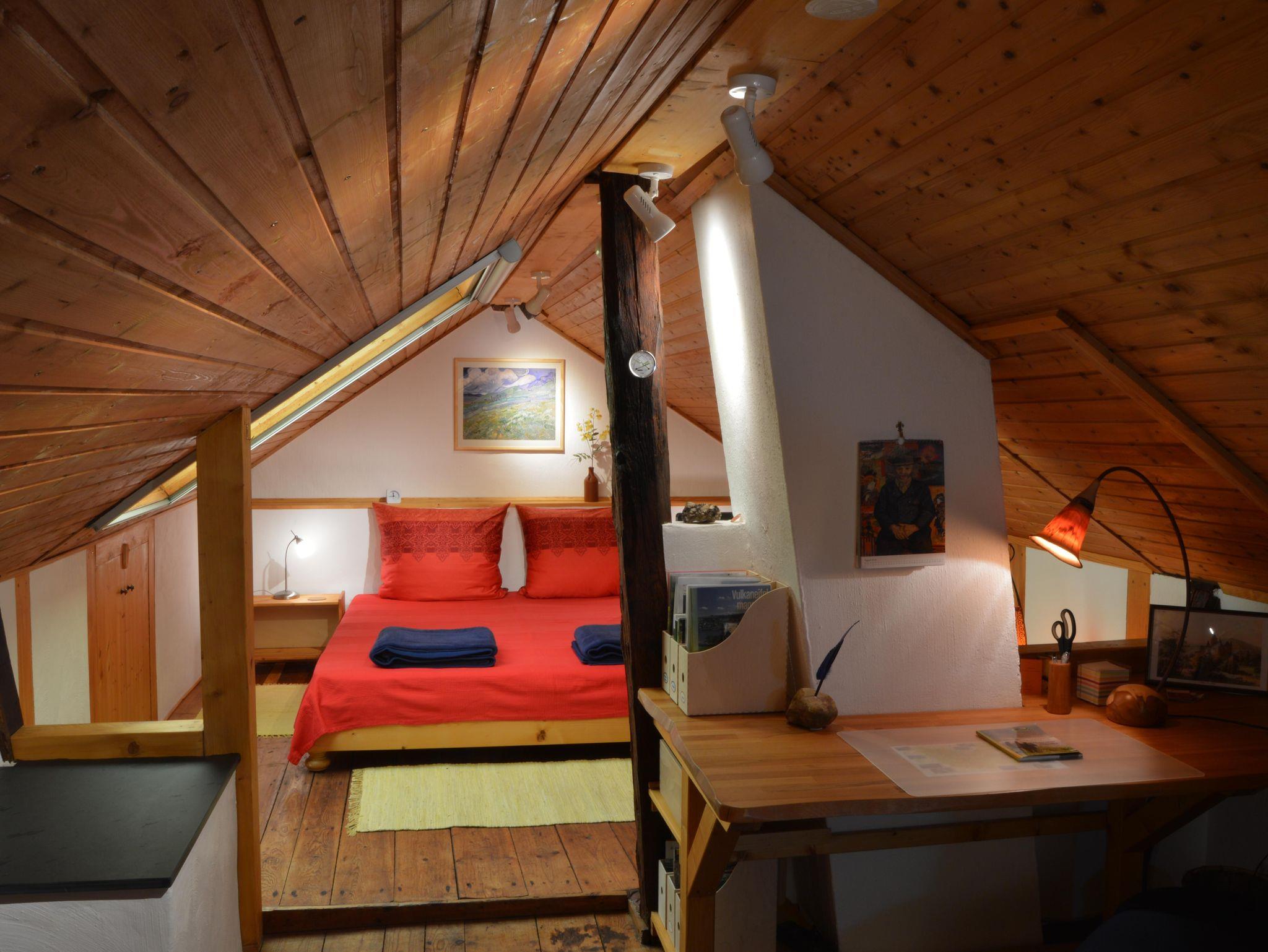 • Dachgeschoss: 1 Doppelzimmer mit großem Schreibtisch